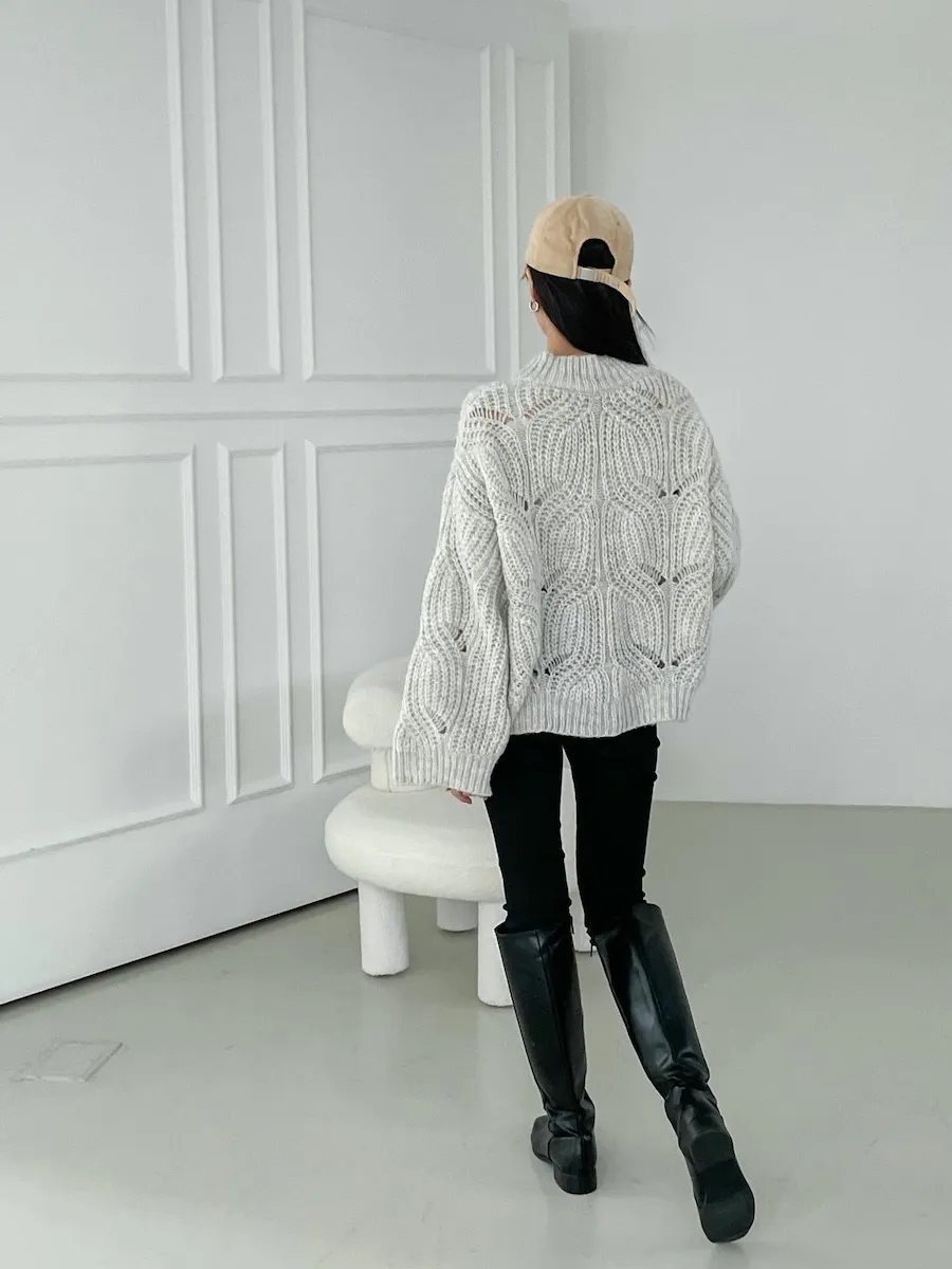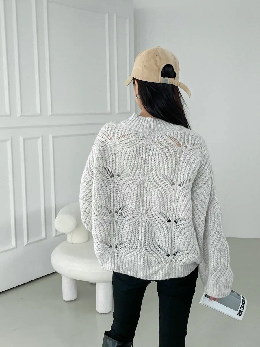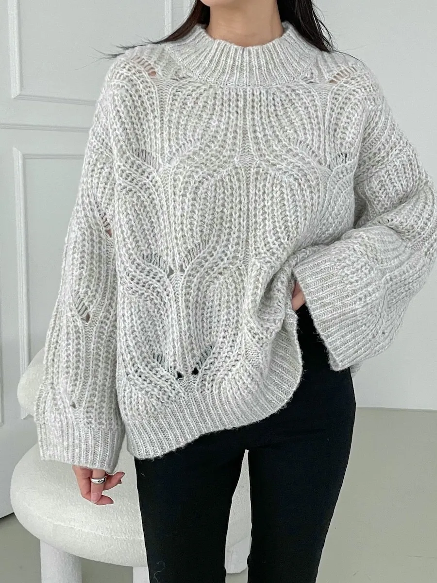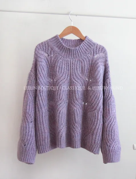 [含有 60% 羊毛] [下擺有漂亮的微妙波浪形狀] [寬鬆輪廓針織,帶有扭曲圖案] [柔和的顏色]