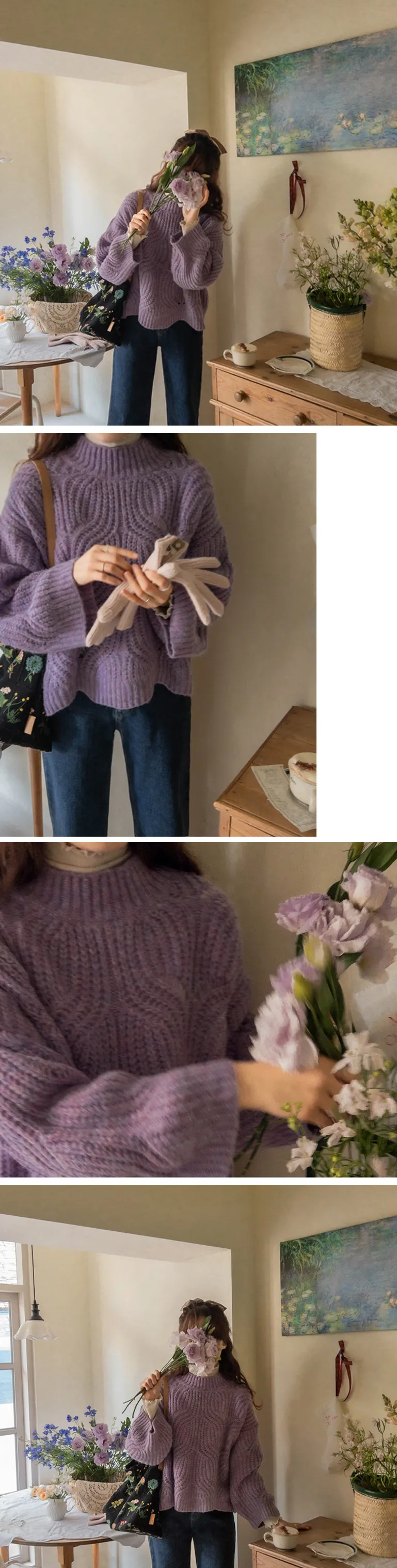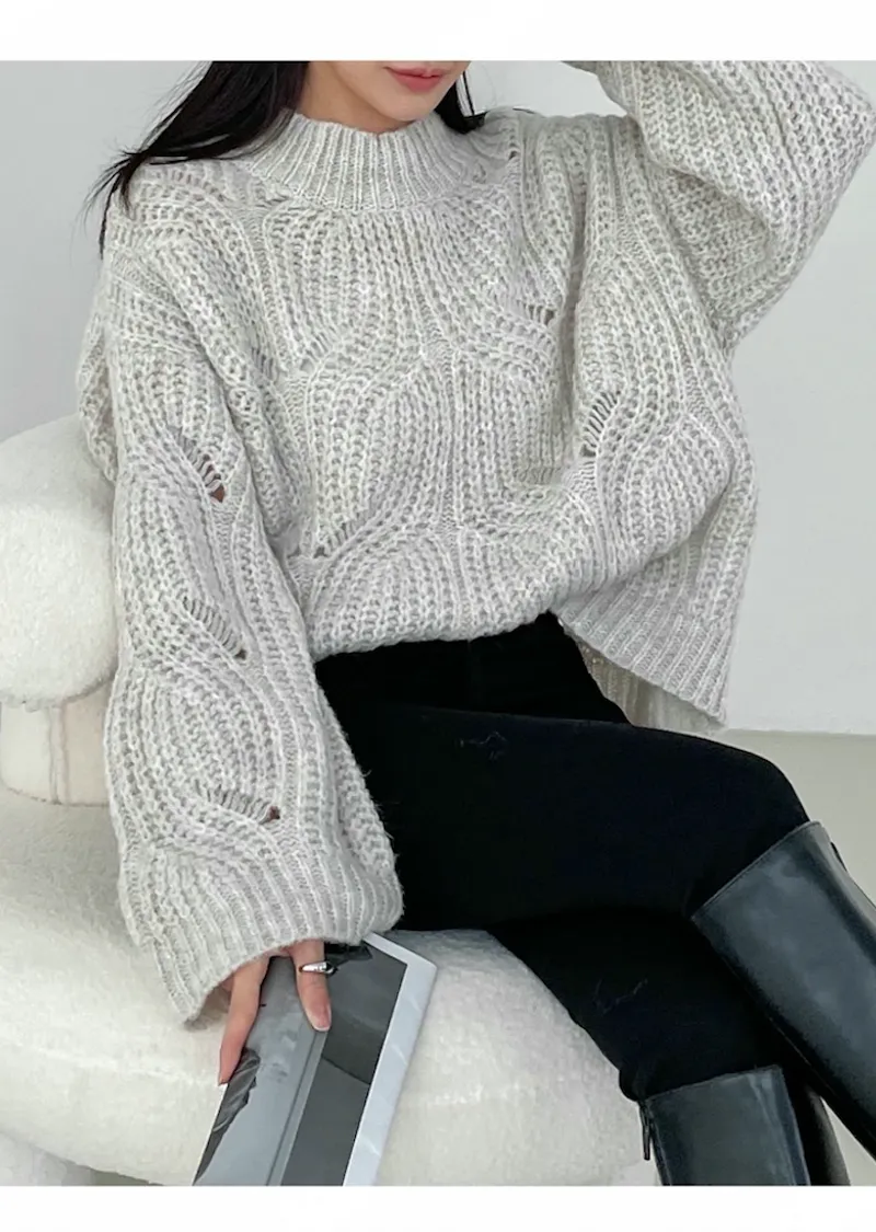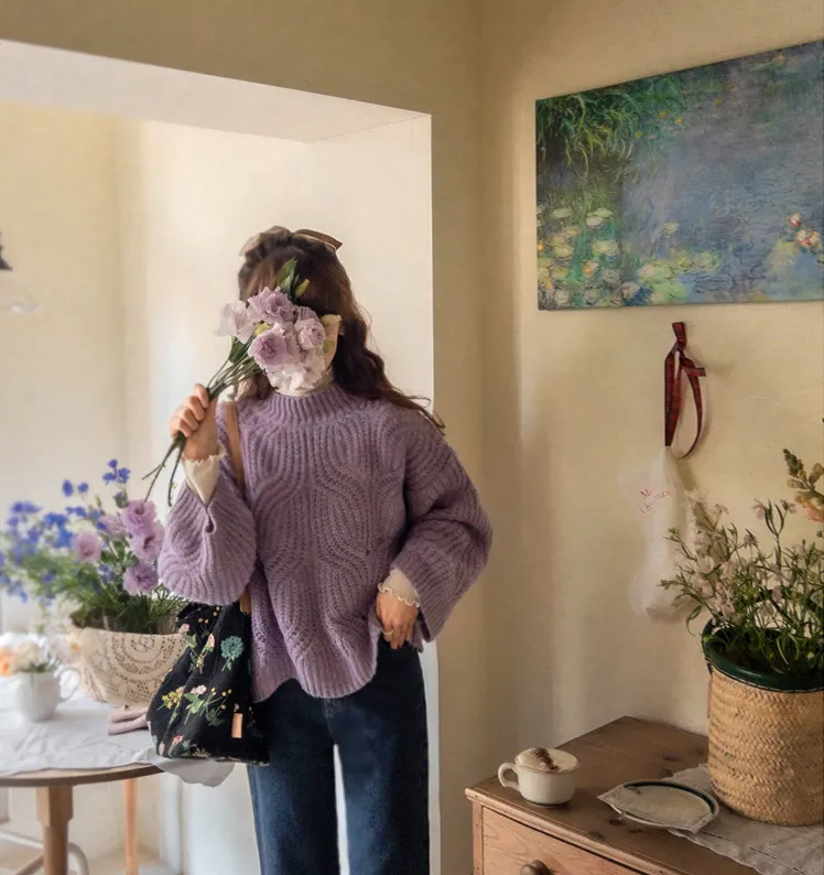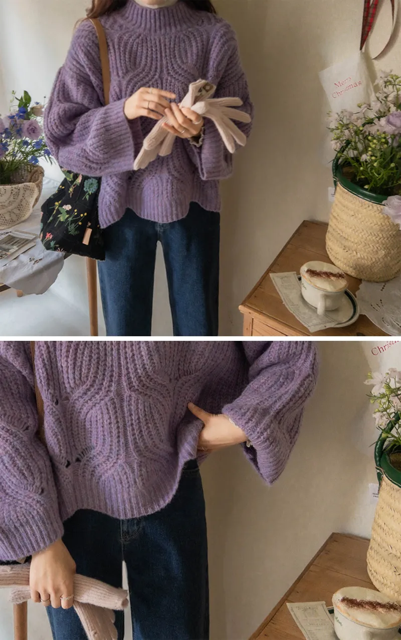柔和色彩波浪編織針織上衣