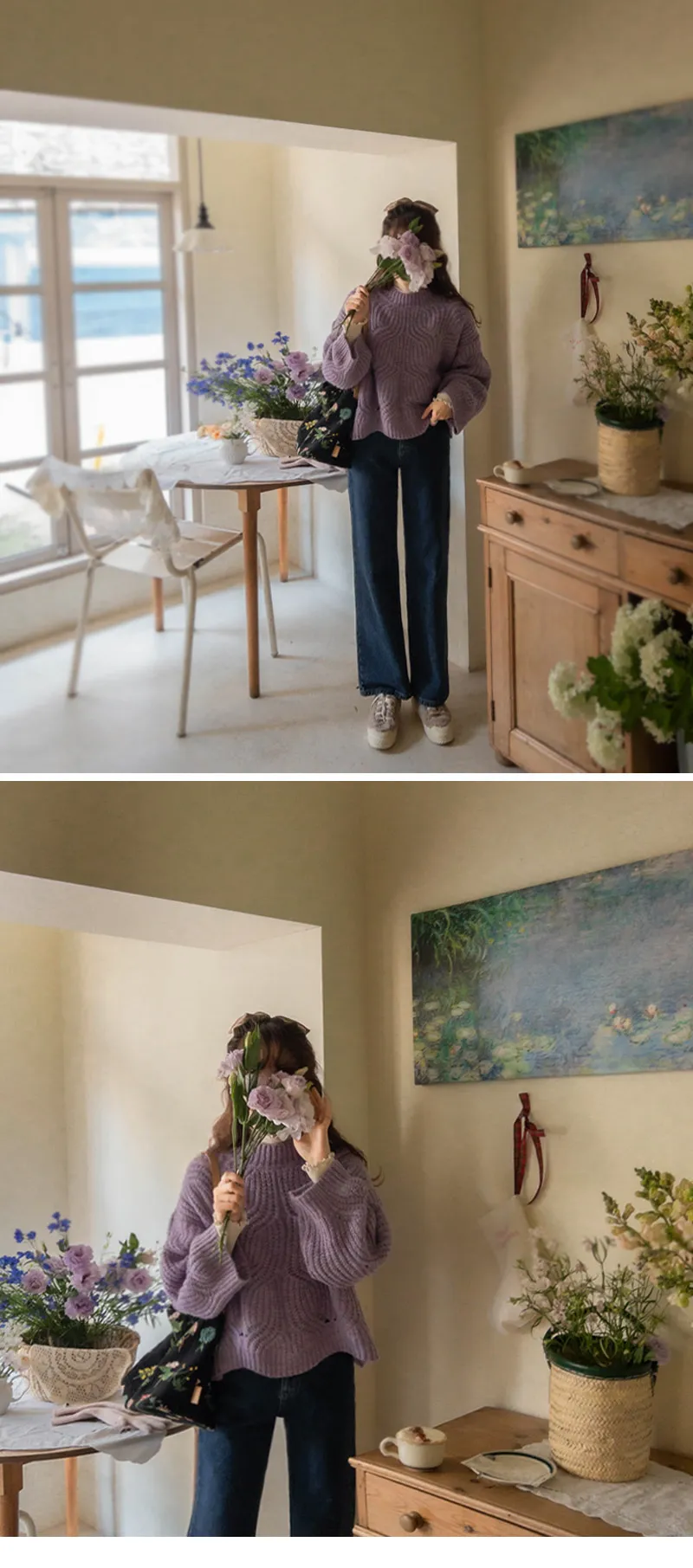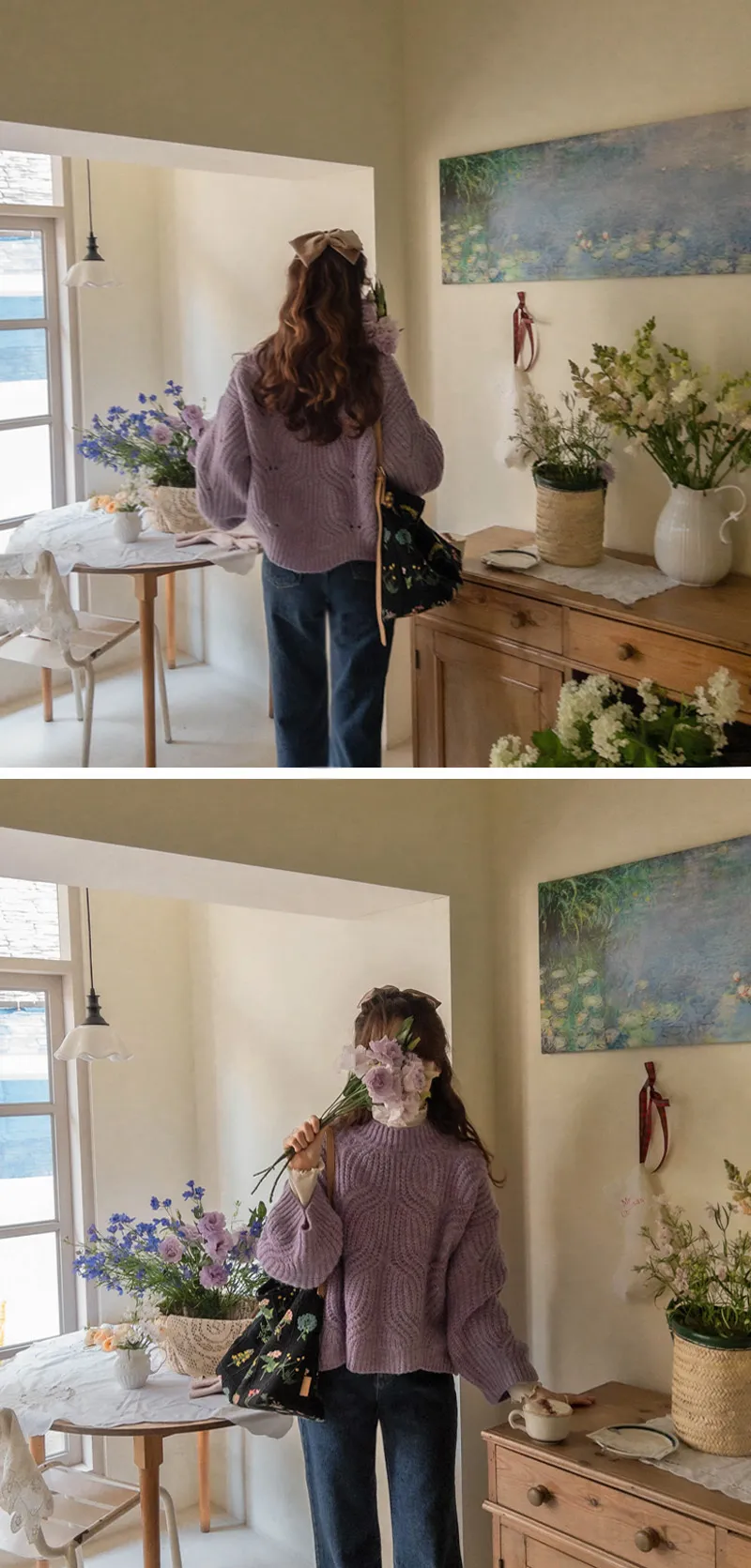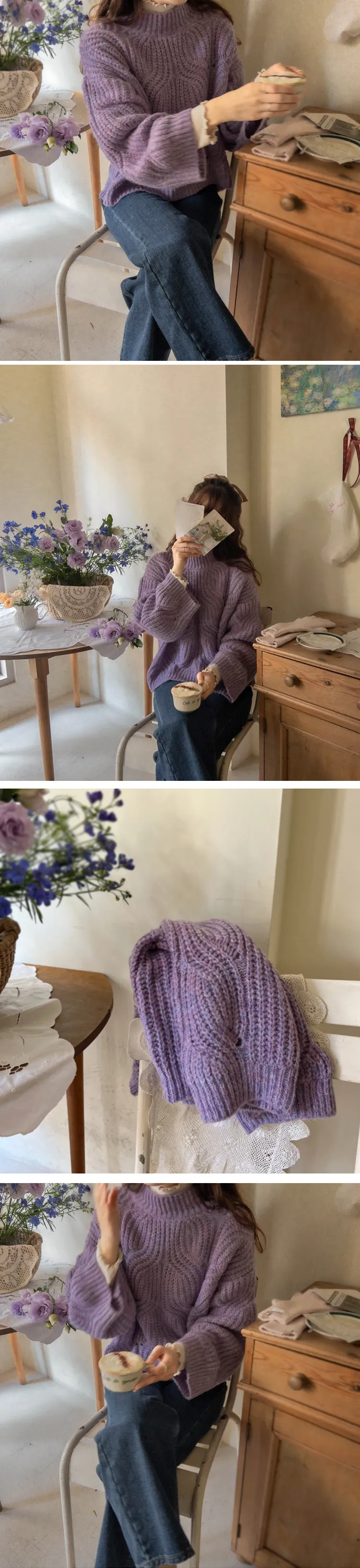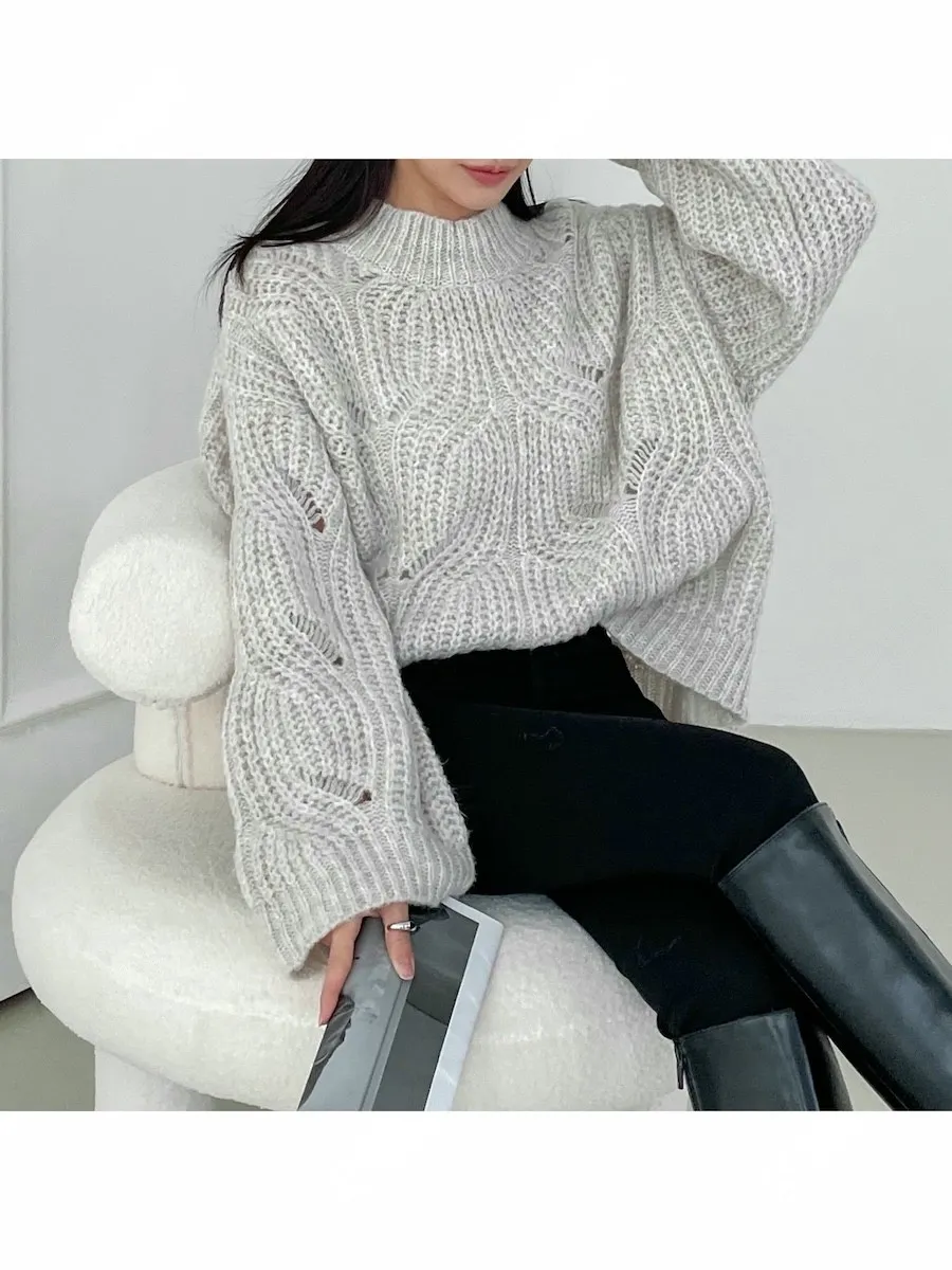 柔和色彩波浪編織針織上衣