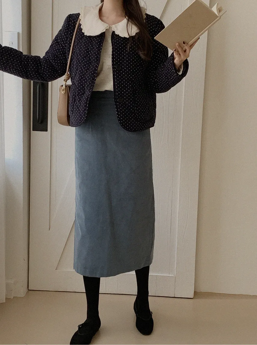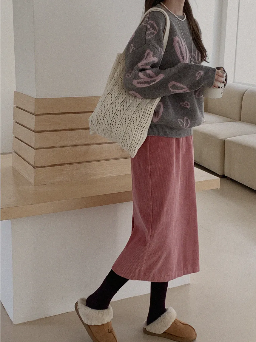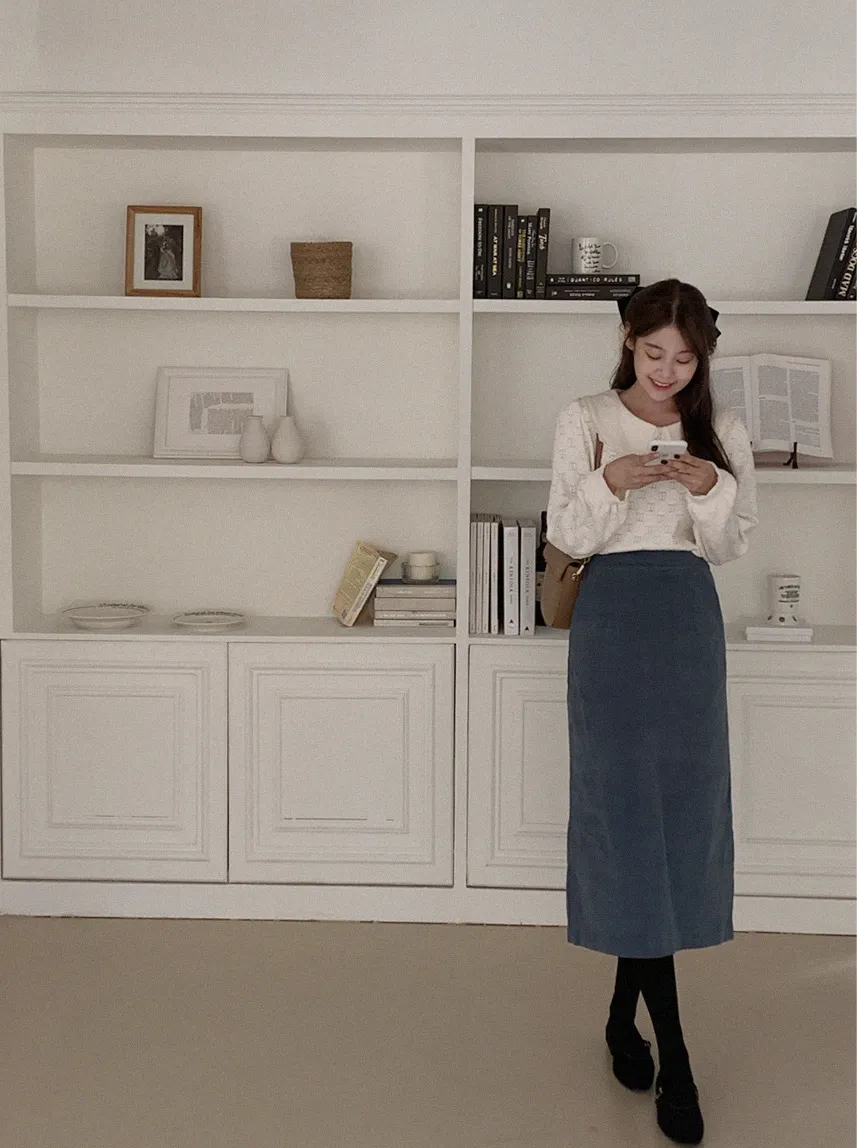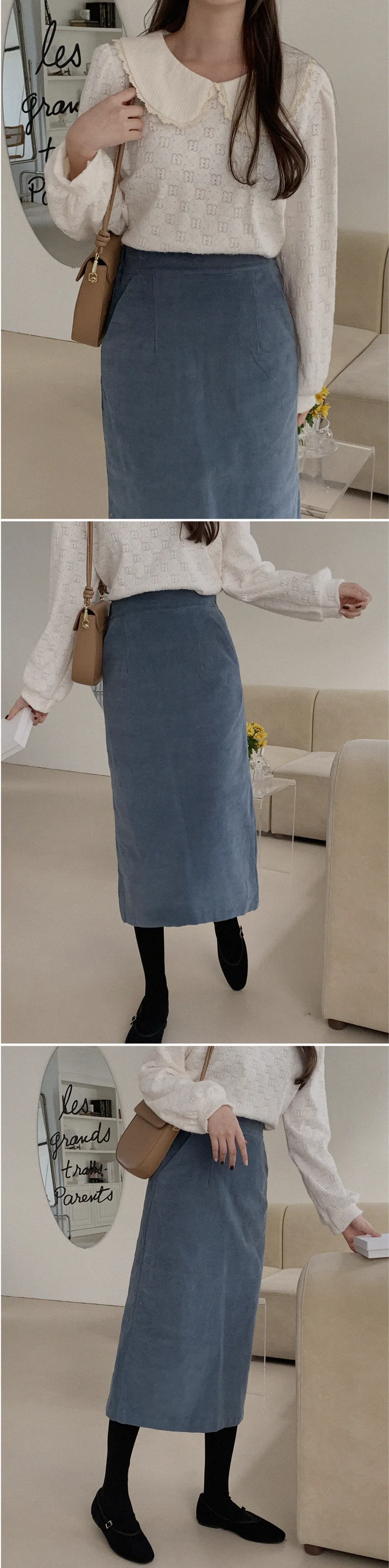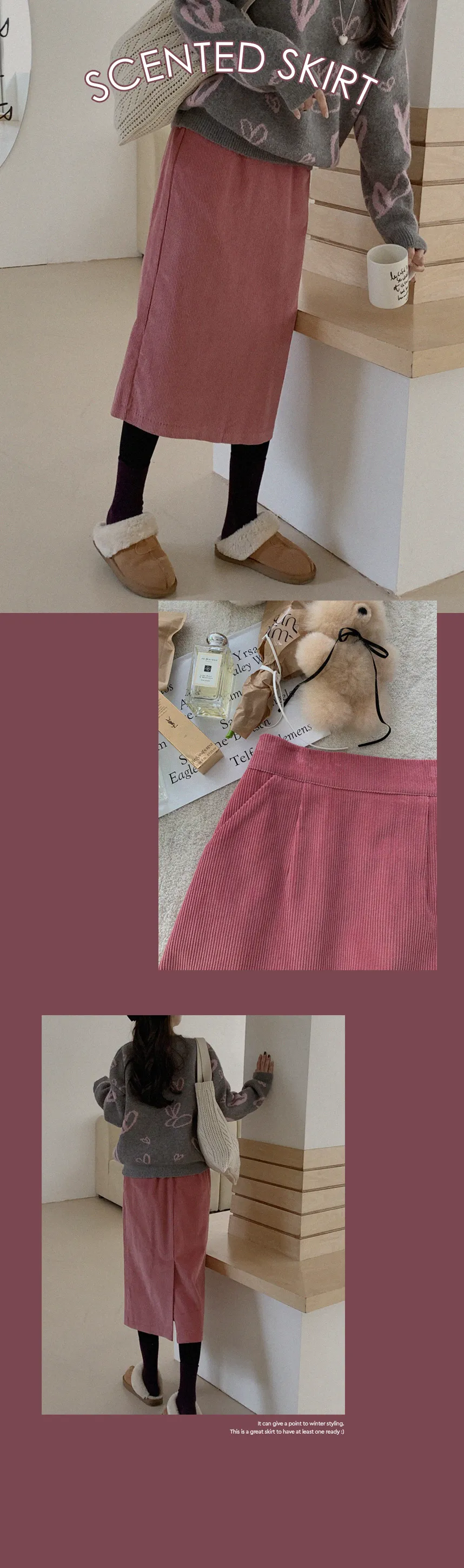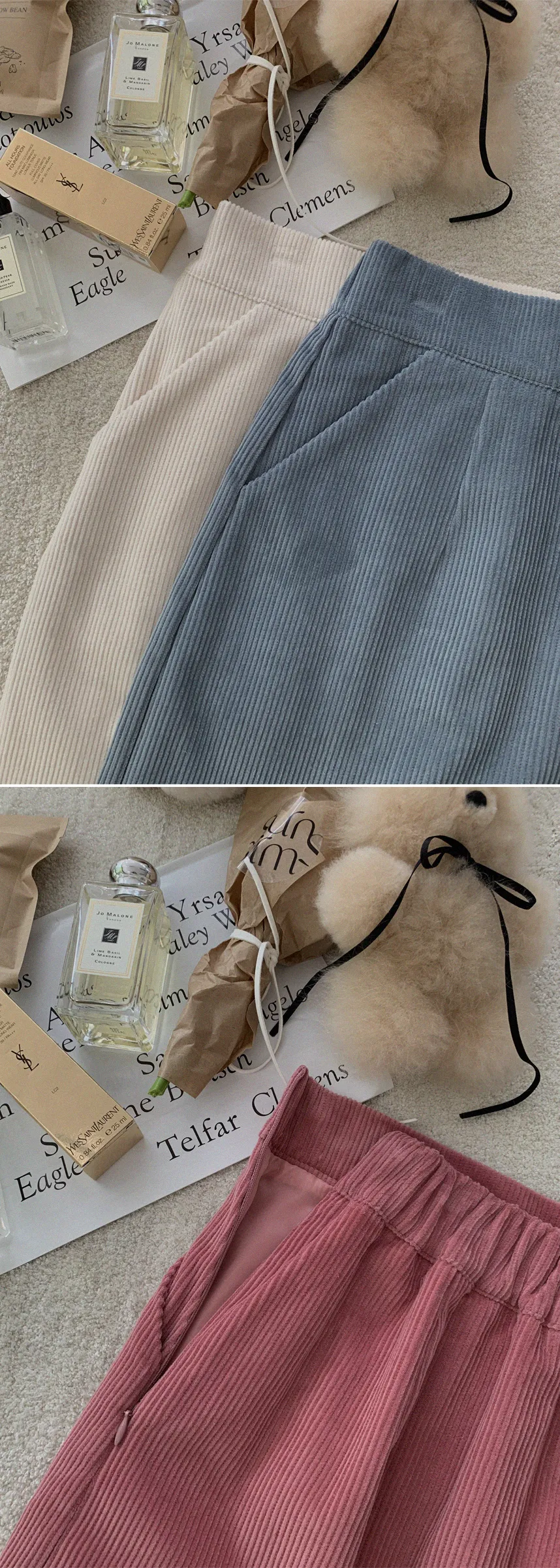 漂亮色感H剪裁羅紋燈芯絨中長裙