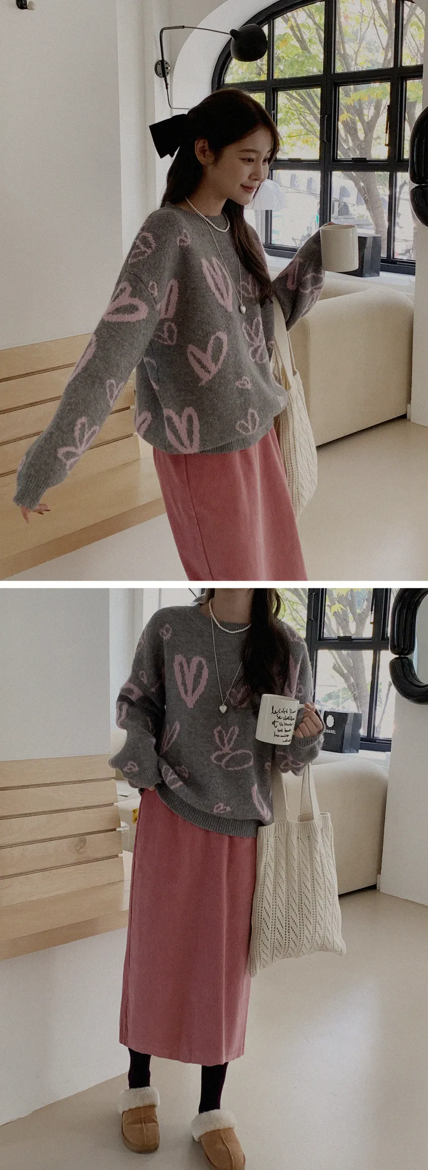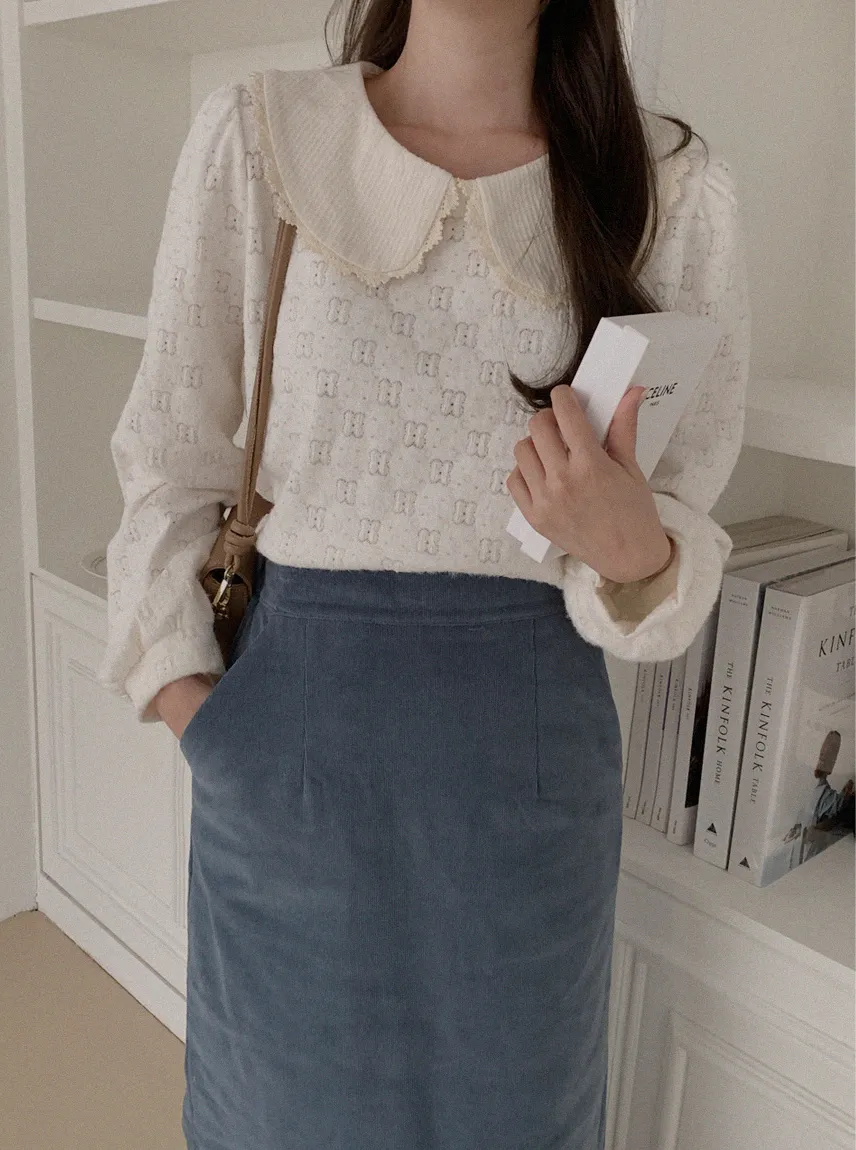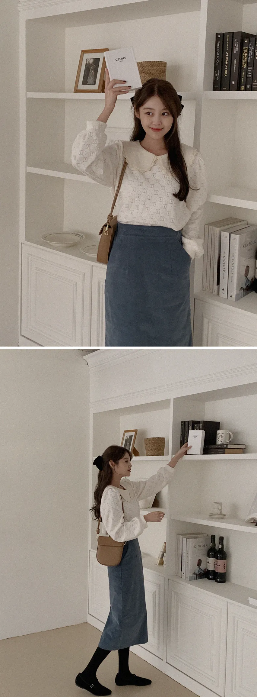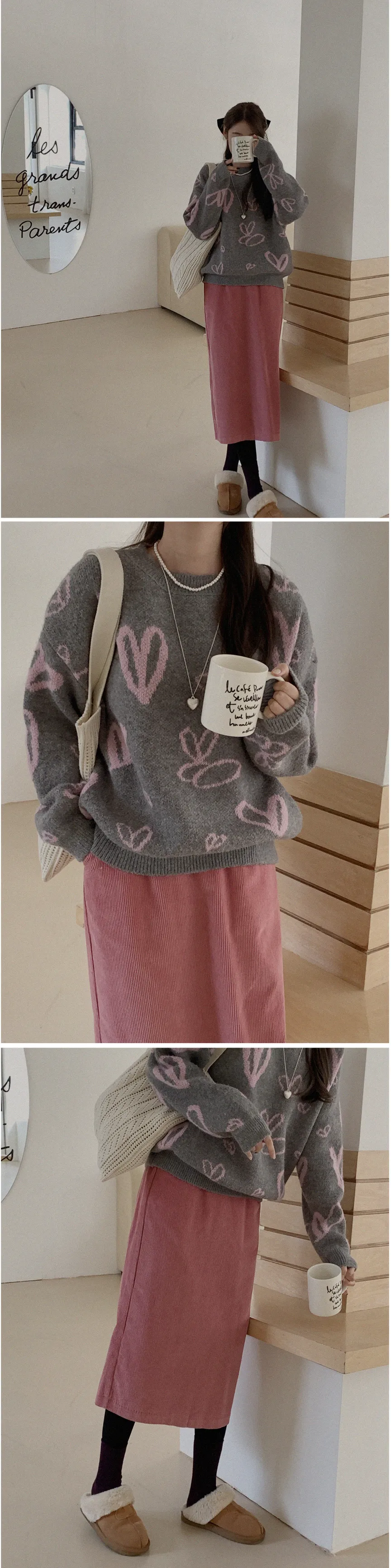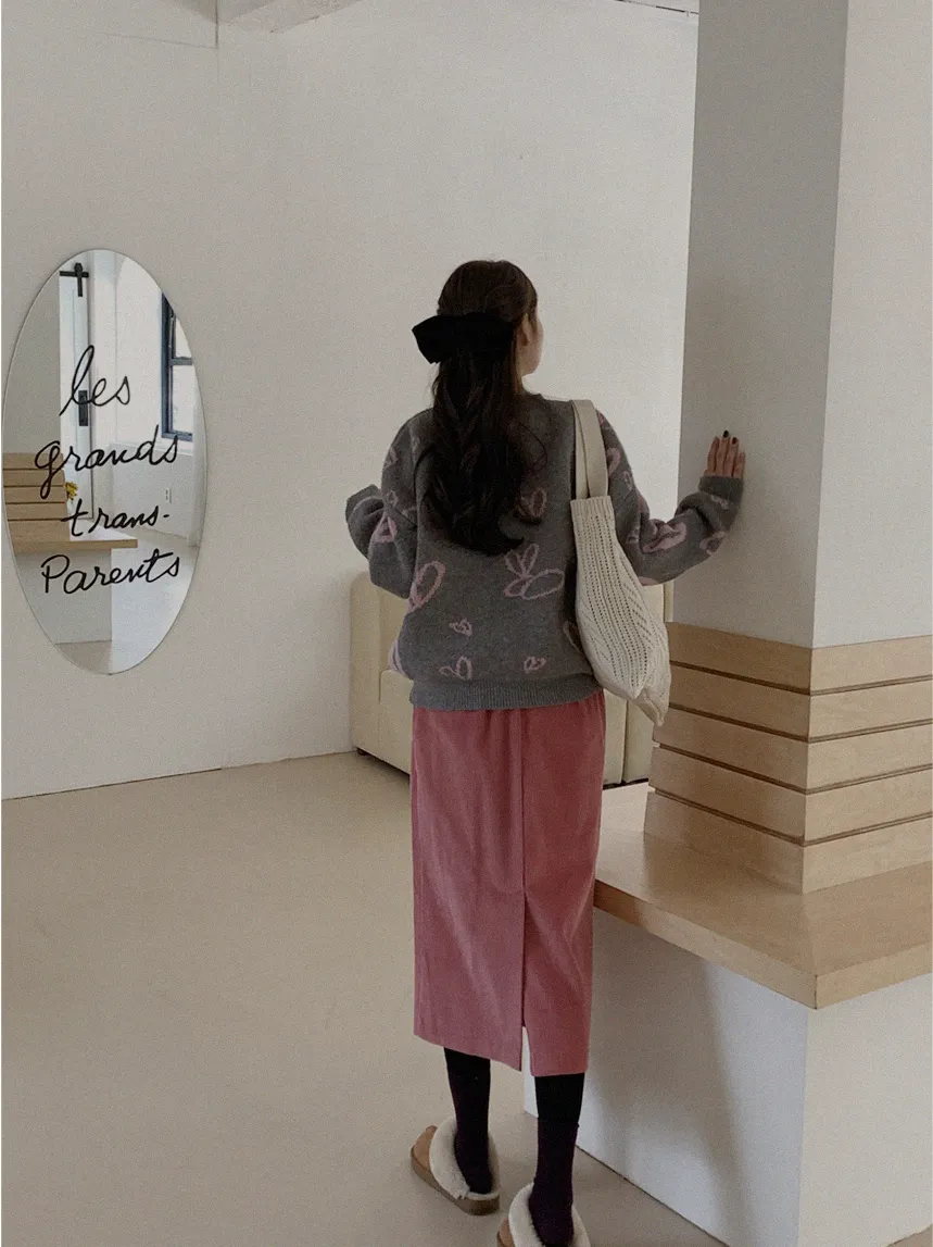 漂亮色感H剪裁羅紋燈芯絨中長裙