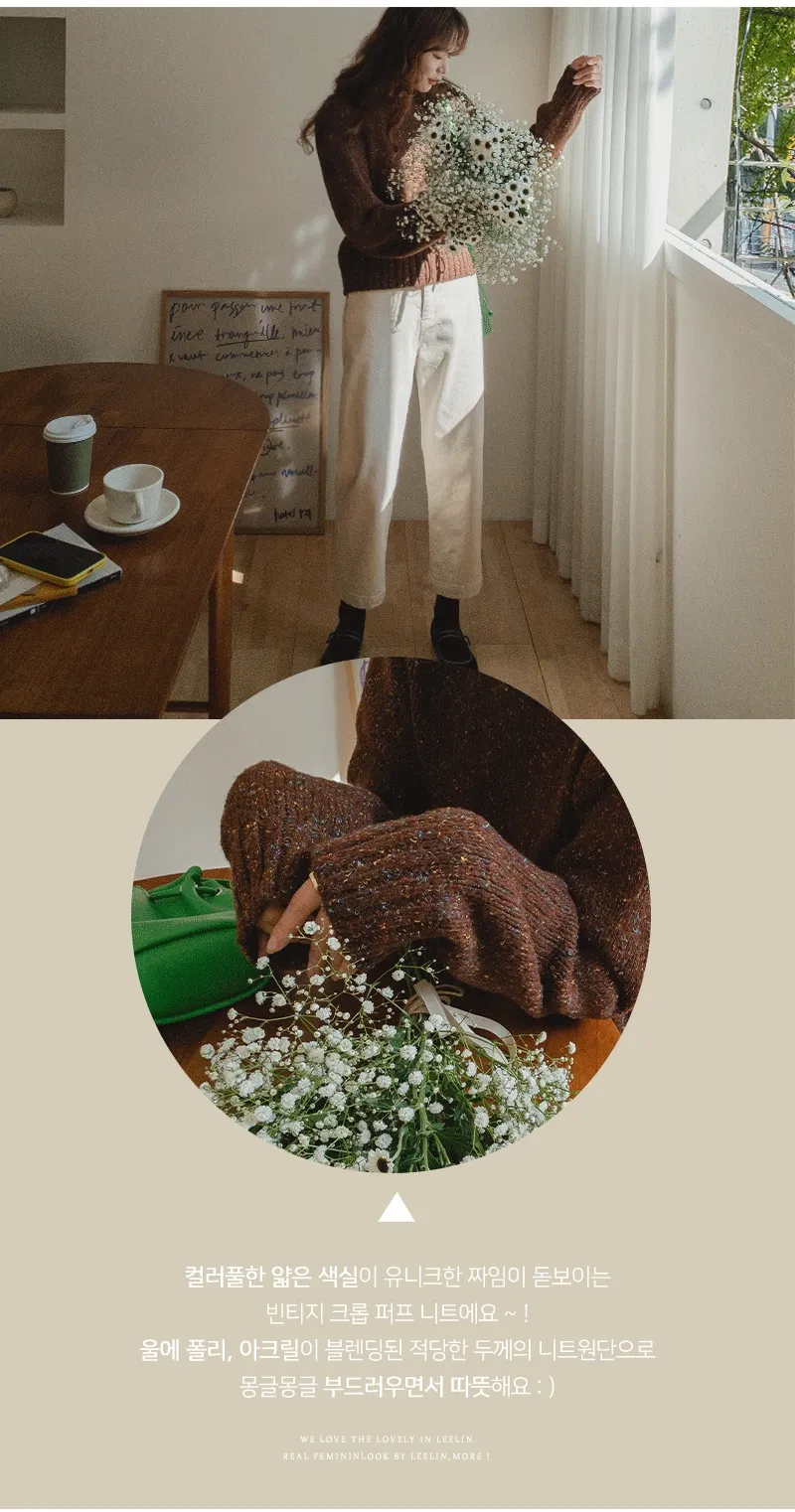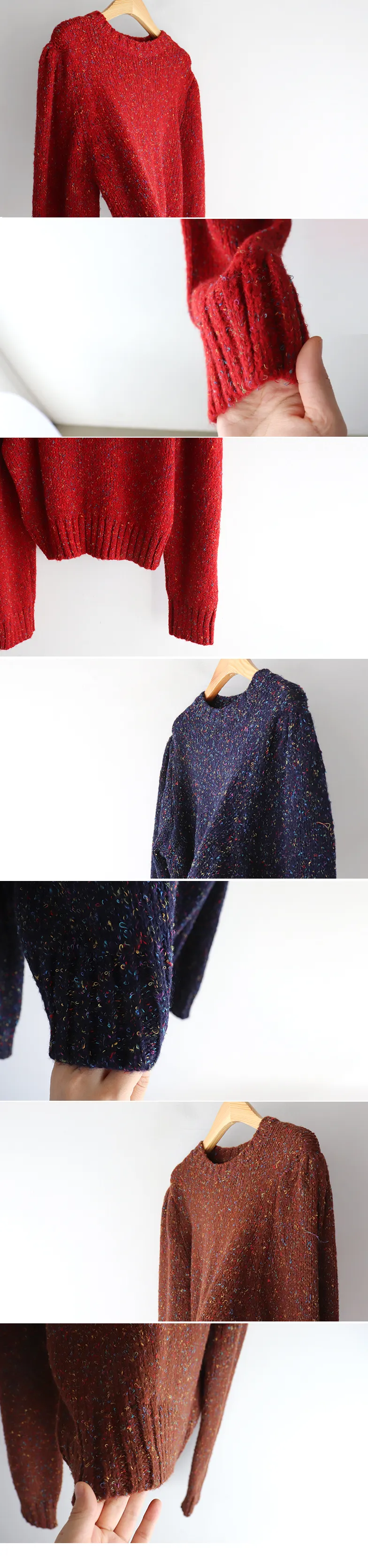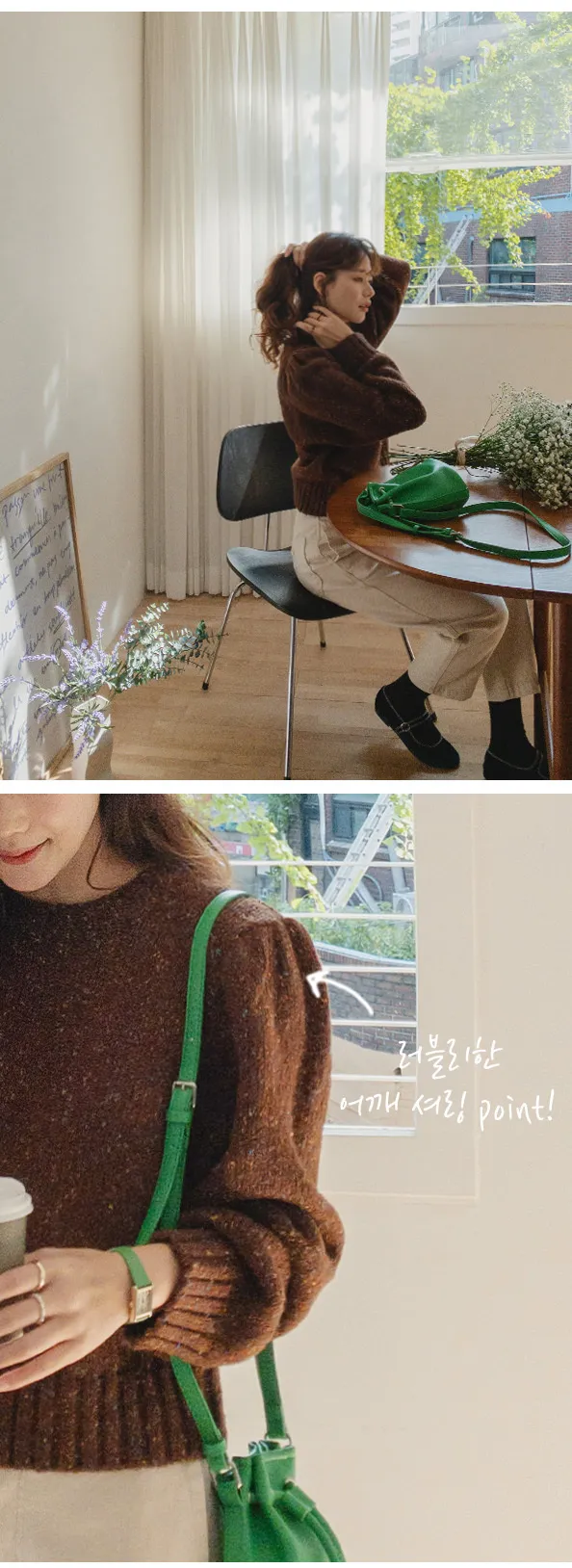 [巧妙地漂亮的混色針織] [泡泡袖線] [清爽短版] [含有30%羊毛]