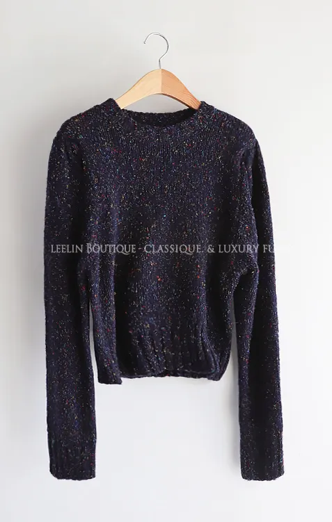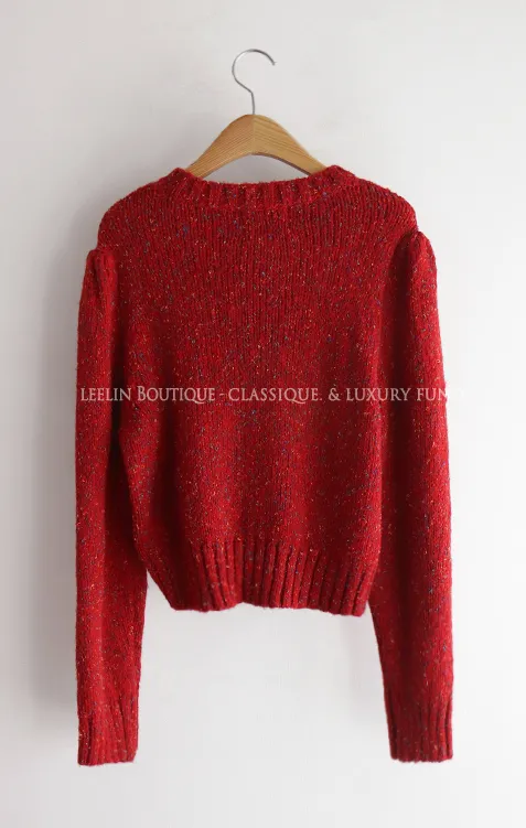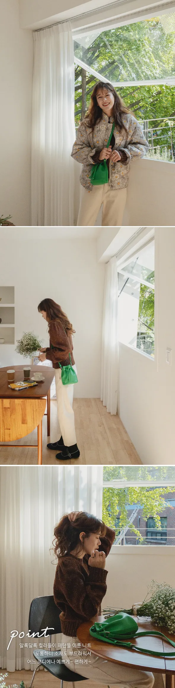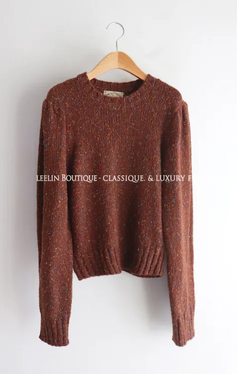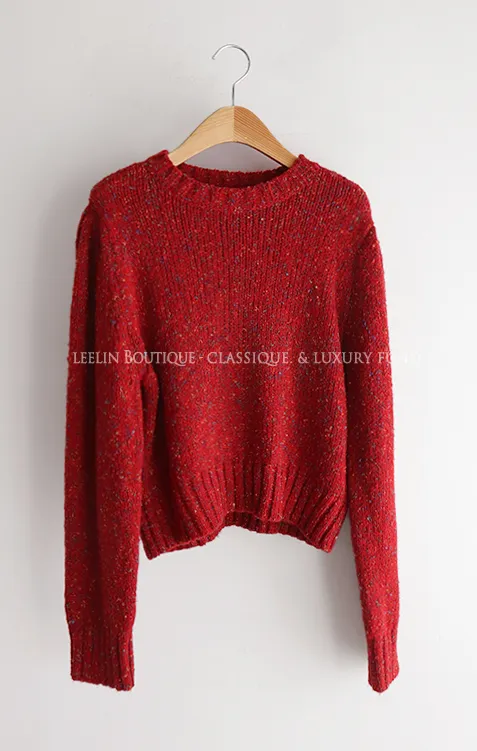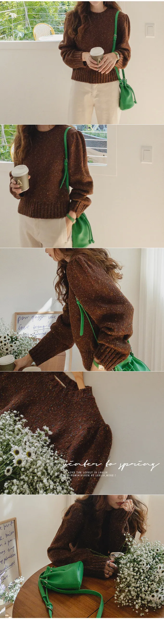 [巧妙地漂亮的混色針織] [泡泡袖線] [清爽短版] [含有30%羊毛]