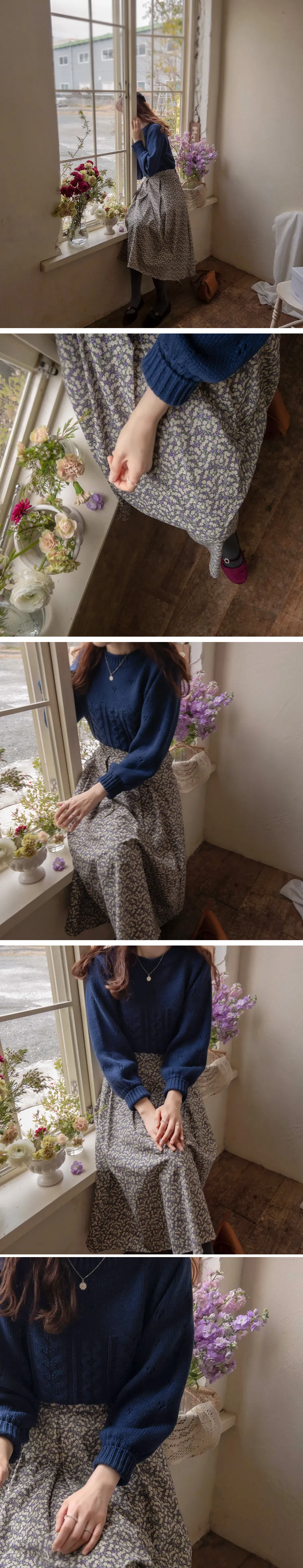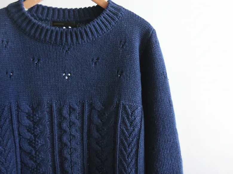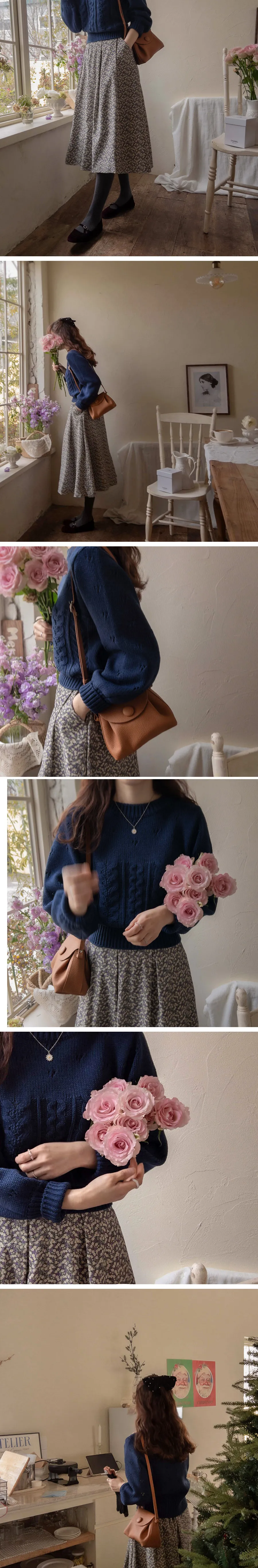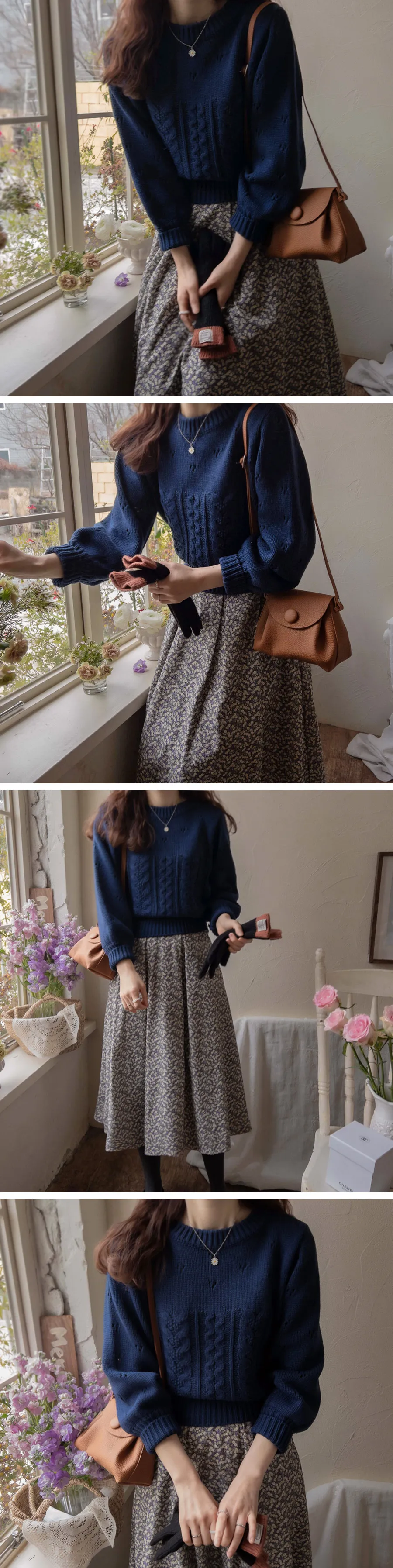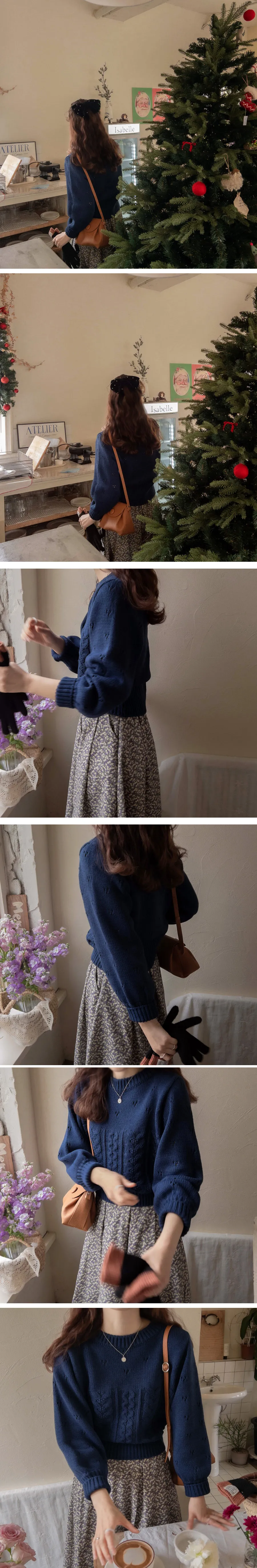 【蘇格蘭針織,柔軟合身】【扭紋圖案充滿活力】【圓領打孔,打造可愛風格】【泡泡袖,精緻感】【推薦時尚款針織上衣
