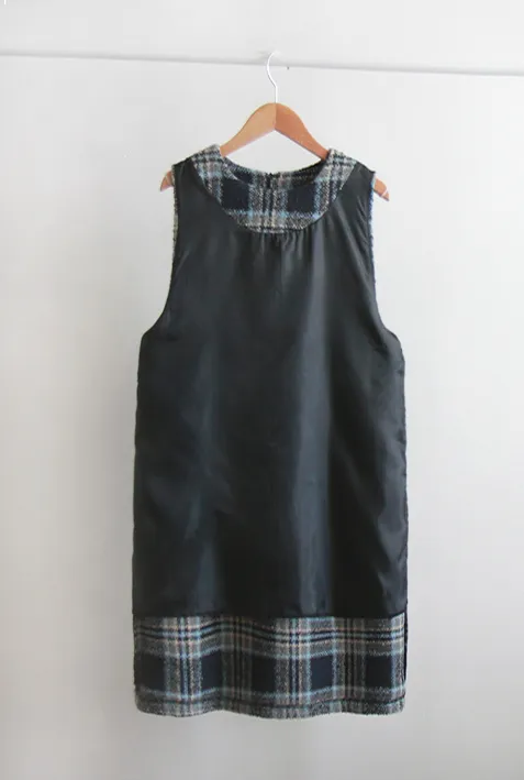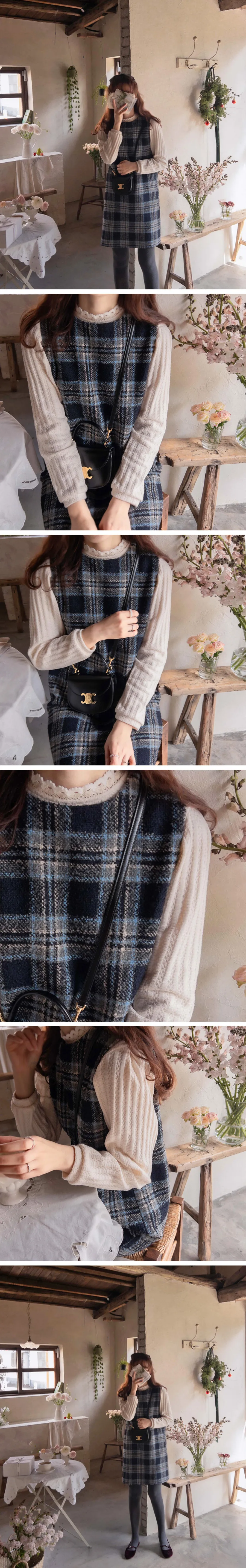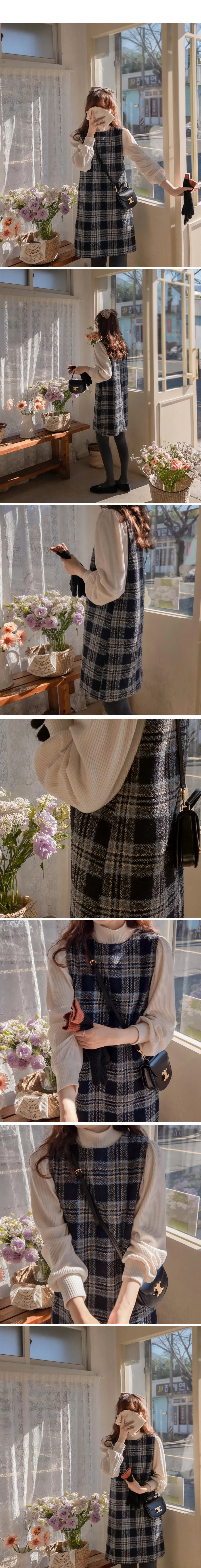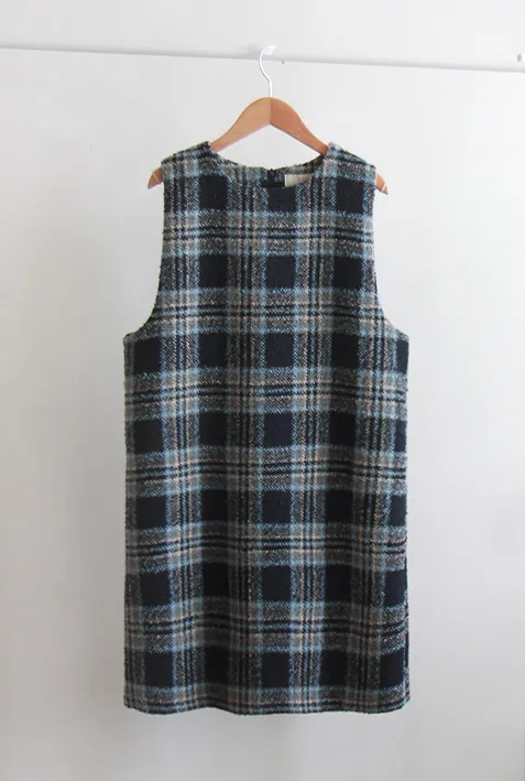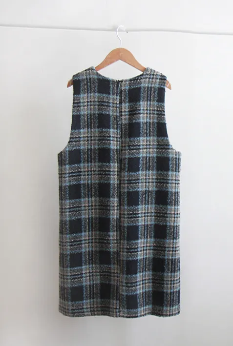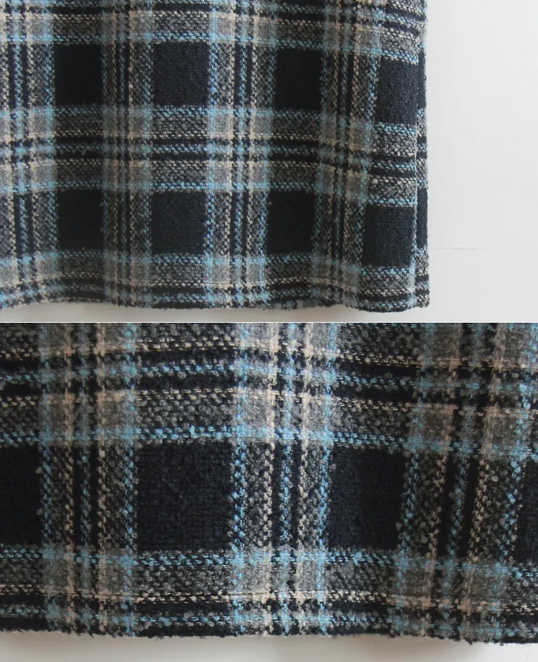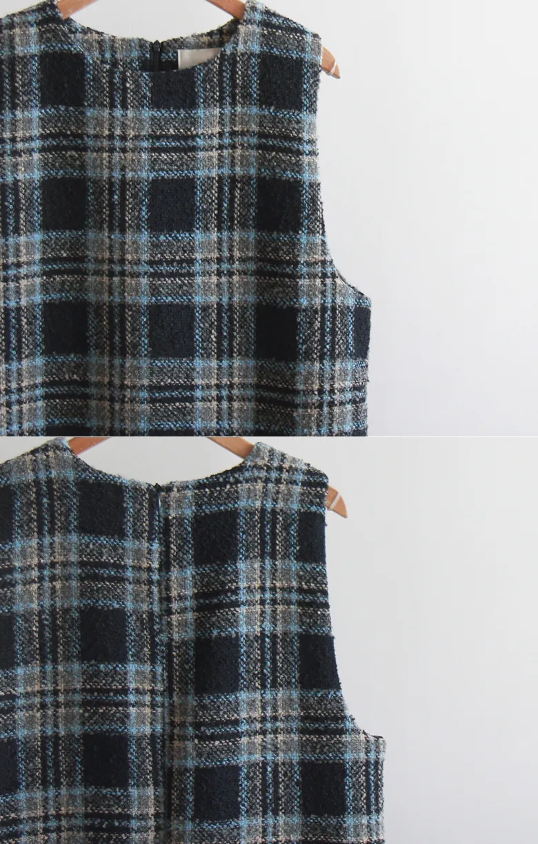 [聚酯纖維襯裡][背面拉鍊結構][格紋圖案,給人一種歡快的感覺][這款可愛的H型連衣裙與內搭等搭配時會增強風格][不緊貼身體但修飾,性價高的連身裙了,遮身又舒適穿搭~!]