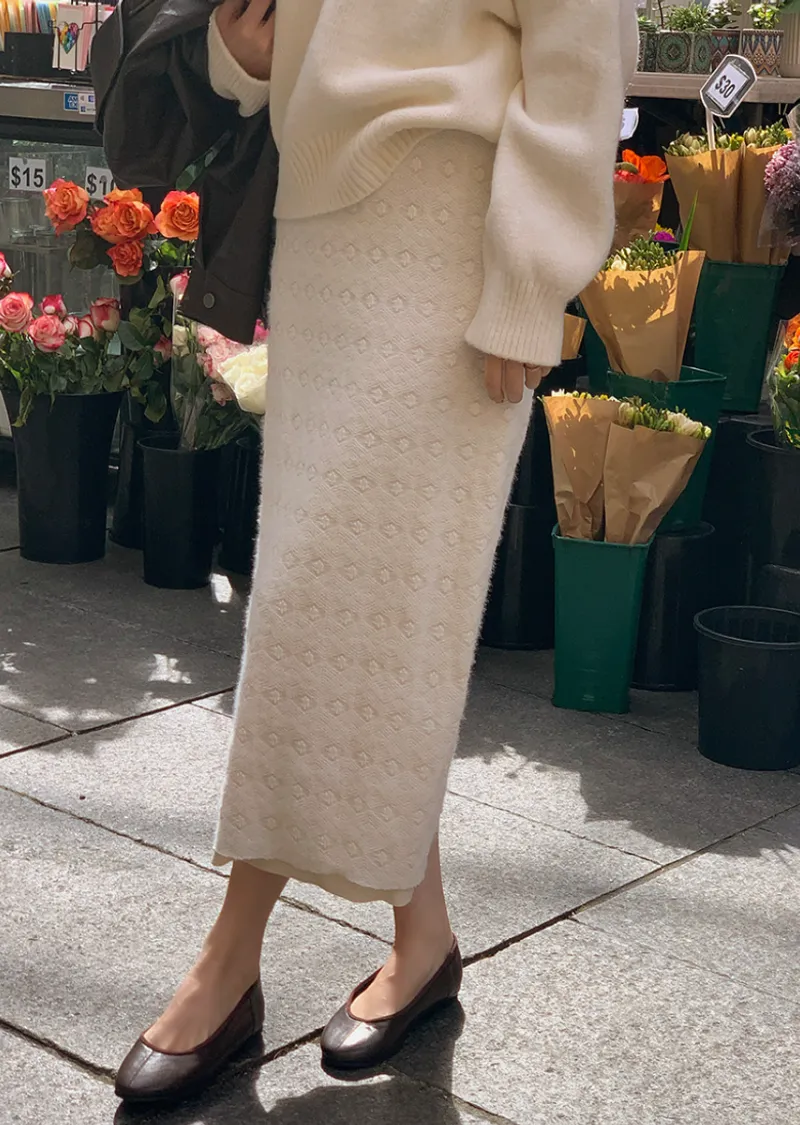 從腰部延伸至裙擺的立體蕾絲圖案,