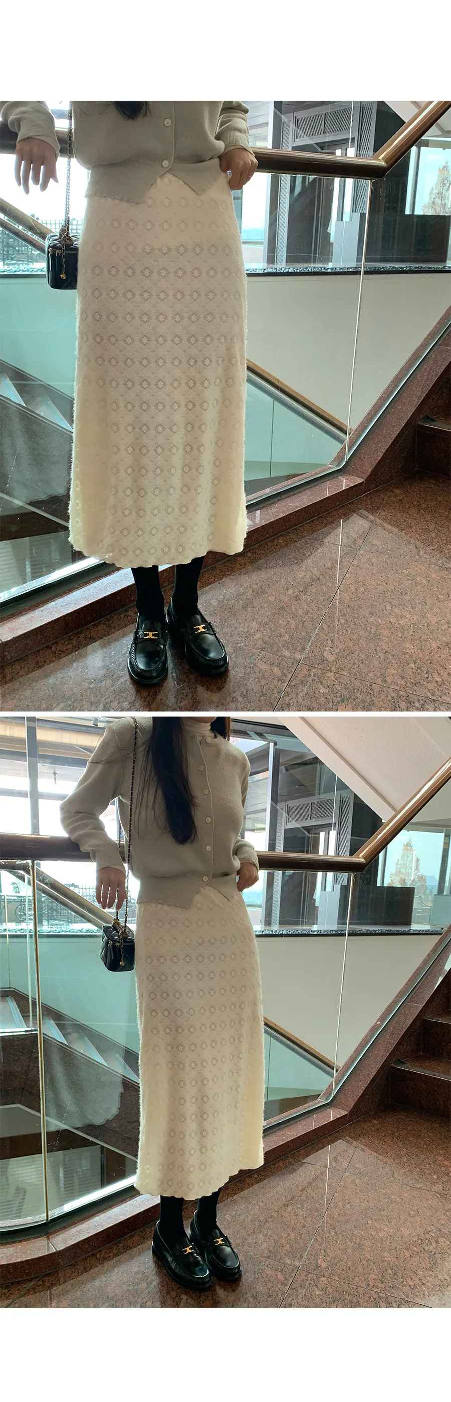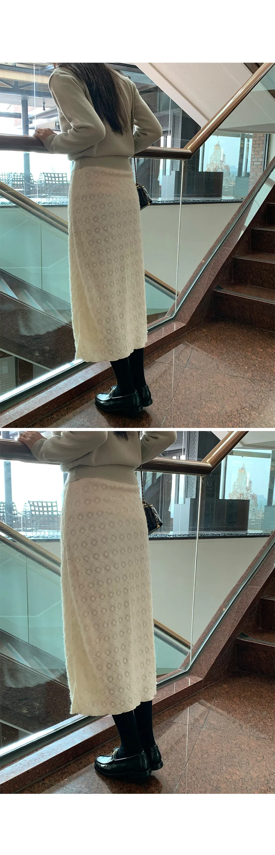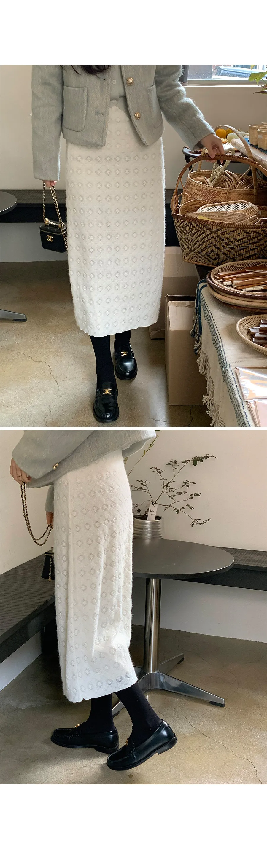 冬季立體蕾絲圖案絨質中長裙