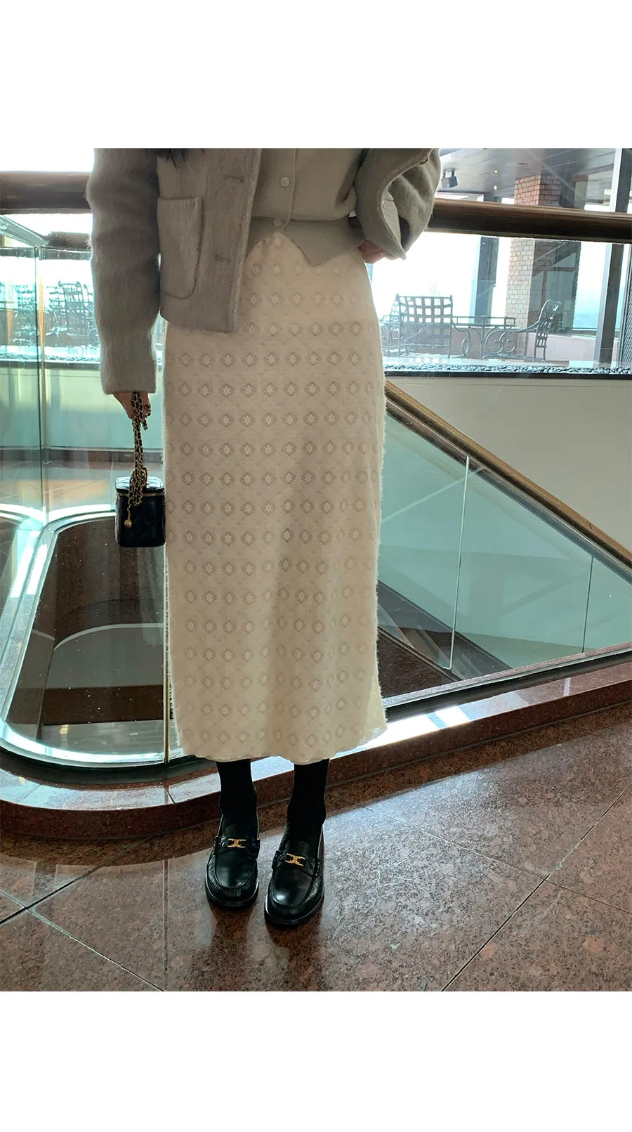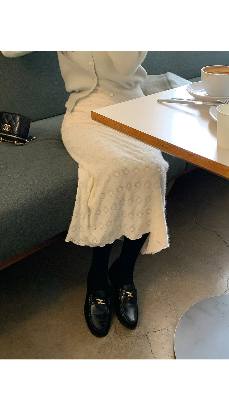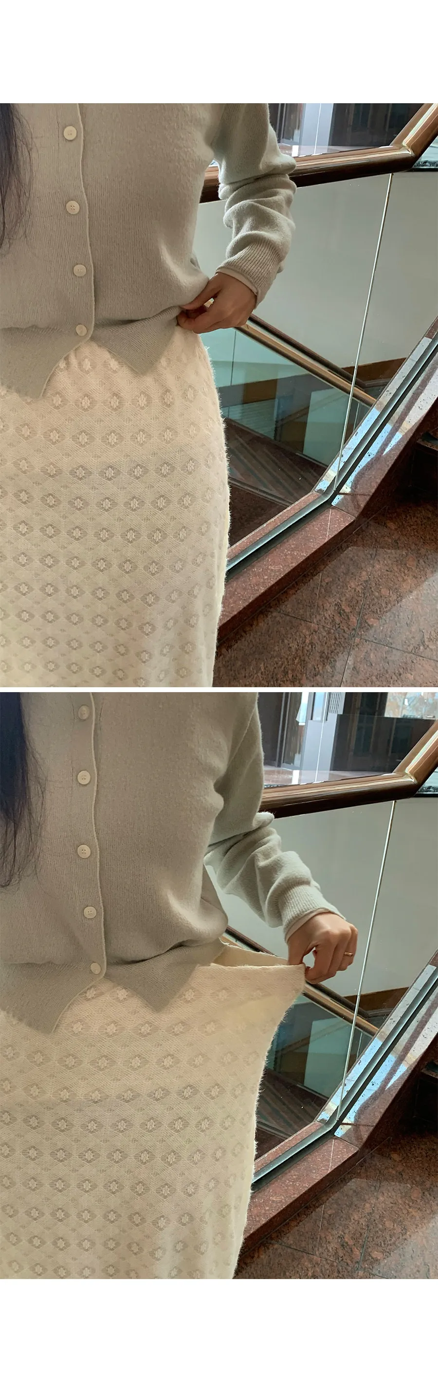 冬季立體蕾絲圖案絨質中長裙