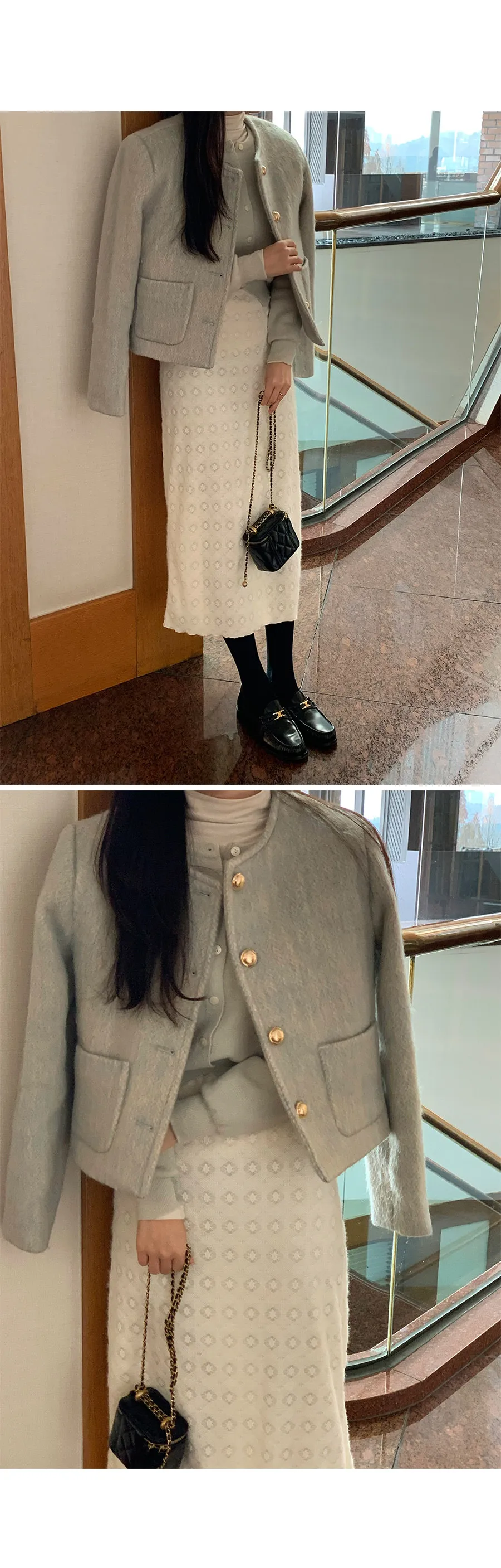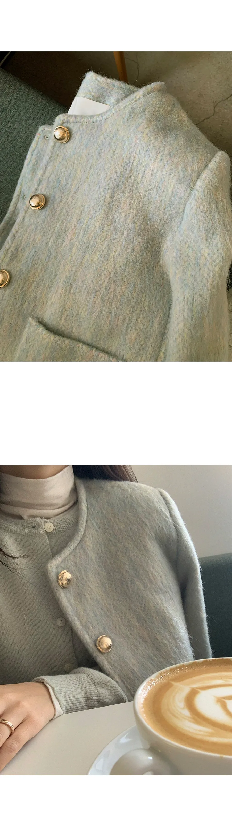 柔和氛圍拉絨紋理內襯行縫金釦羊毛混紡外套
