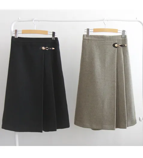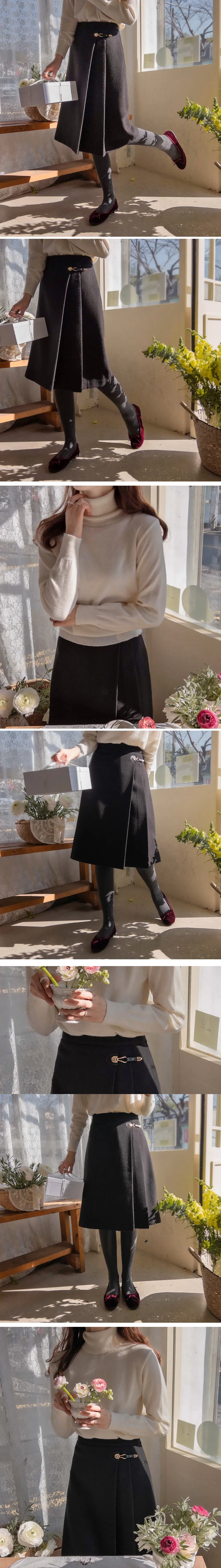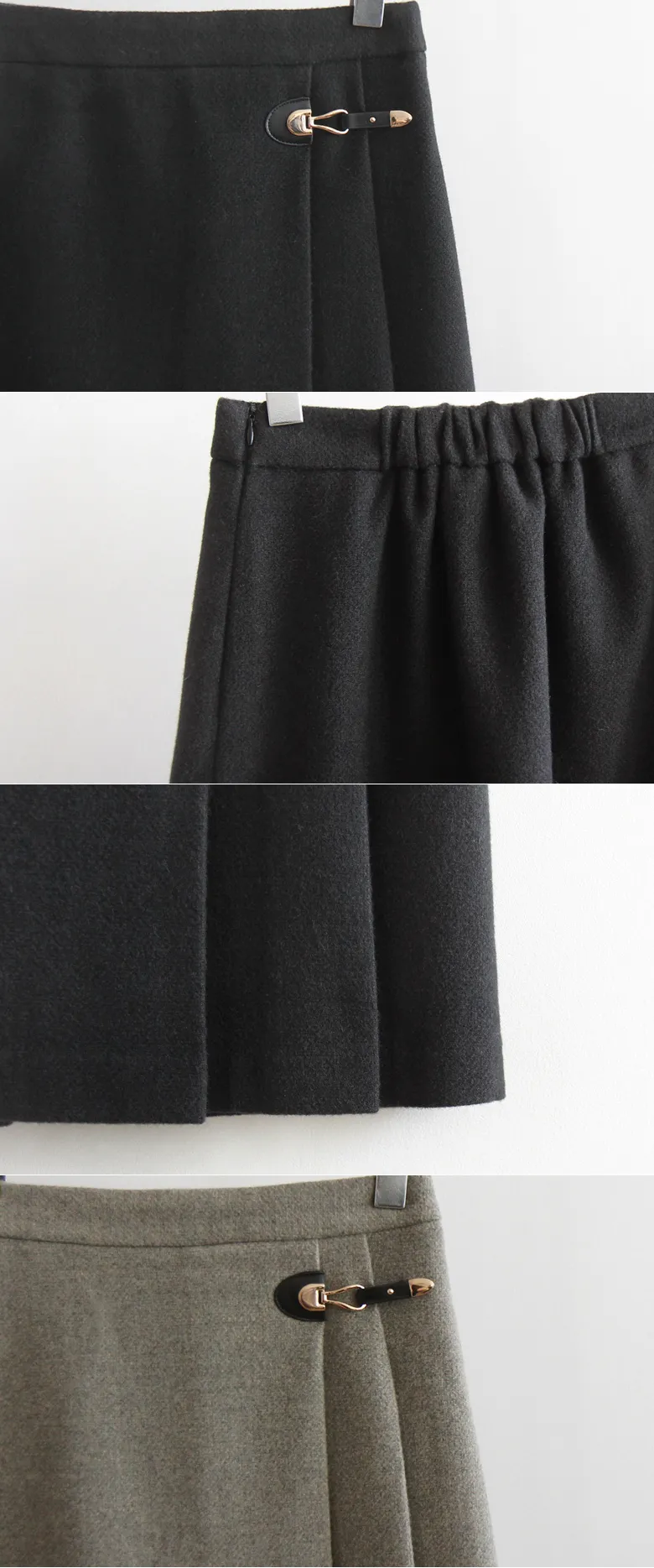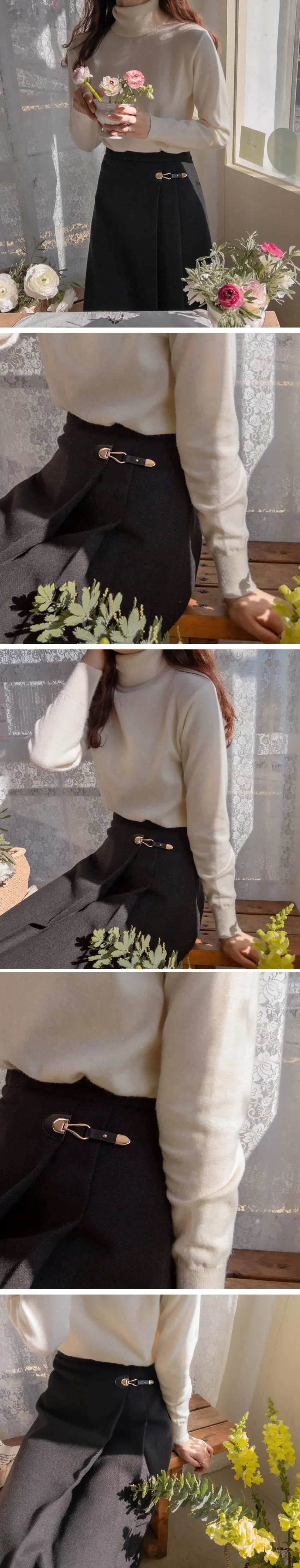 質感A字剪裁金色腰帶裝飾針摺中長裙