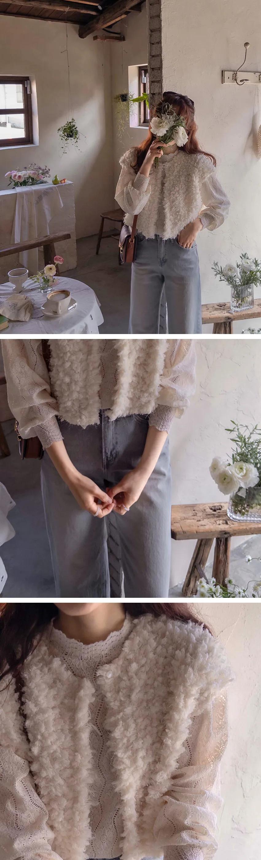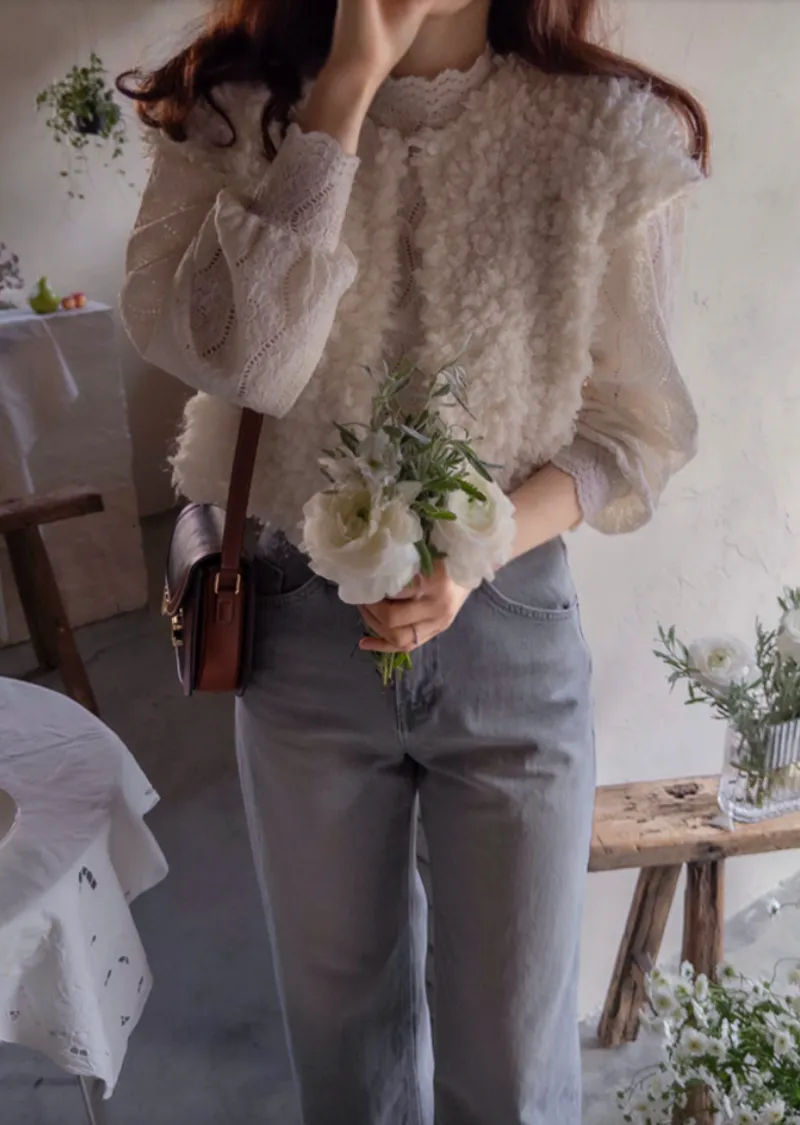 可愛立體蓬鬆雪花般毛絨背心