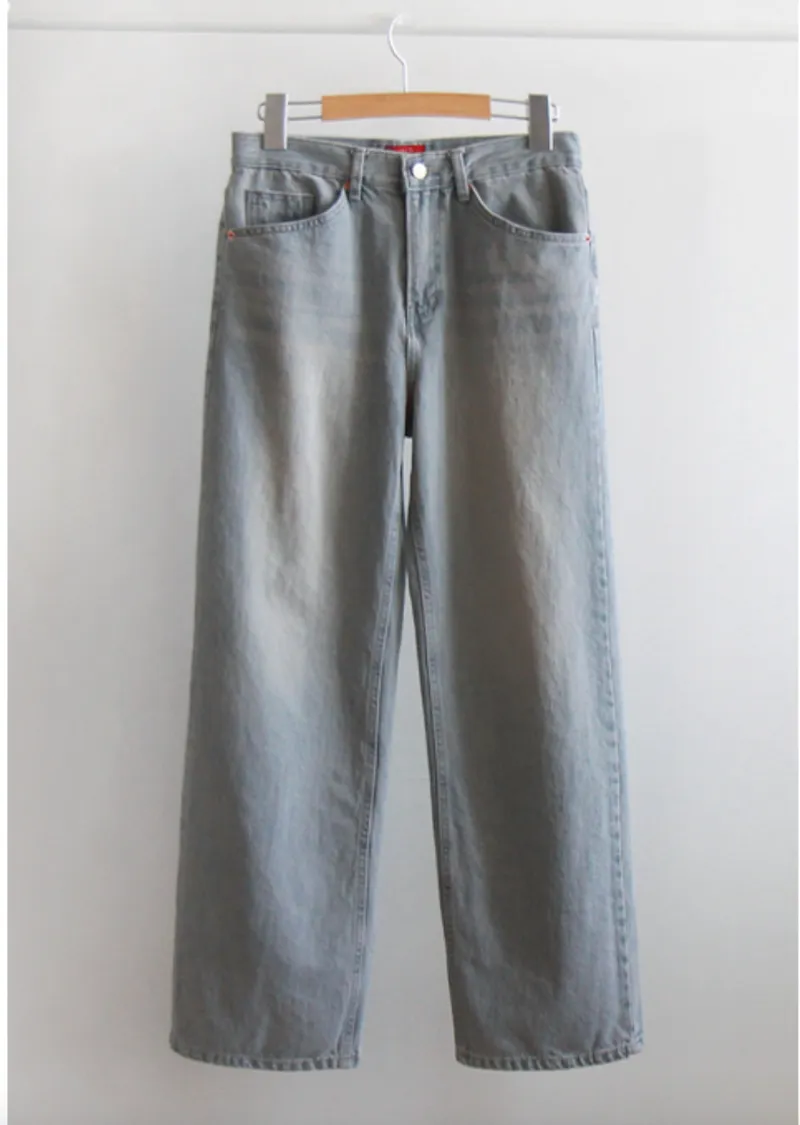 魅力灰色調半寬直筒牛仔褲 現貨L
