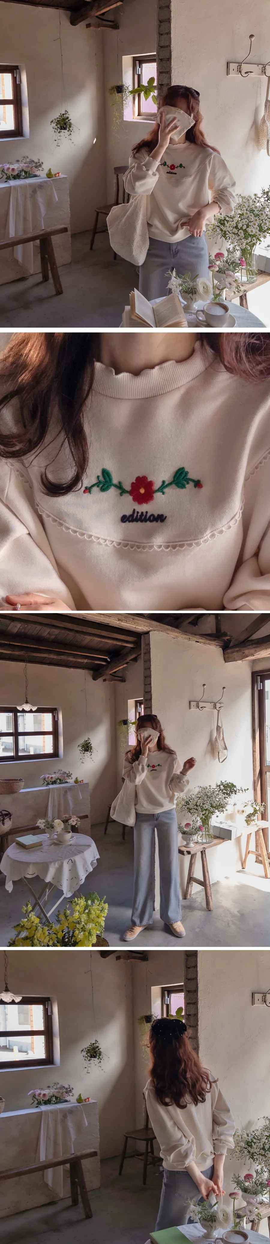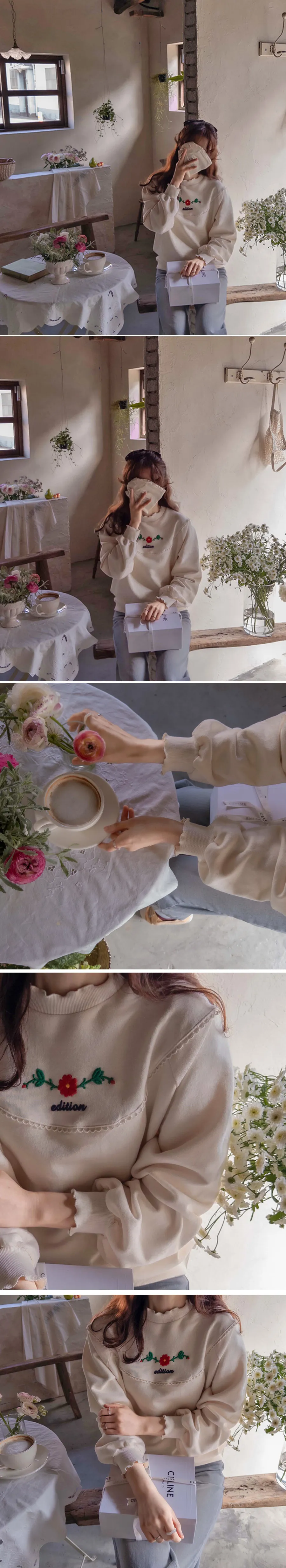 浪漫蕾絲花朵柔軟彈性可內搭半高領上衣