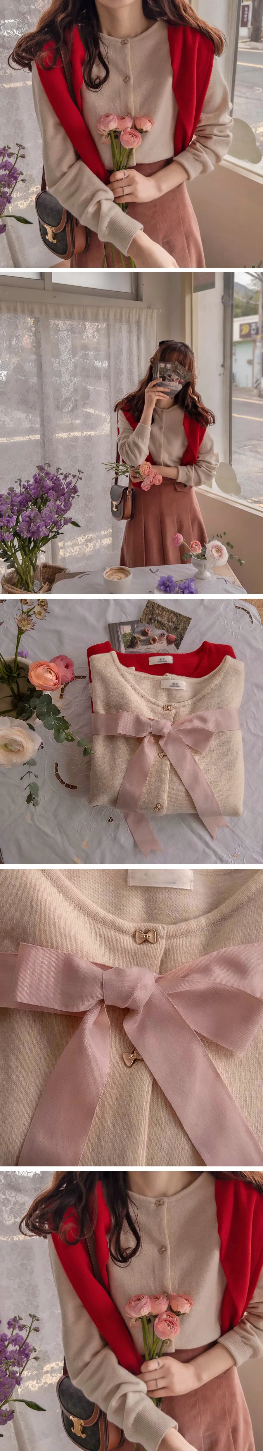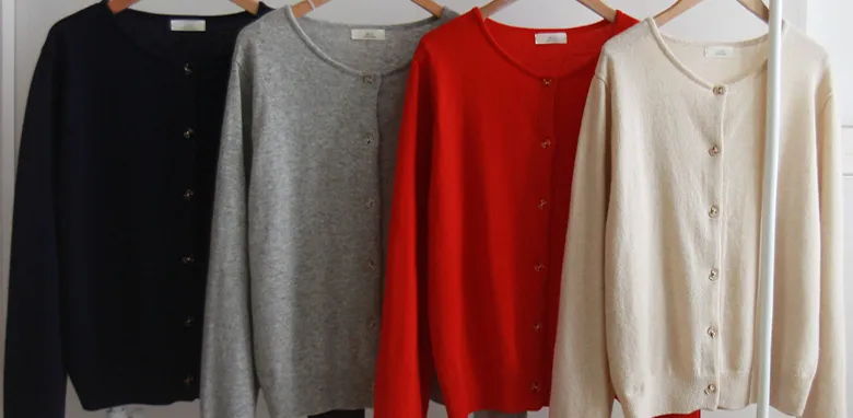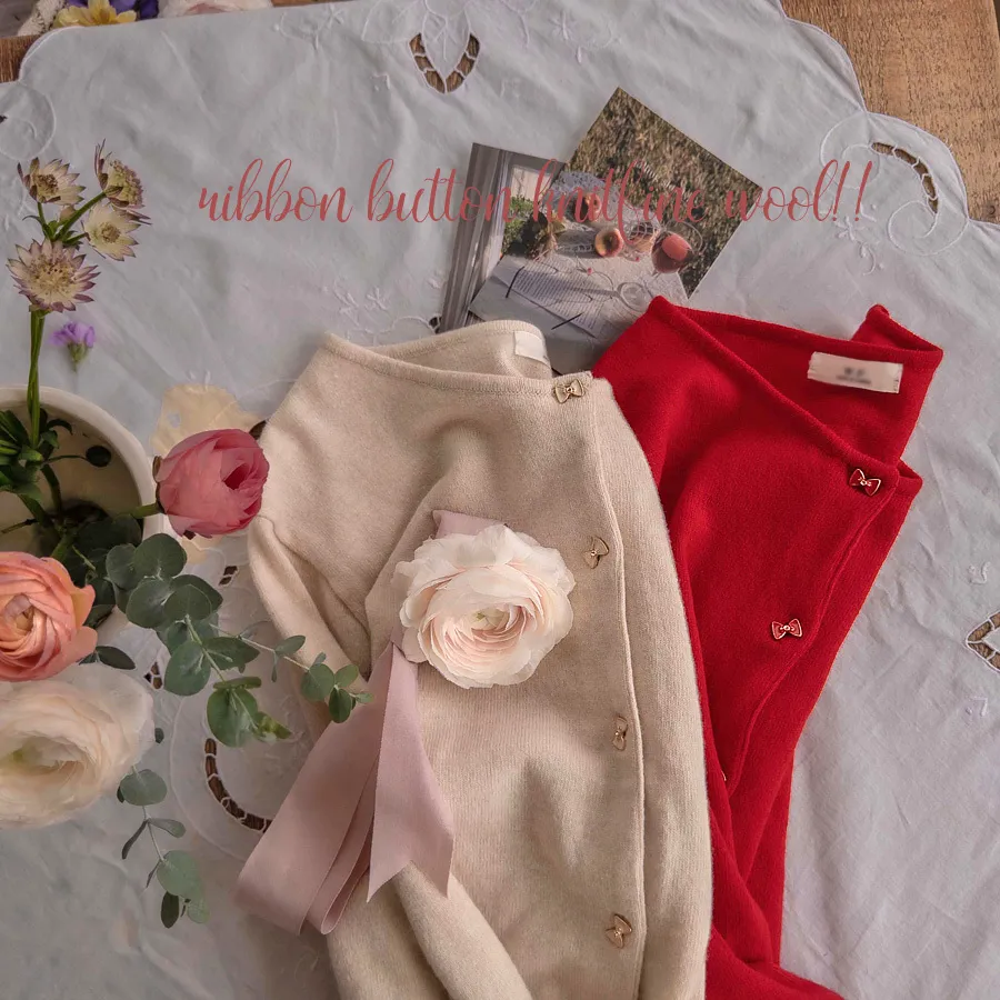 [含有50%羊毛] [高品質開襟衫,手感柔軟] [由絲帶鈕扣組成,作為點綴很漂亮]
