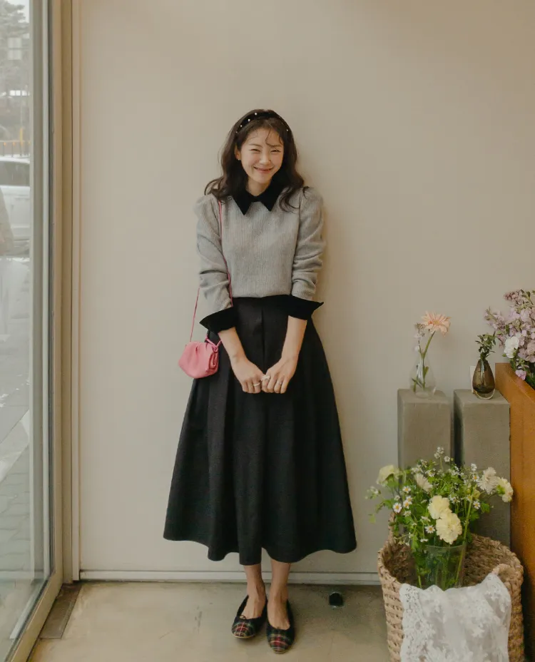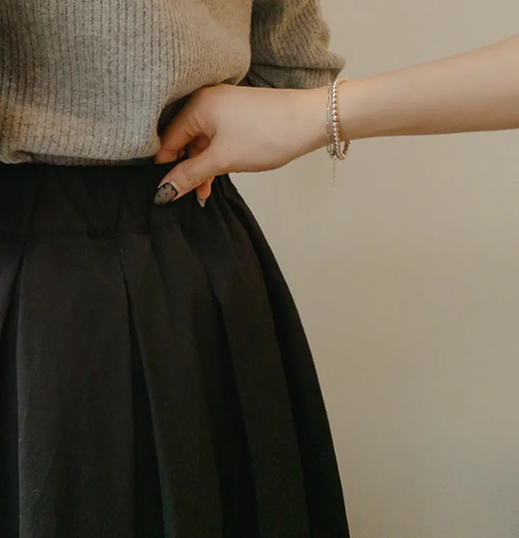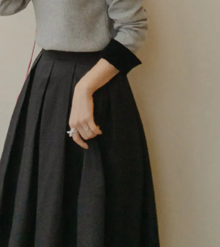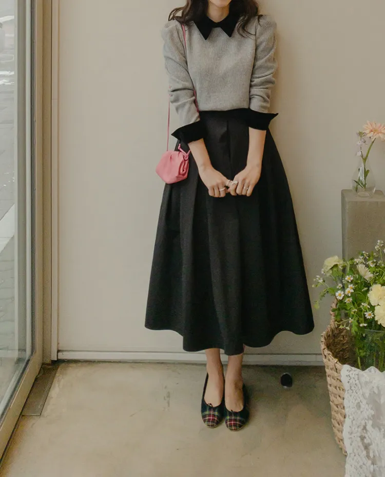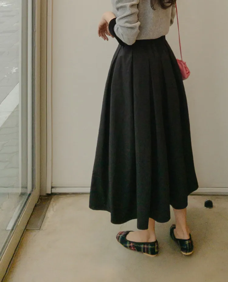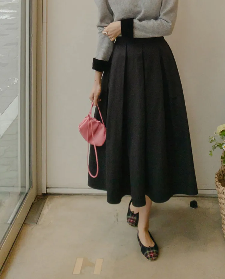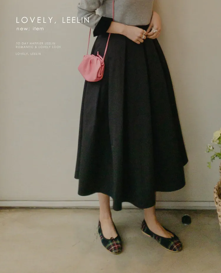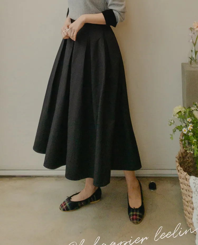 【精緻針褶長裙♡】【女人味十足的傘擺線真漂亮】【沙沙作響的棉混紡,零皺紋!】