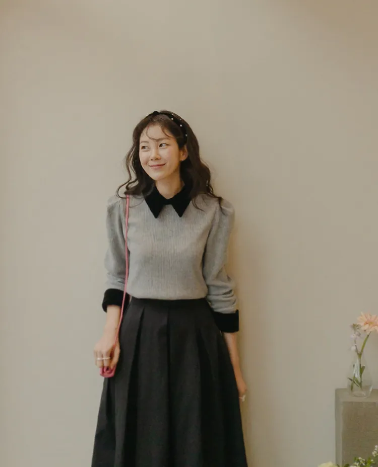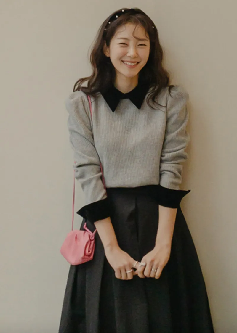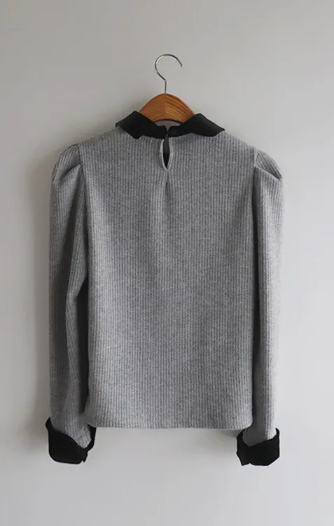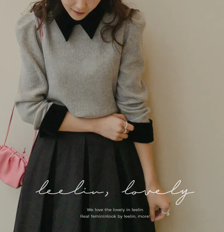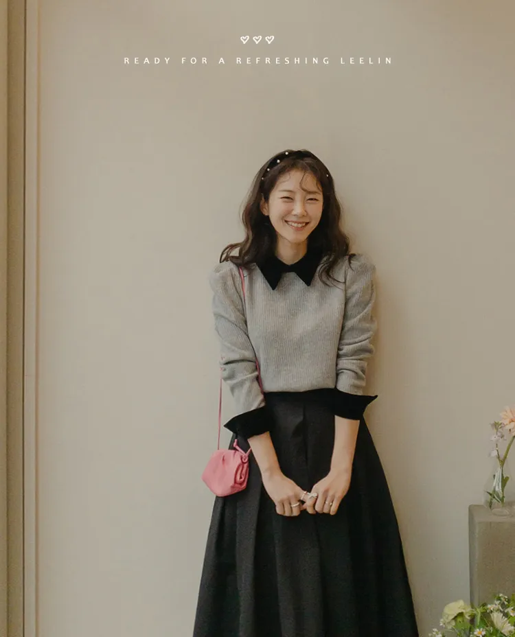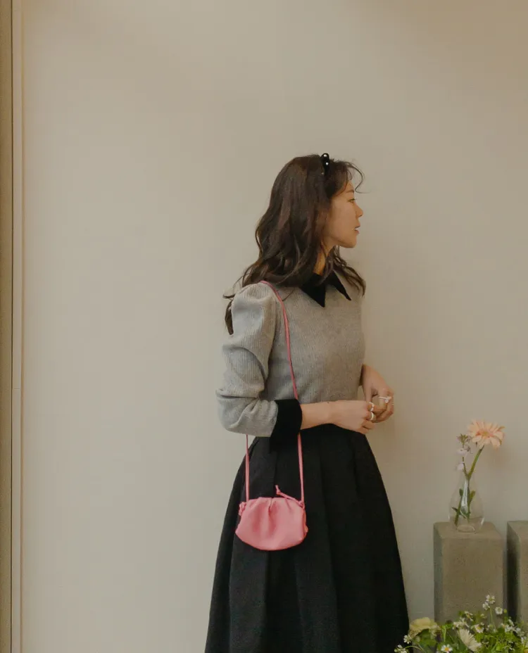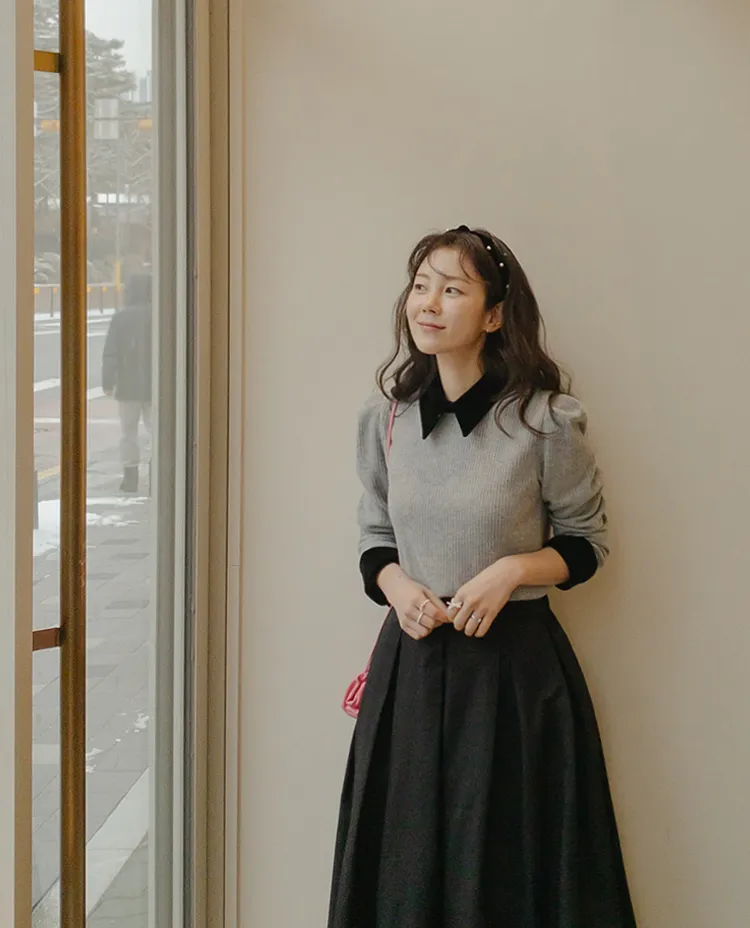 [色彩羅紋針織,乾淨俐落、現代感][彩色,袖子末端的天鵝絨袖口設計,打造精緻設計][肩部褶皺和針褶,打造可愛的肩線♡][包含一個一點點羊毛保暖][只需一件即可完成時尚服裝]