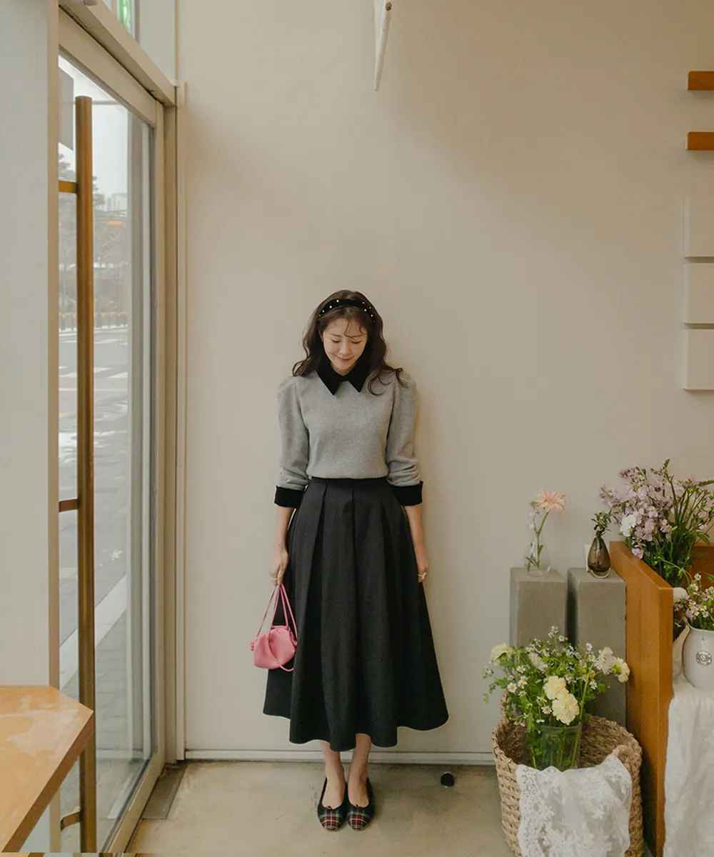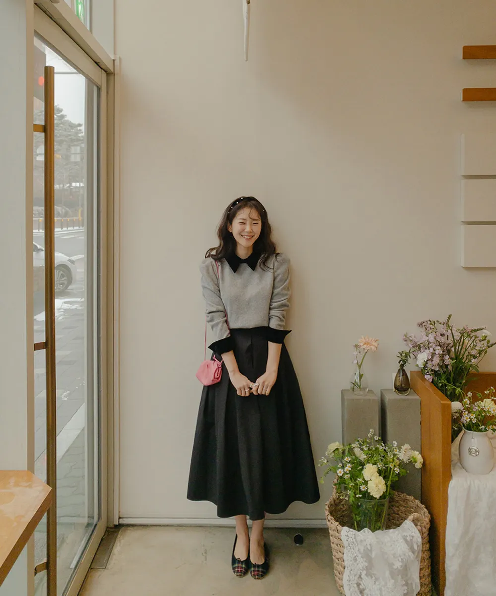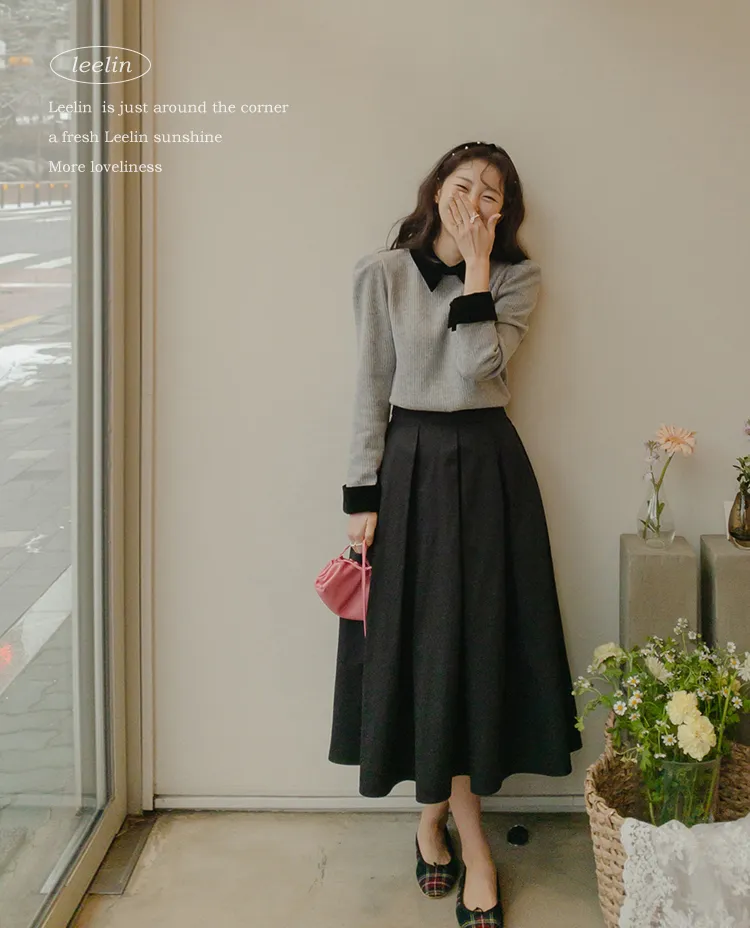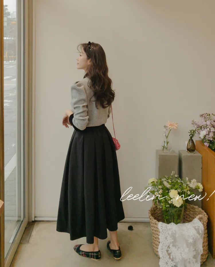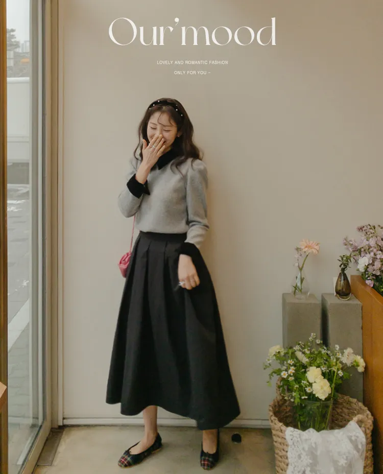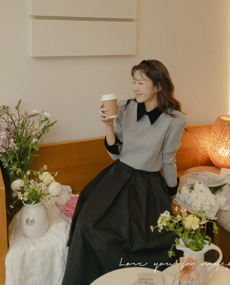 [色彩羅紋針織,乾淨俐落、現代感][彩色,袖子末端的天鵝絨袖口設計,打造精緻設計][肩部褶皺和針褶,打造可愛的肩線♡][包含一個一點點羊毛保暖][只需一件即可完成時尚服裝]