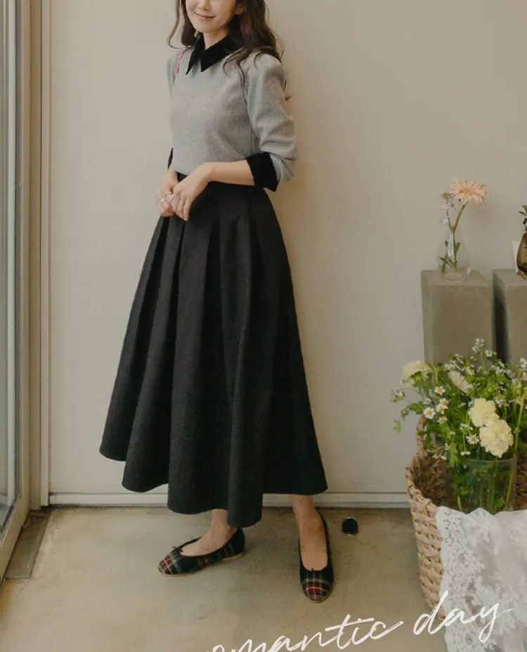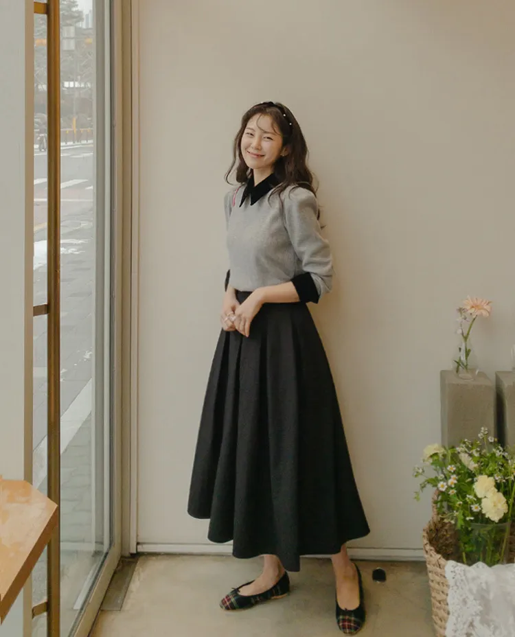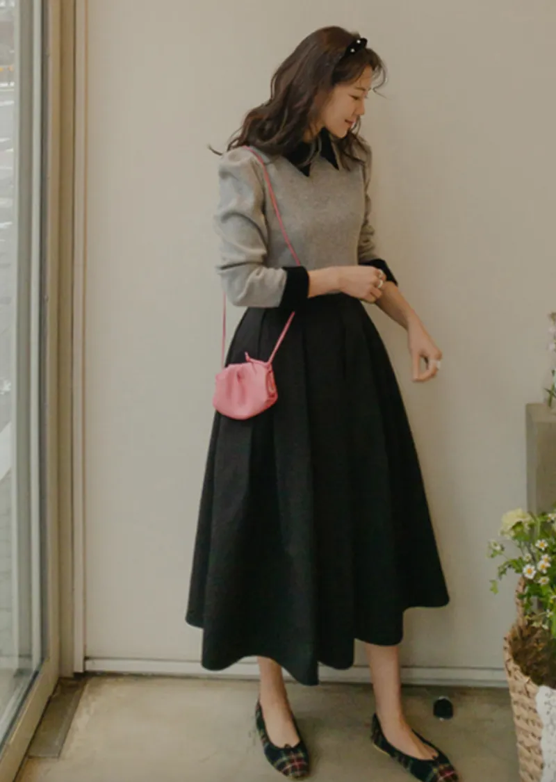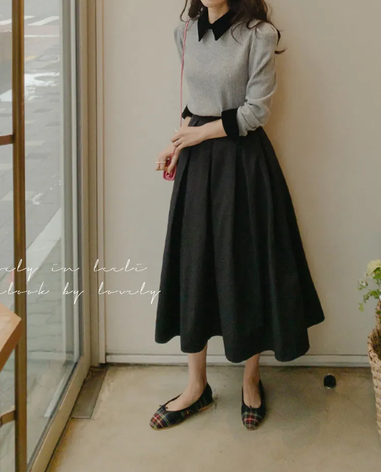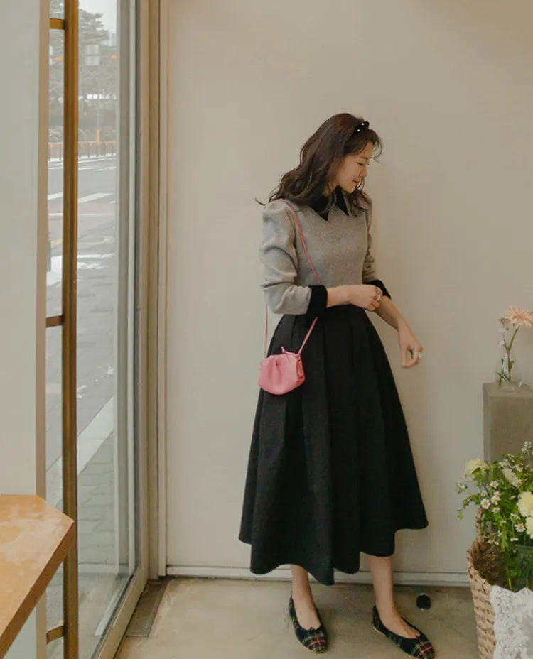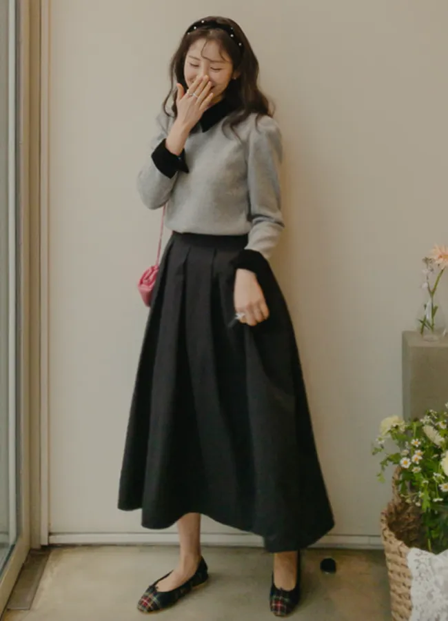 [色彩羅紋針織,乾淨俐落、現代感][彩色,袖子末端的天鵝絨袖口設計,打造精緻設計][肩部褶皺和針褶,打造可愛的肩線♡][包含一個一點點羊毛保暖][只需一件即可完成時尚服裝]