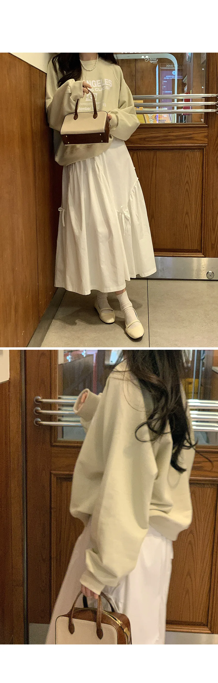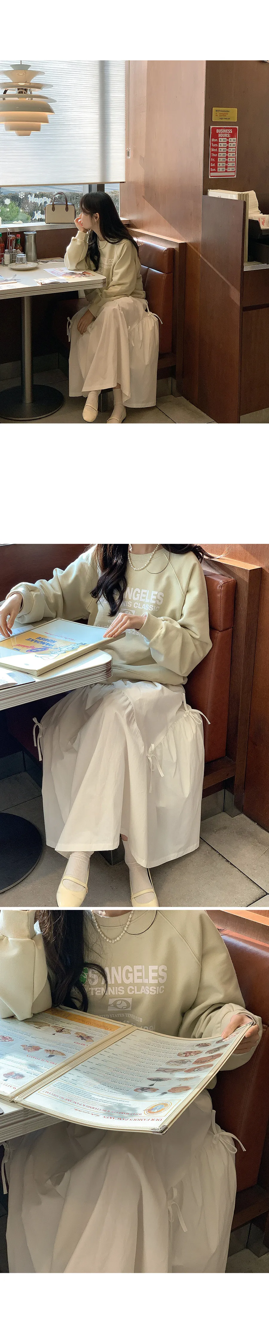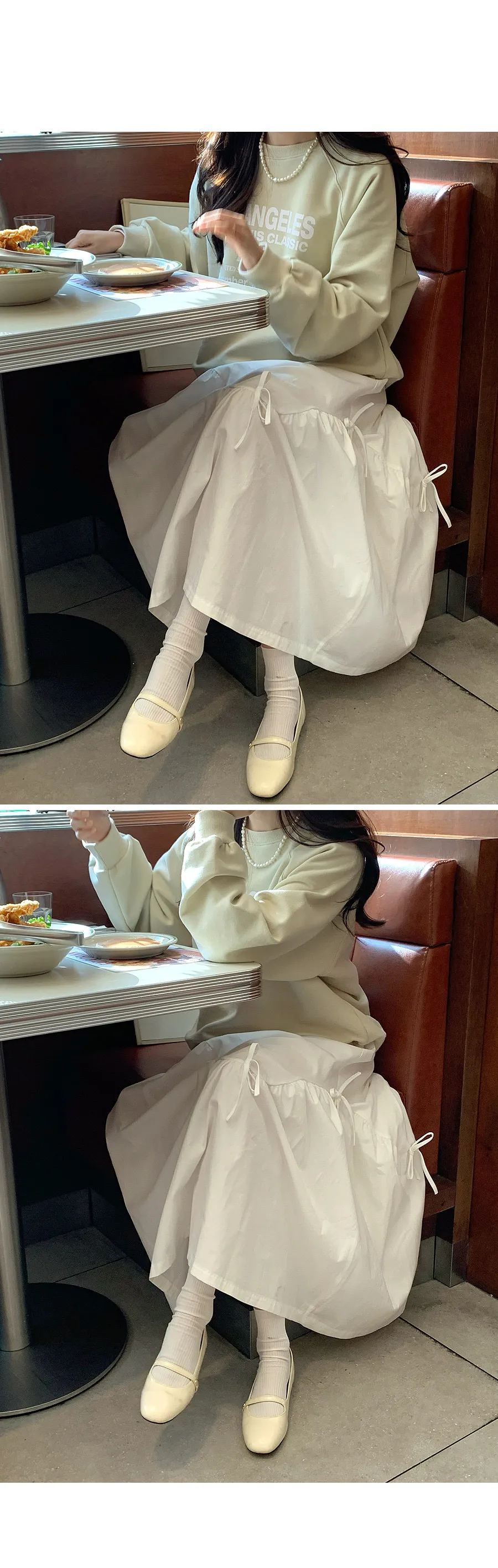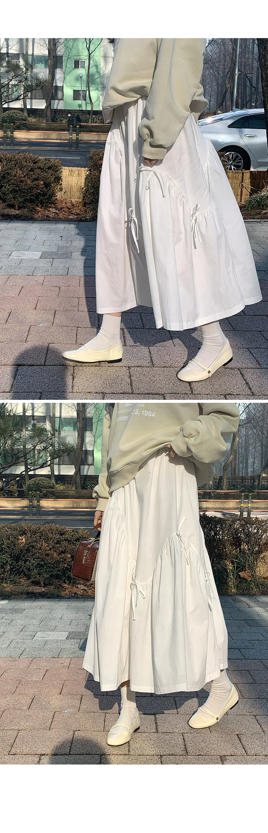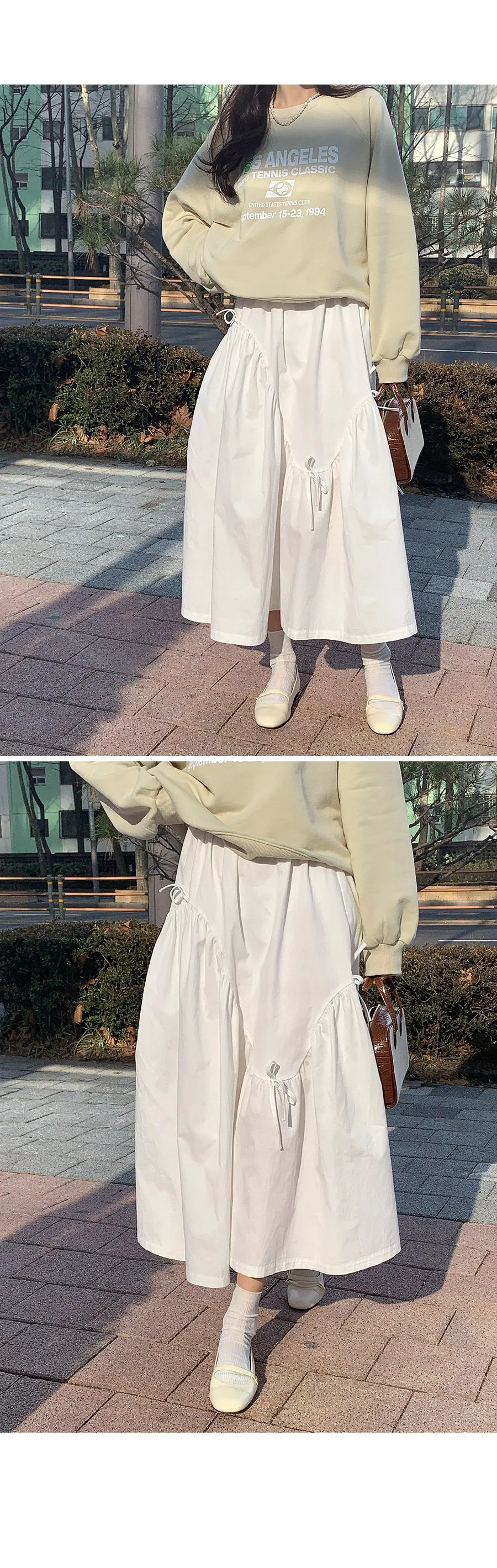 可愛綁帶抽褶波浪線柔軟中長裙