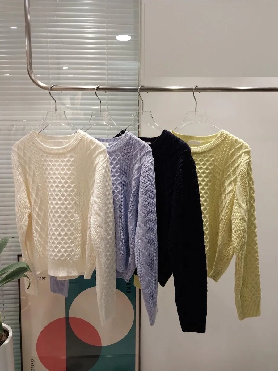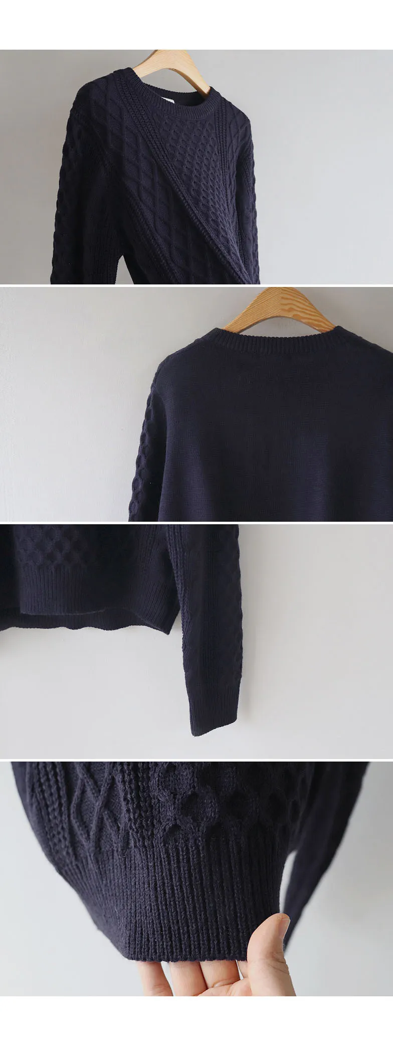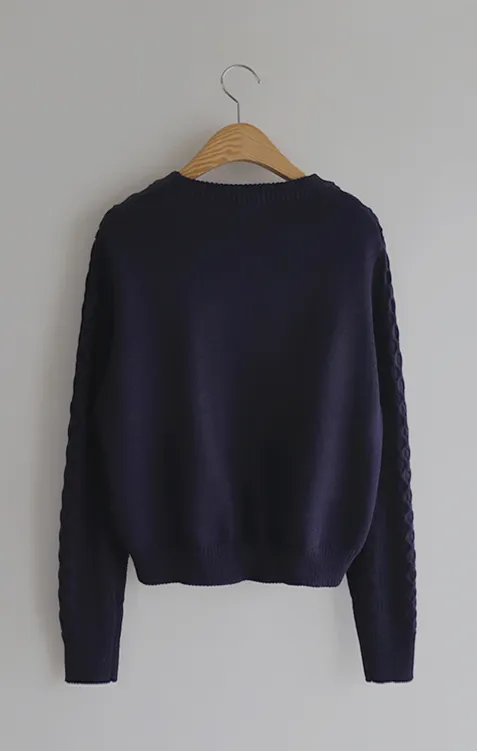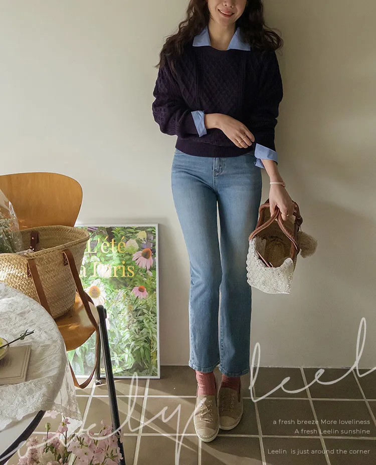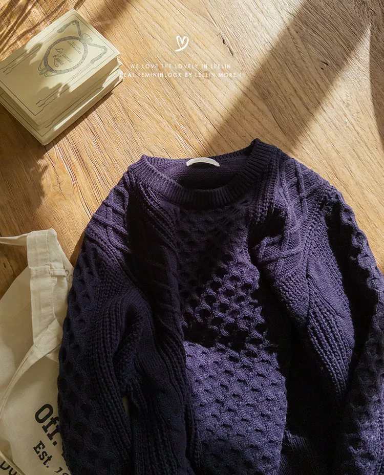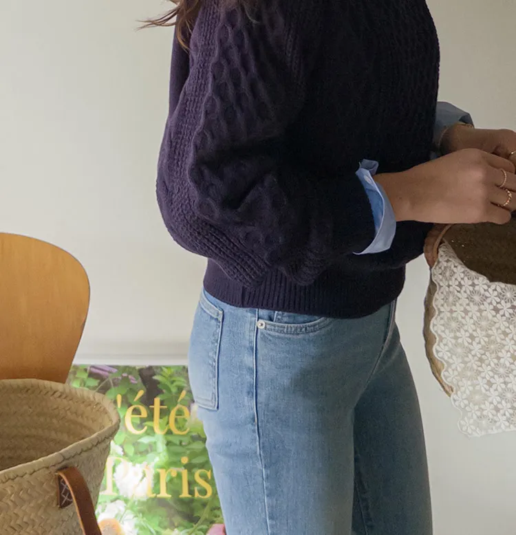 迷人混合編織舒適針織上衣 深藍色穿搭照