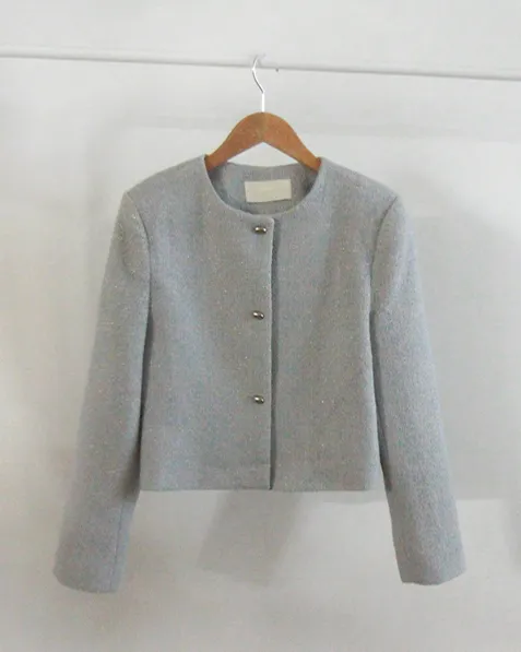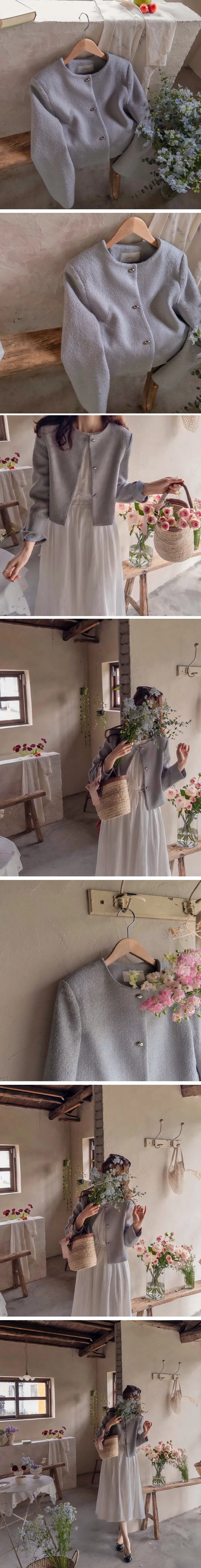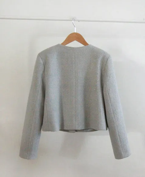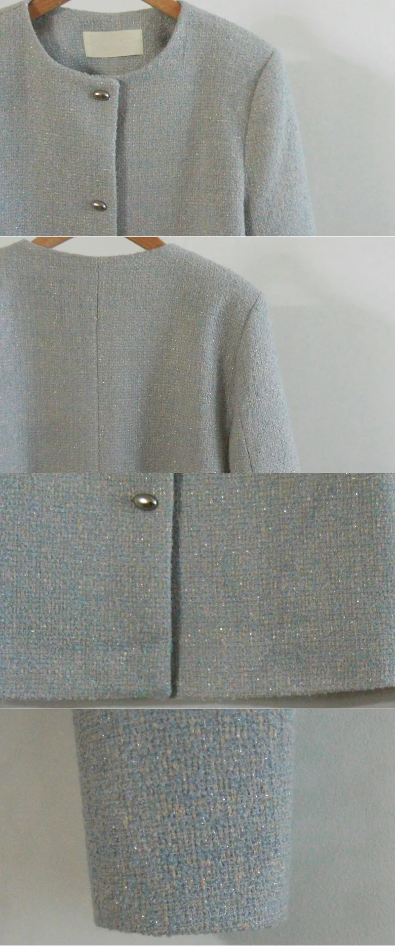 柔和珠光銀色圓角鈕扣花呢外套