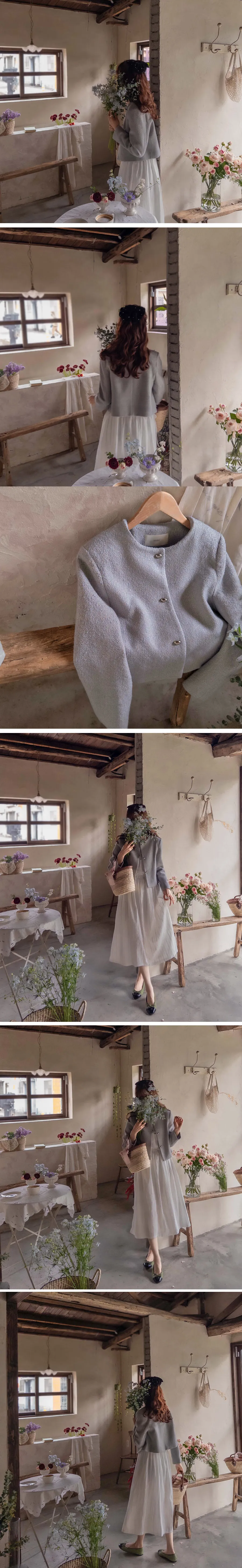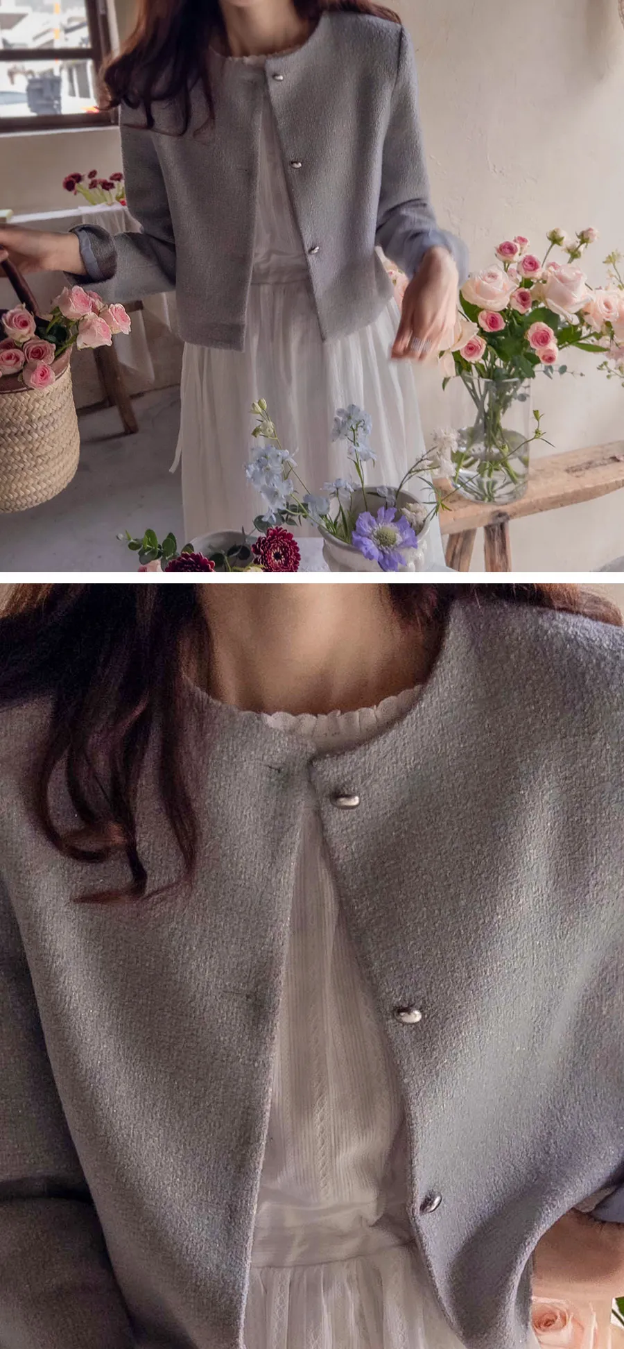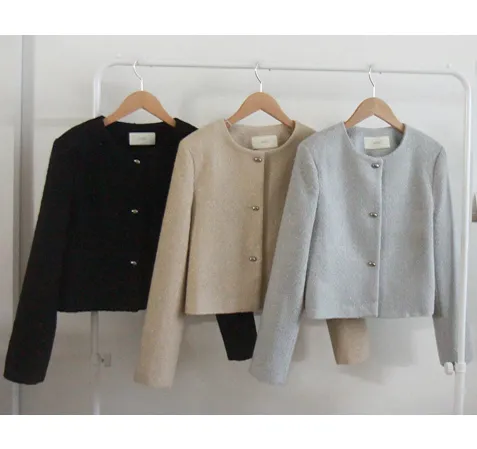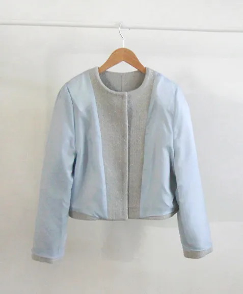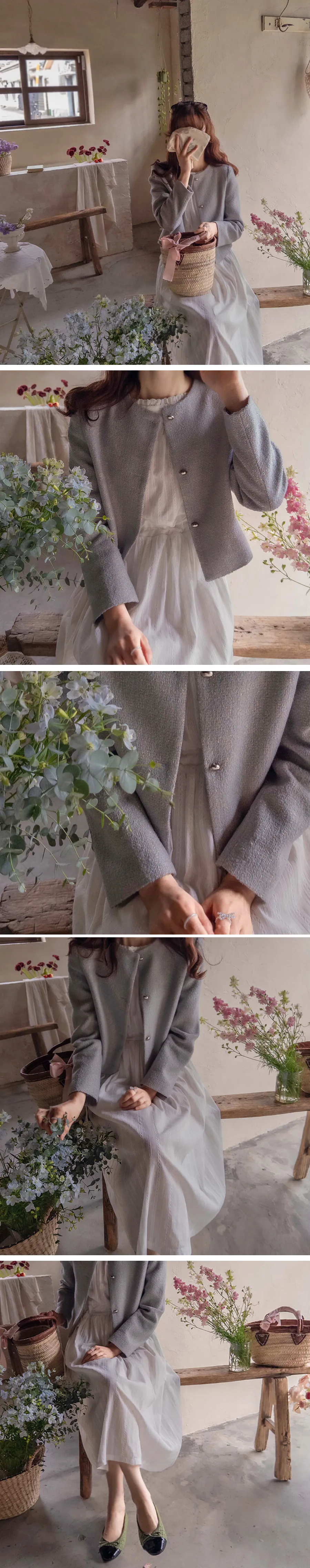 柔和珠光銀色圓角鈕扣花呢外套