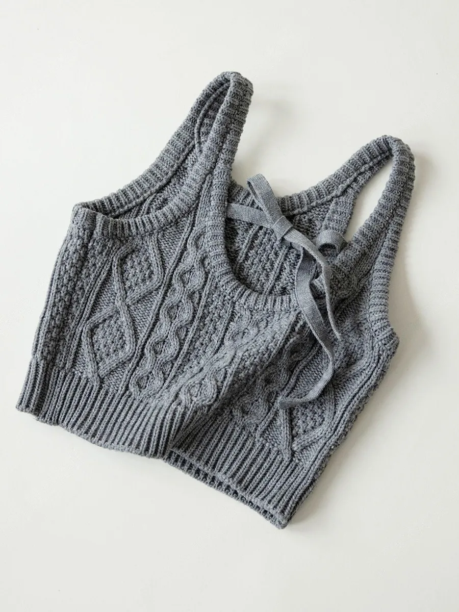 【帶有精緻的彩色扭紋圖案】【在背後繫上絲帶,給穿搭帶來活力】【疊穿時漂亮的單品】【推薦這款可愛的針織]【可愛的綁帶】