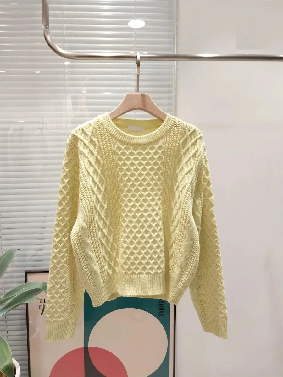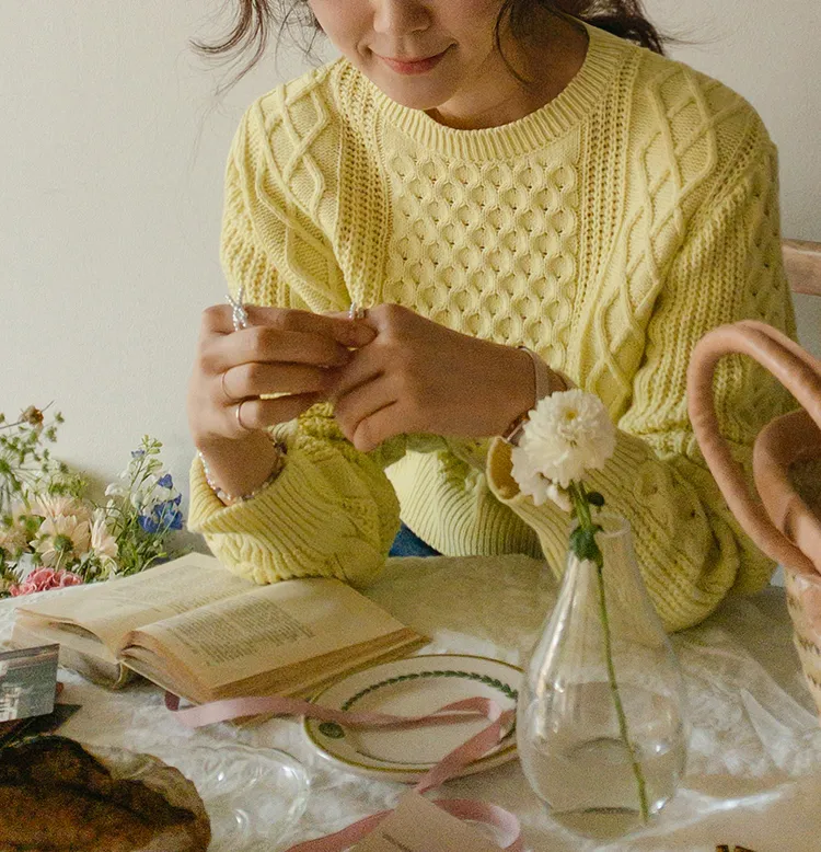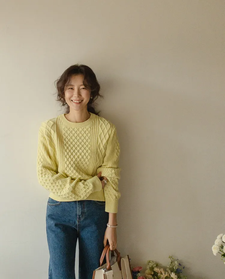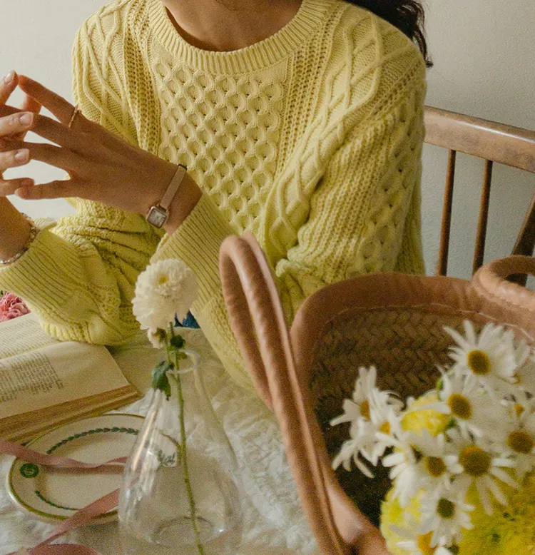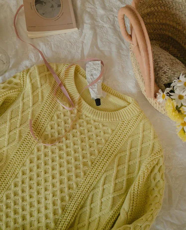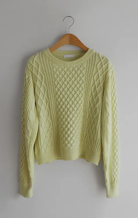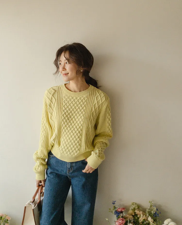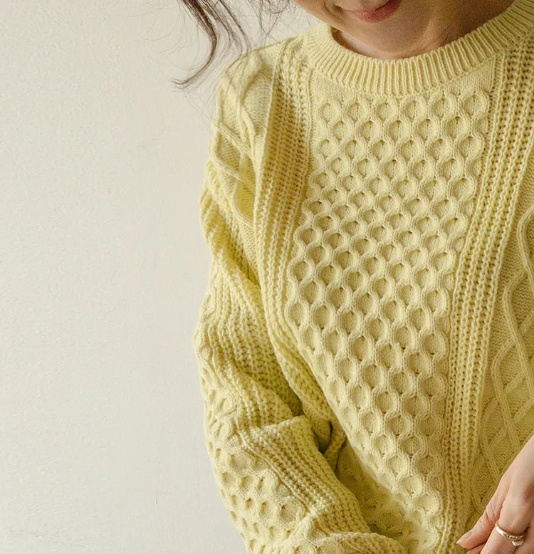 迷人混合編織舒適針織上衣 黃綠色穿搭照