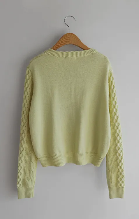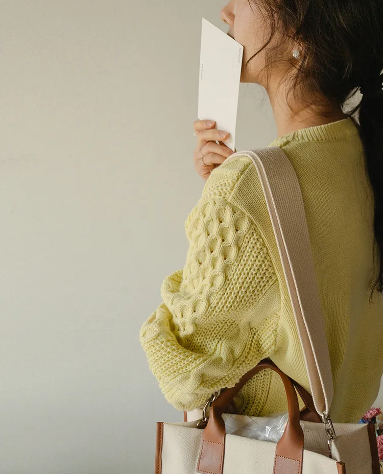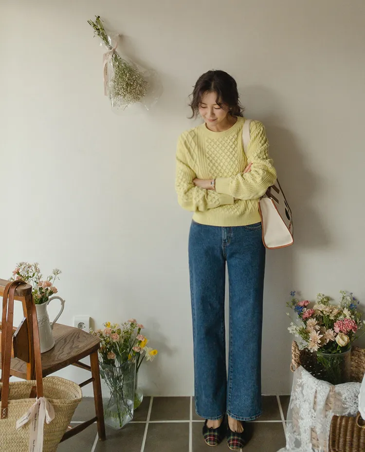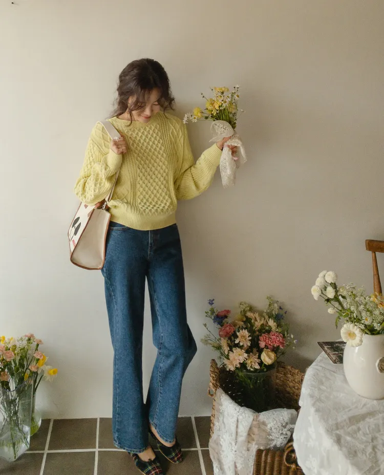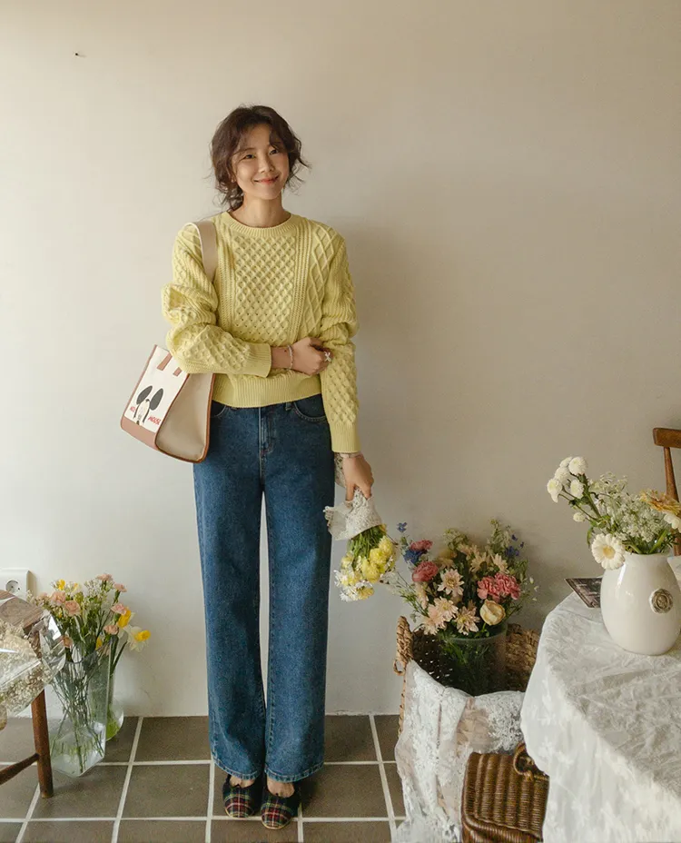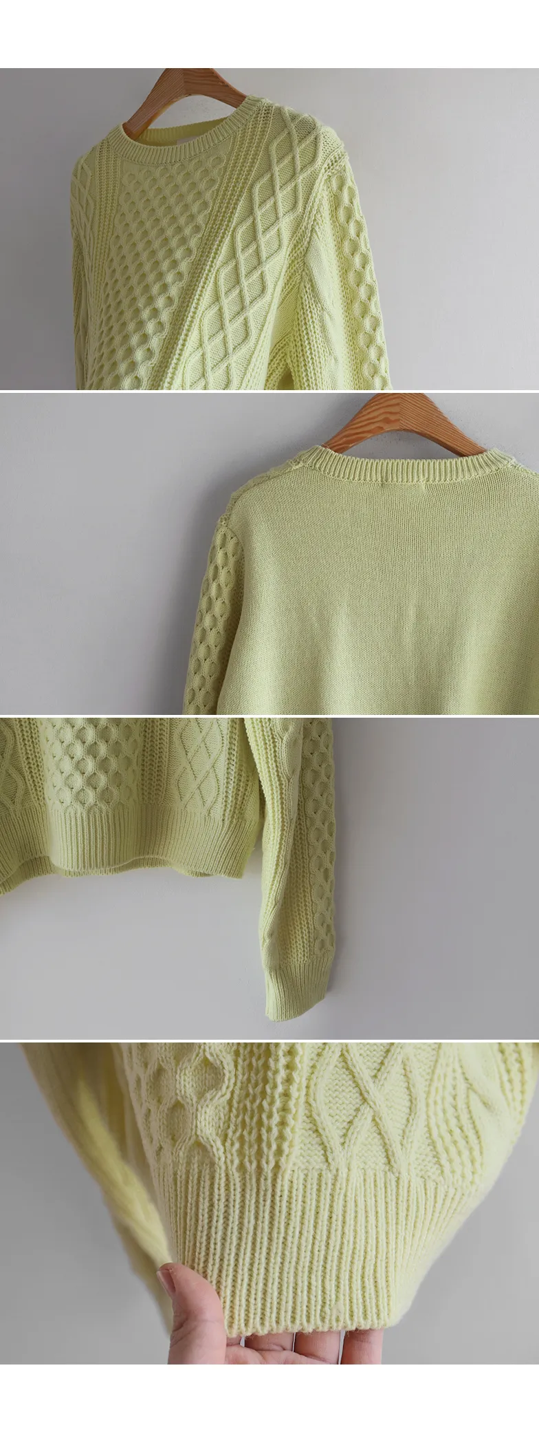 迷人混合編織舒適針織上衣 黃綠色穿搭照
