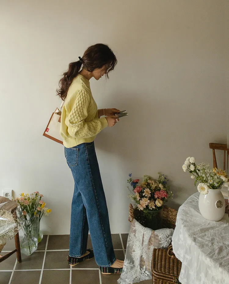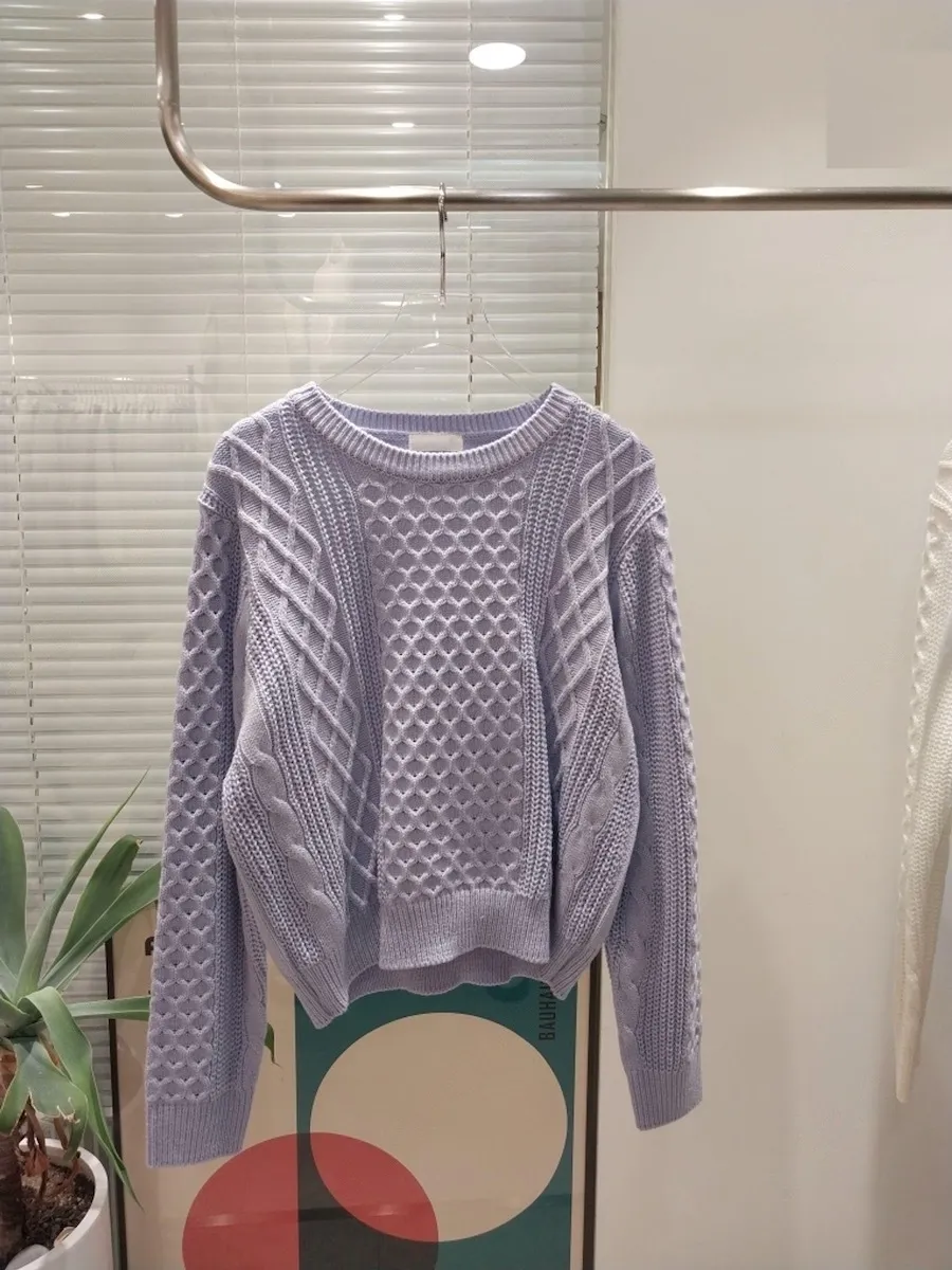 迷人混合編織舒適針織上衣 深藍色穿搭照