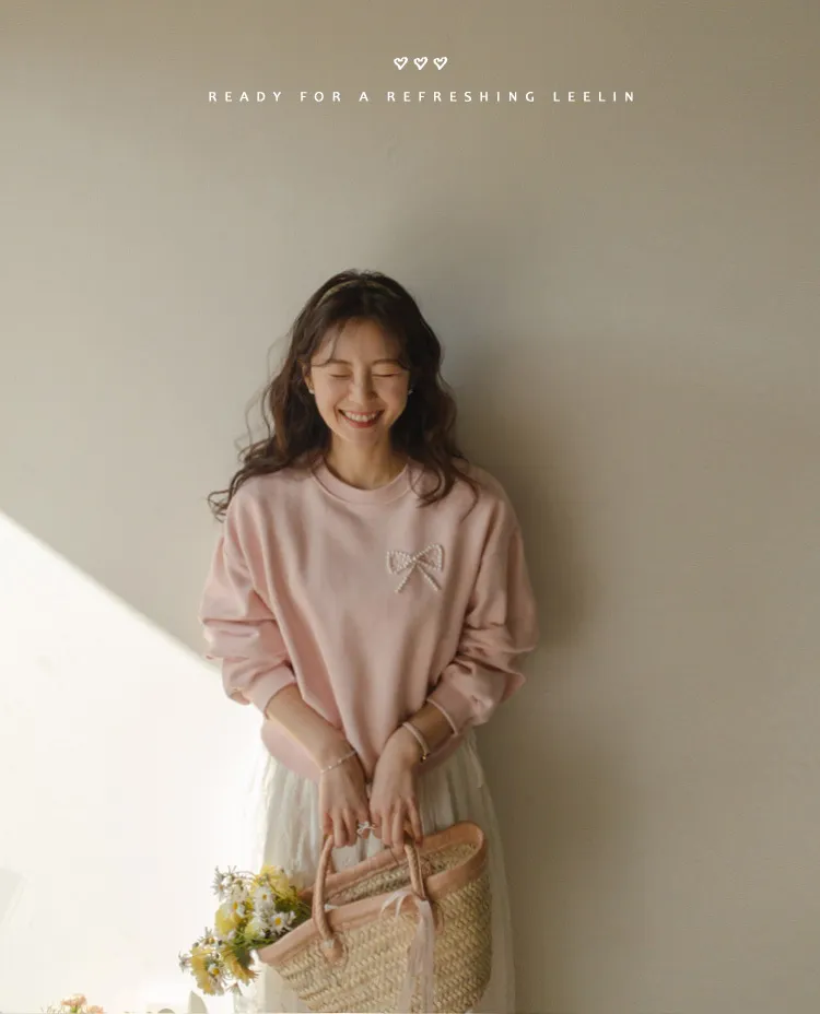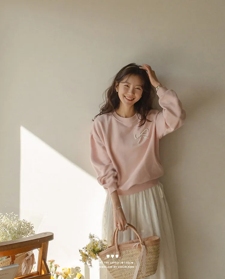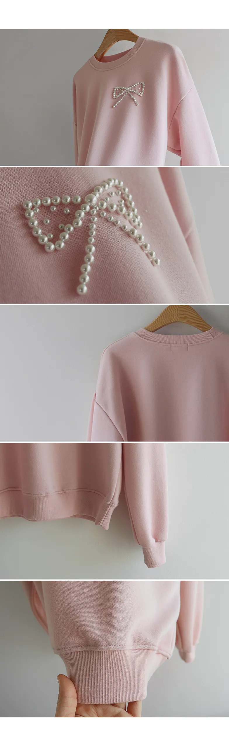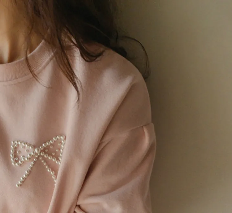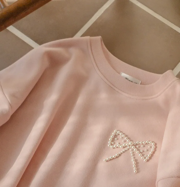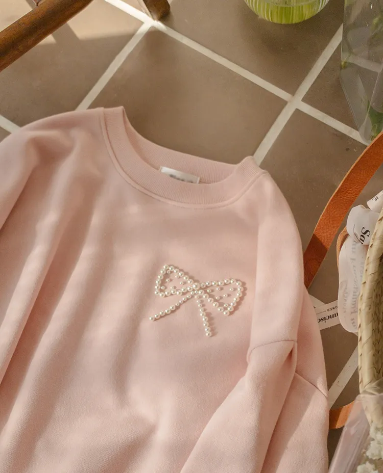 可愛蝴蝶結點綴珍珠裝飾上衣