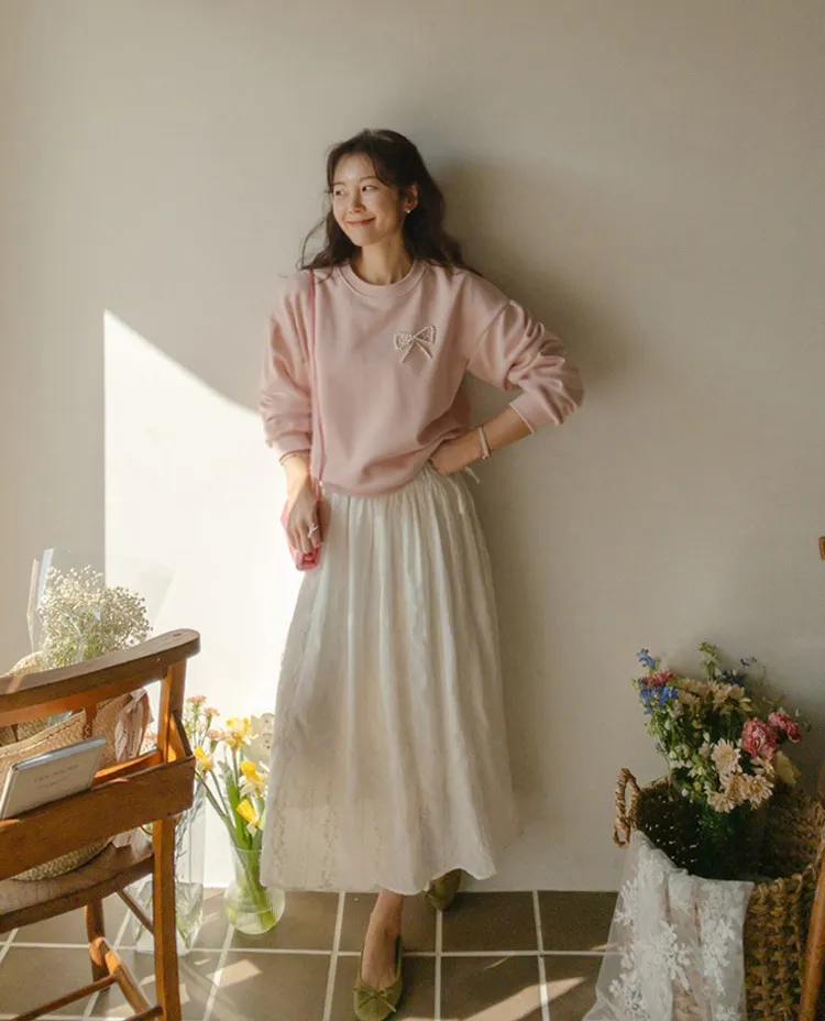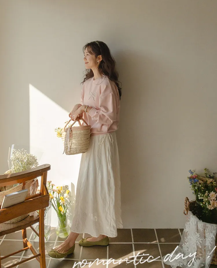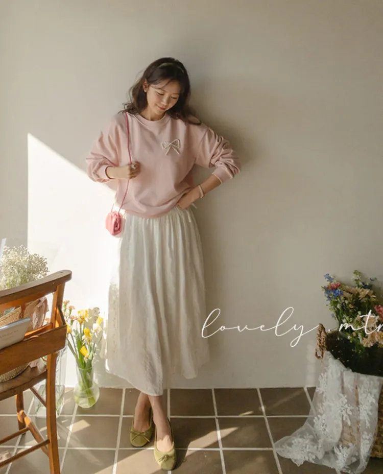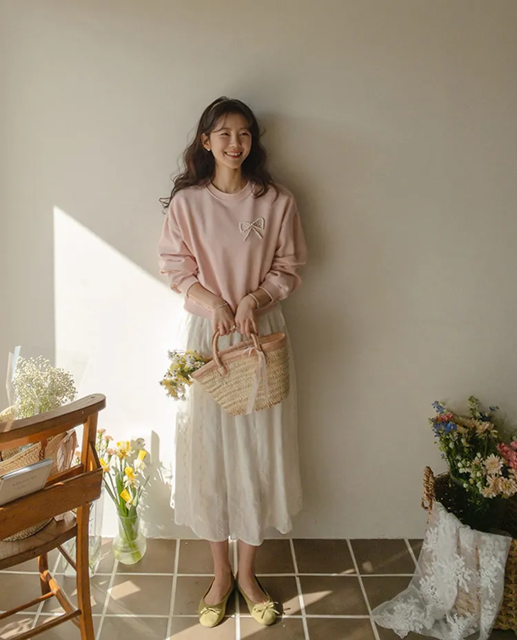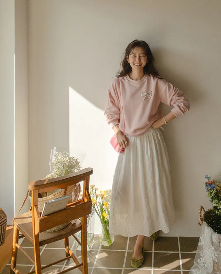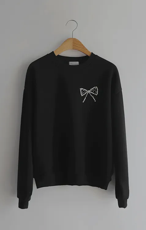可愛蝴蝶結點綴珍珠裝飾上衣