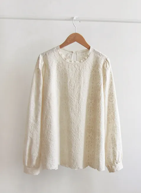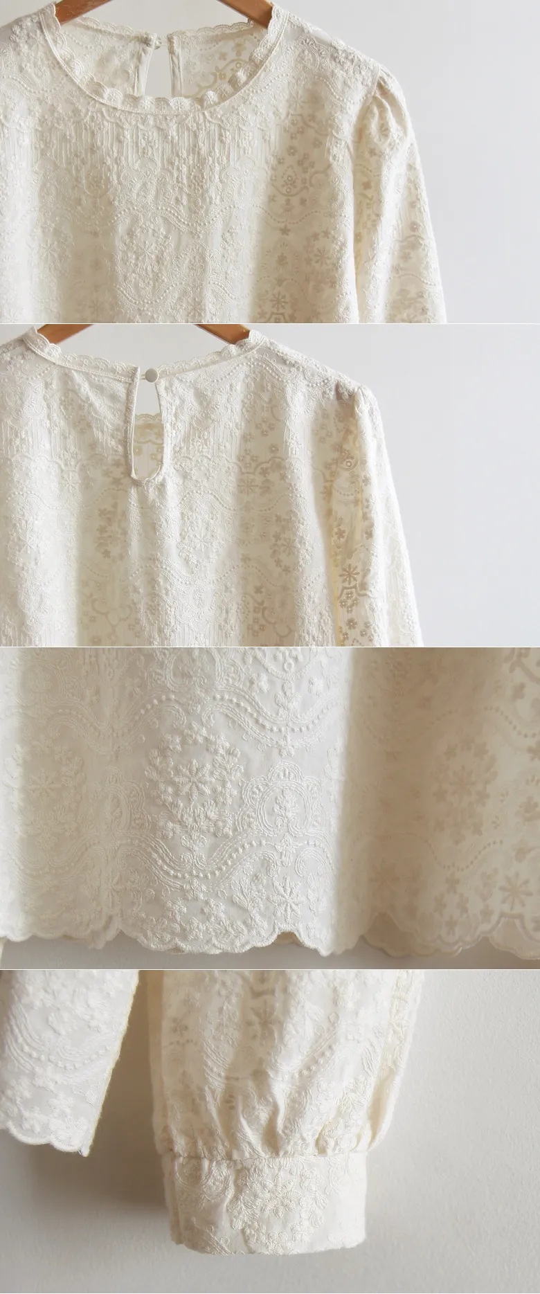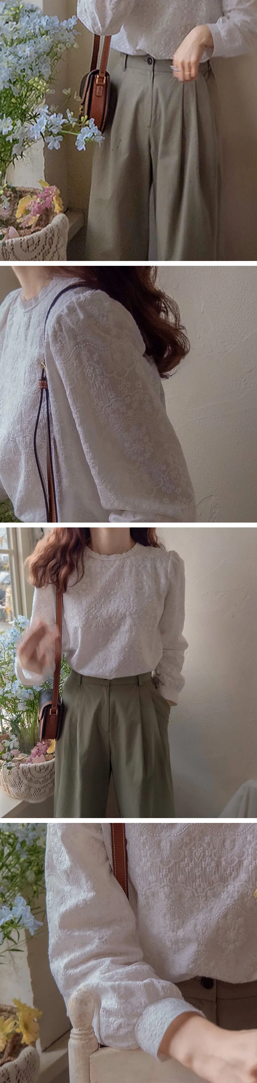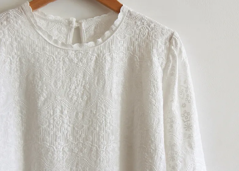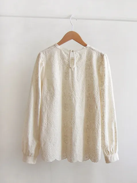【可愛的蕾絲設計,帶有微妙的花朵刺繡】【波浪狀的蕾絲領也很漂亮】【袖子和肩部也有微妙的細摺,營造出優雅感】【明亮的春天色彩穿起來很棒】【底部的波浪也很漂亮