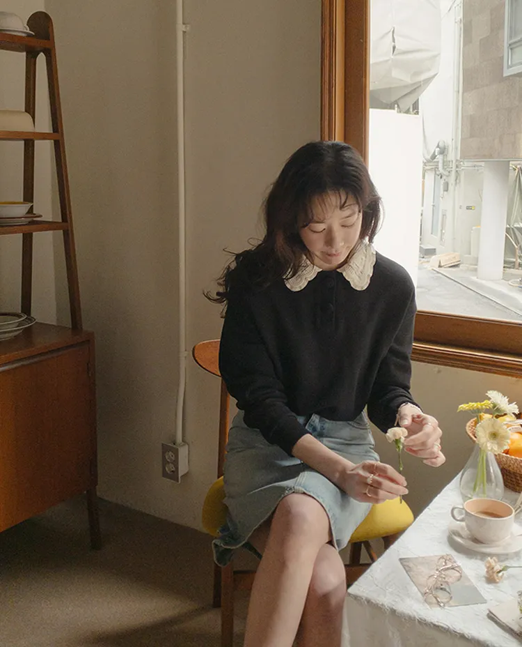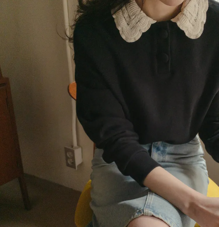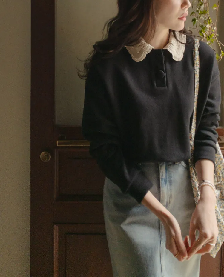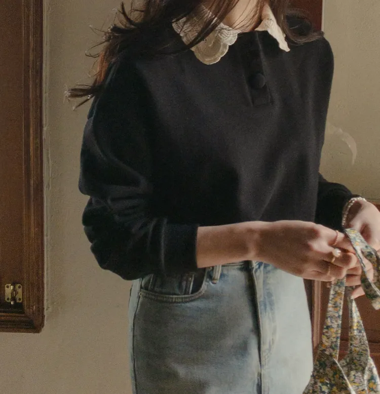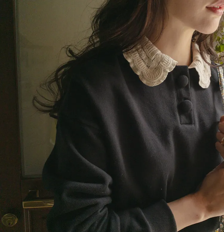 好搭層次感柔美蕾絲領上衣