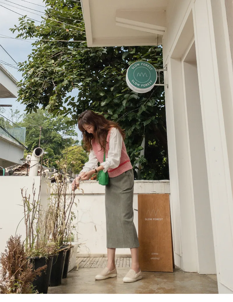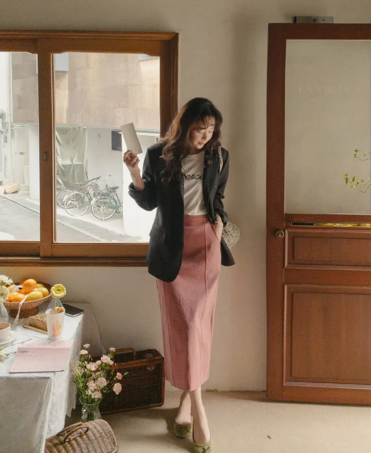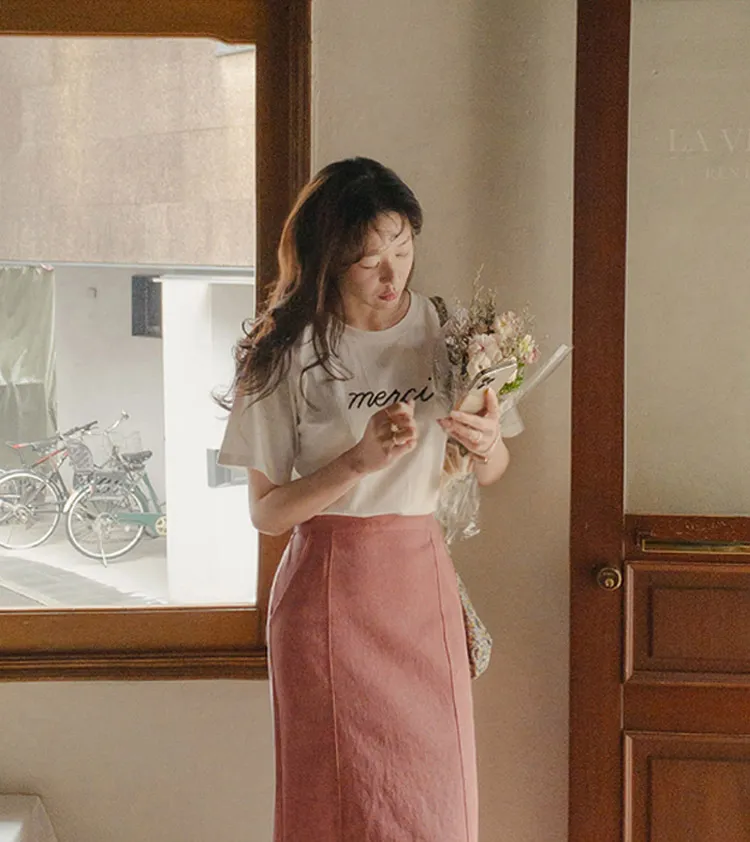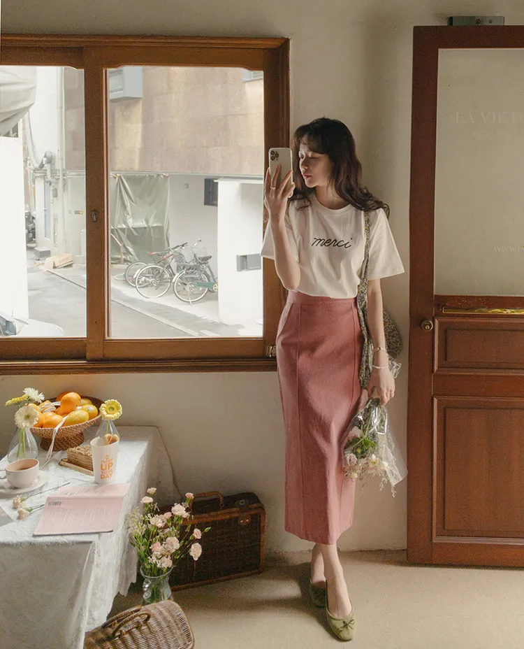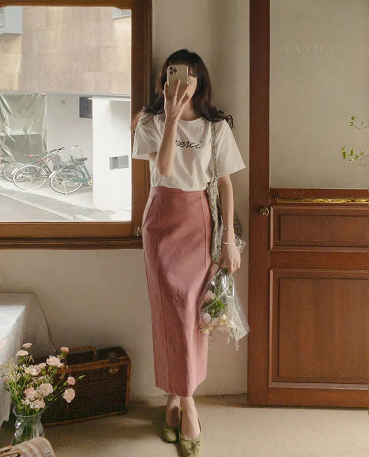 [垂向H字的裙子看起來很漂亮] [裙子背面開衩]