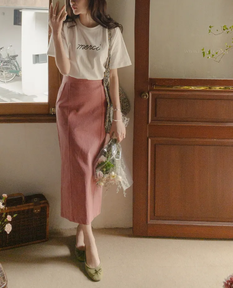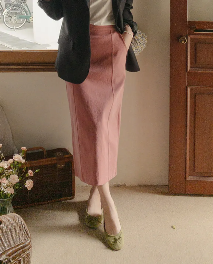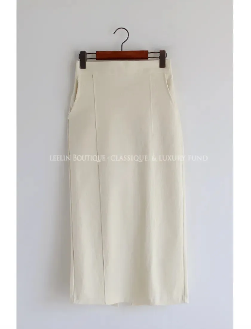 漂亮色彩舒適H型剪裁後開衩中長裙