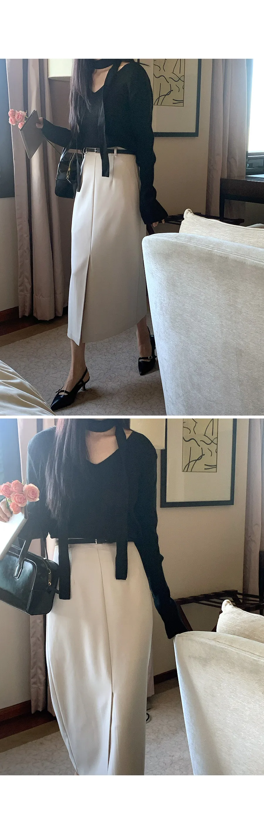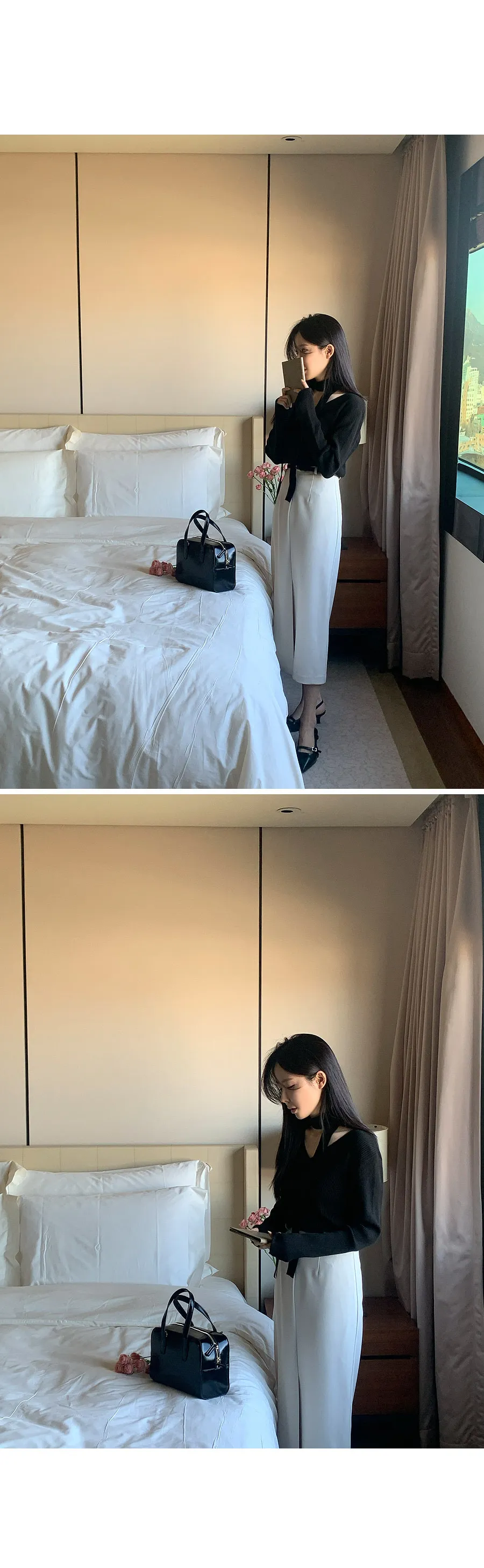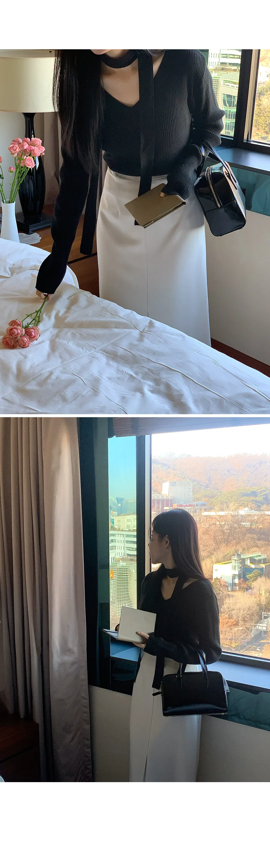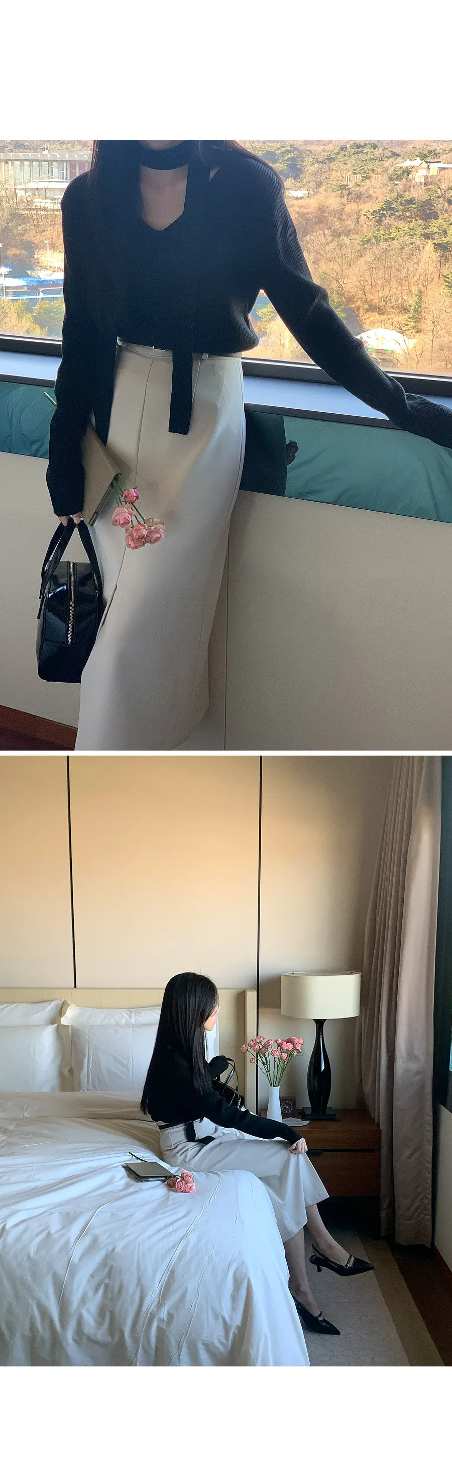 柔美羅紋針織:)領口和鎖骨線條的V領營造出柔美的氛圍,領帶套裝無需任何其他配件即可完成完美穿搭!