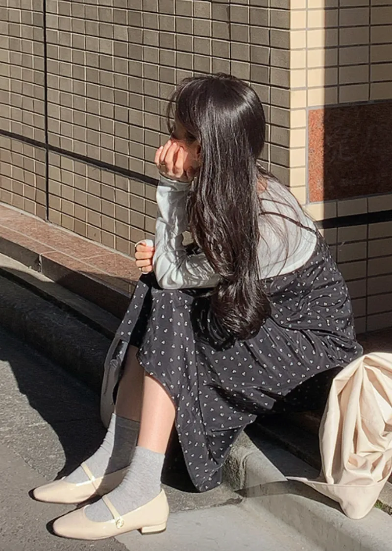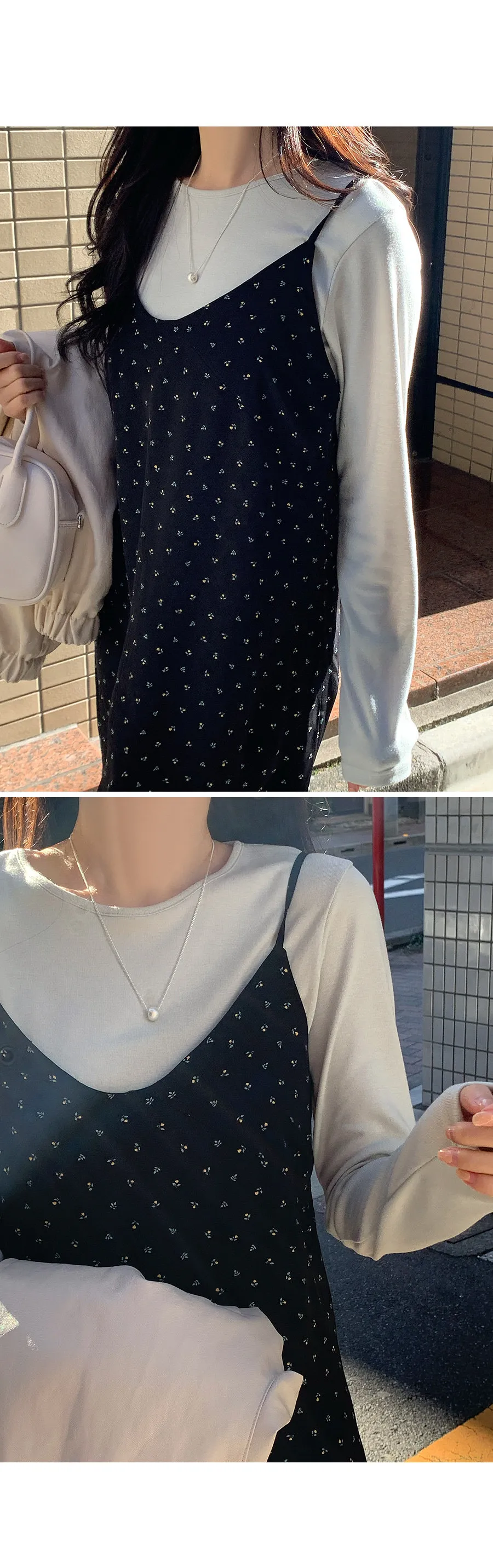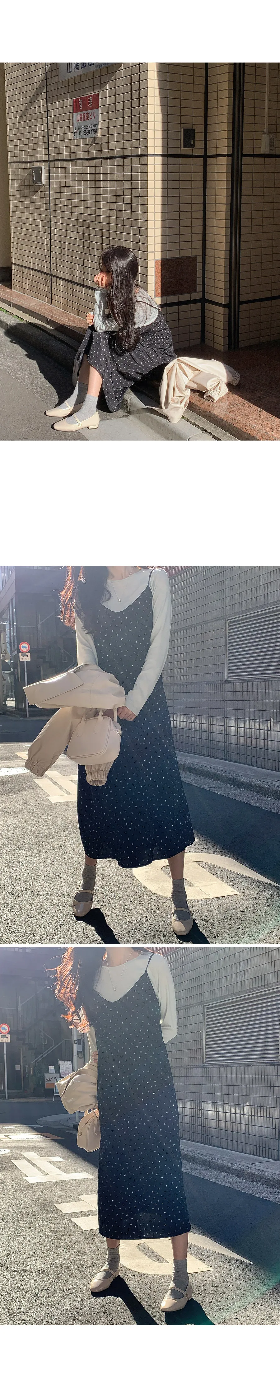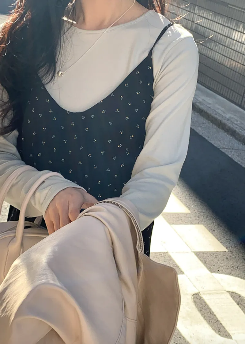 帶有微妙花朵圖案的長款連身裙,乾淨清新,非常適合搭配各種外衣,它的版型乾淨俐落:)