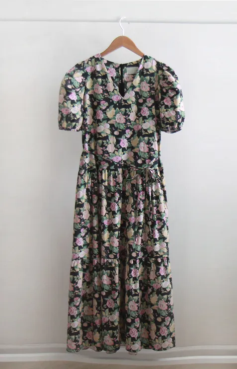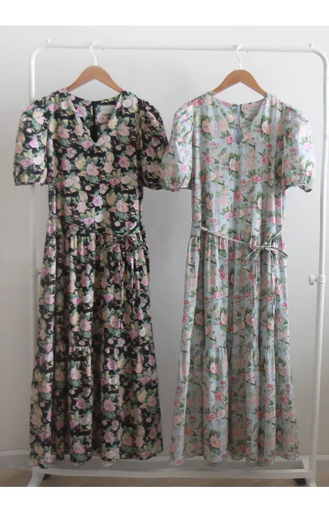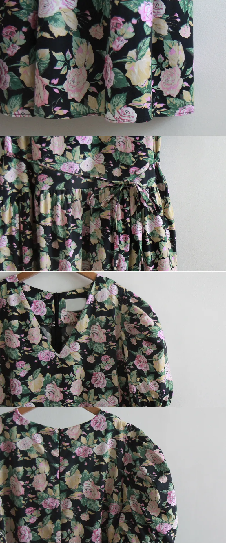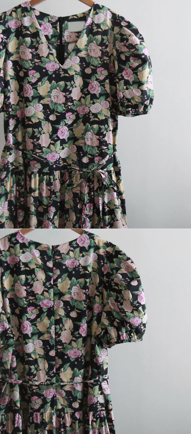 [腰帶組:可拆][後拉鍊配置][歡快花朵圖案的風格連身裙][肩部剪裁