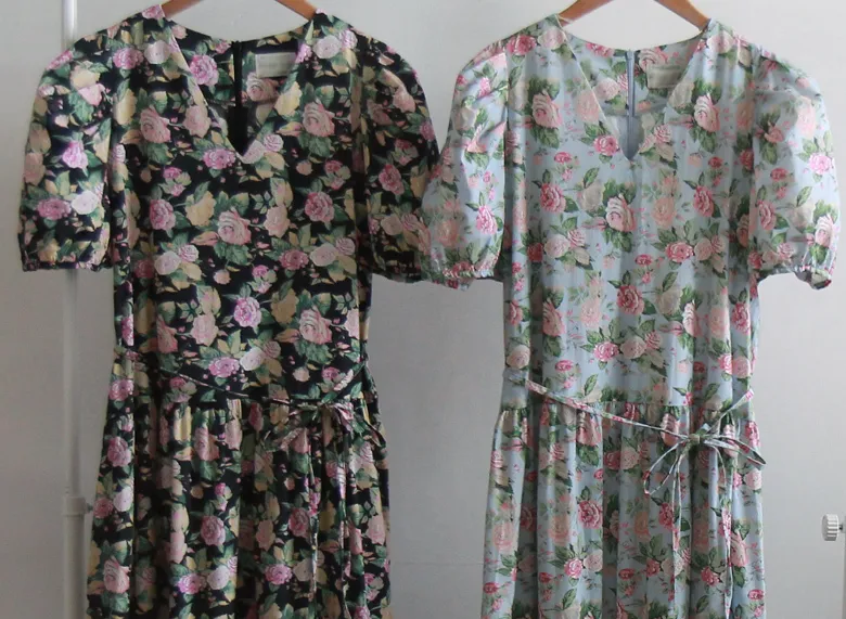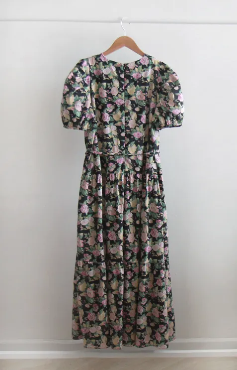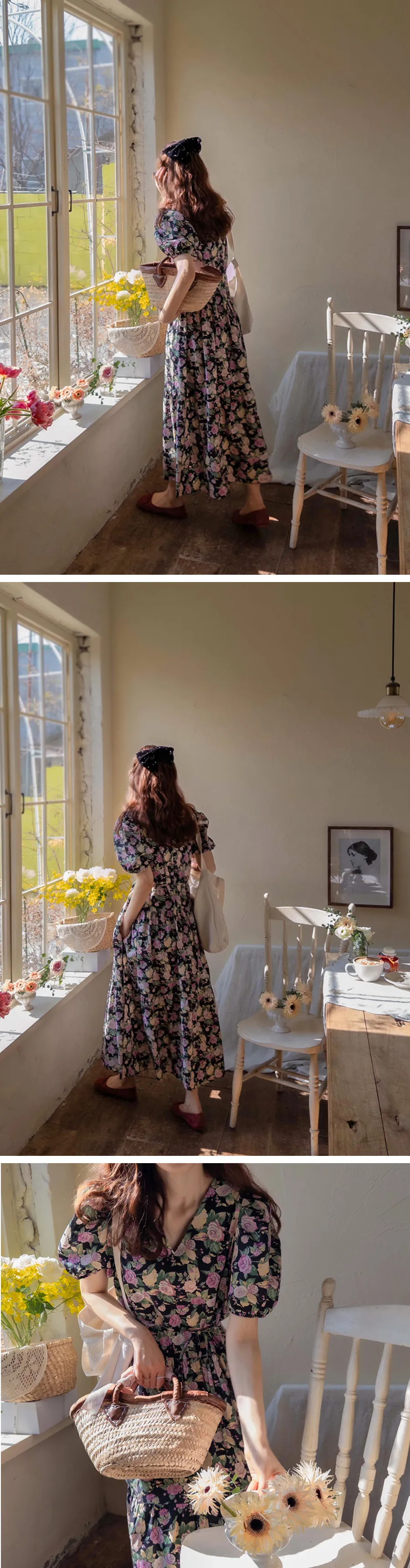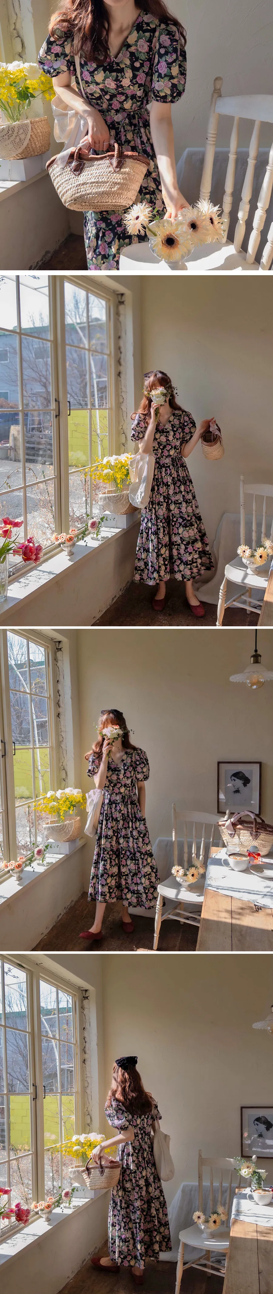 [腰帶組:可拆][後拉鍊配置][歡快花朵圖案的風格連身裙][肩部剪裁