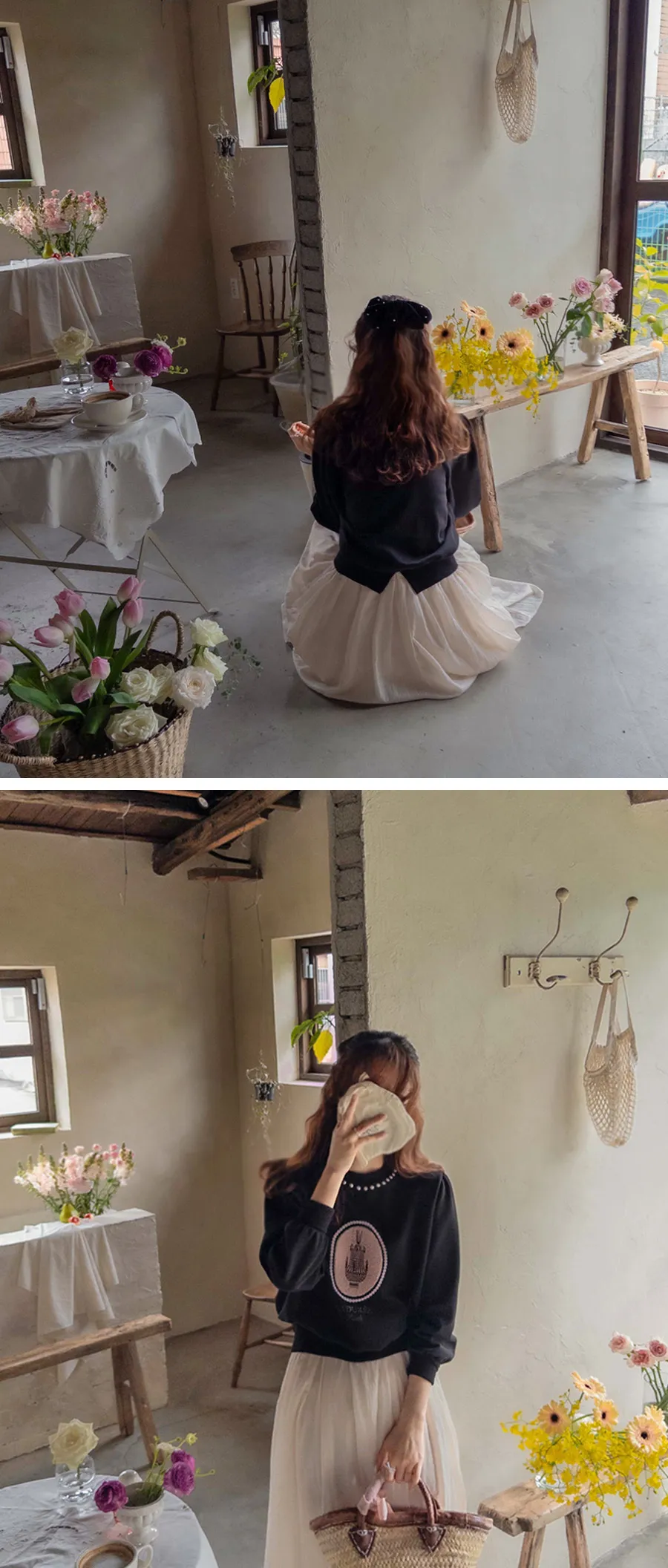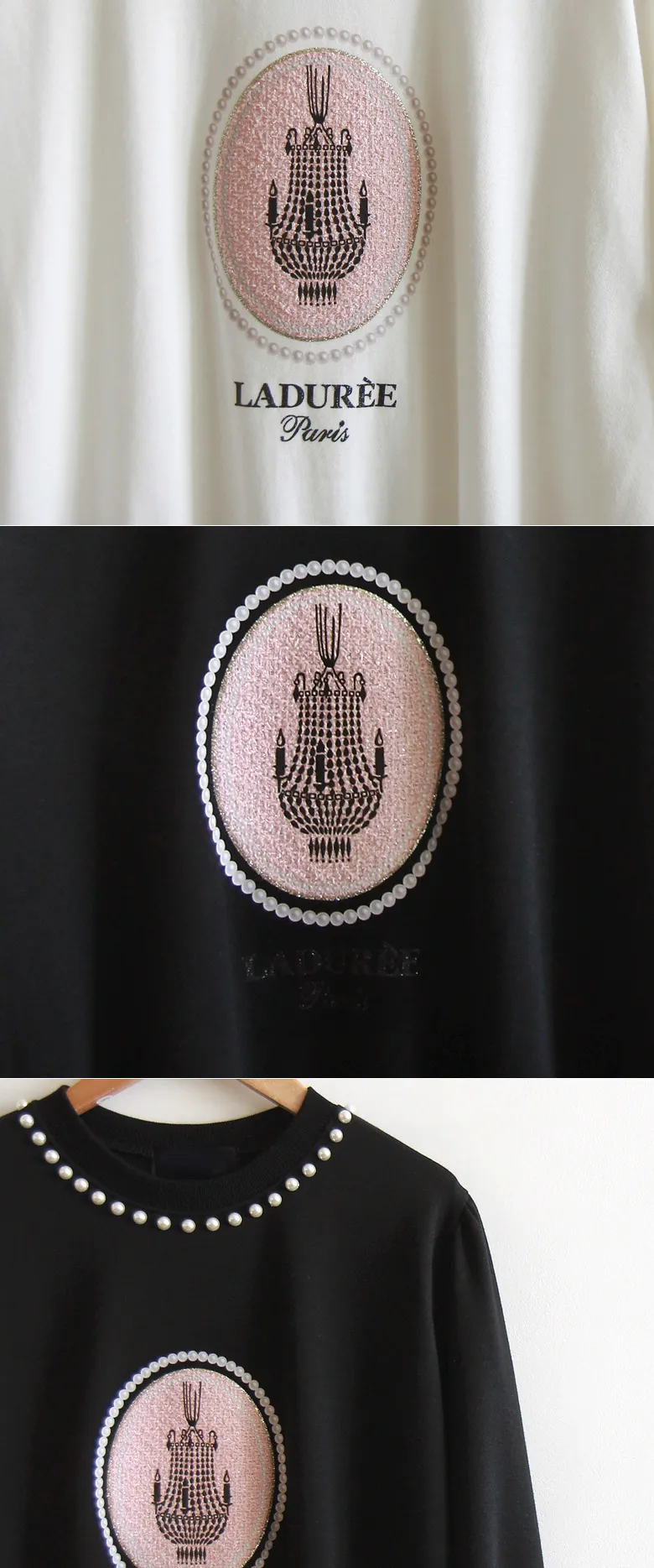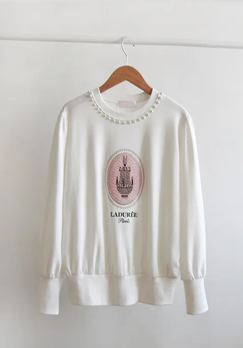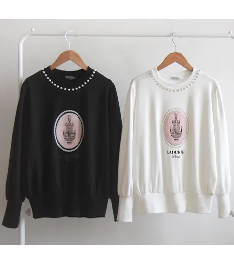 鑲滿獨特設計的上衣♡][立體珍珠很漂亮][時尚修身][珍珠花呢般的貼片和吊燈印花是亮點][帶有字母的迷人設計][肩部剪裁也很漂亮]