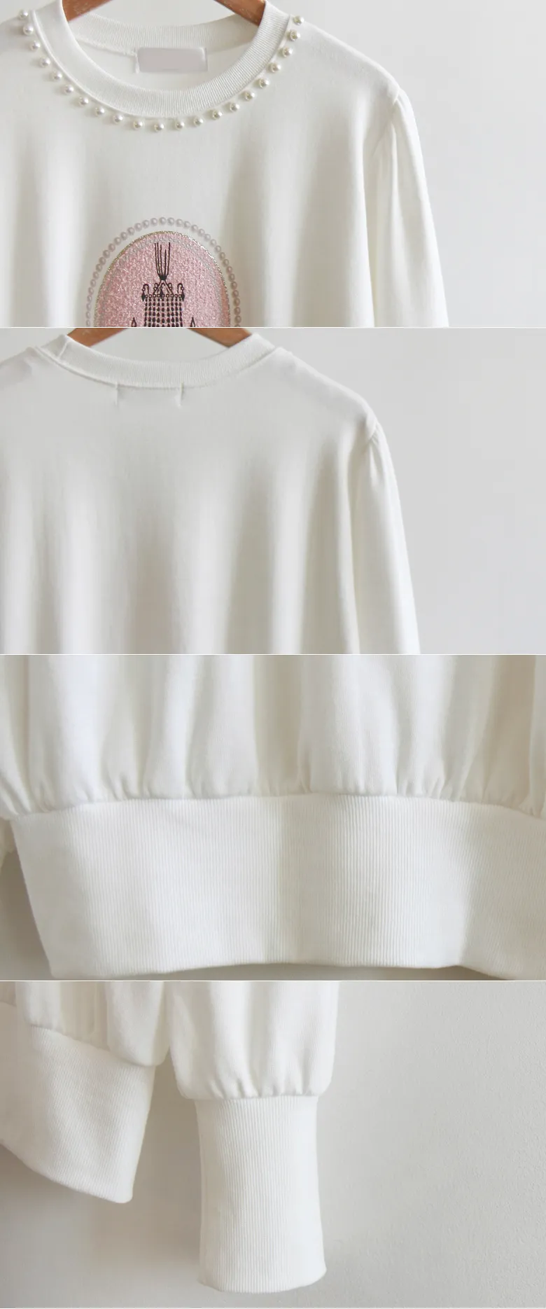 點綴珍珠裝飾花呢吊燈印花柔軟上衣