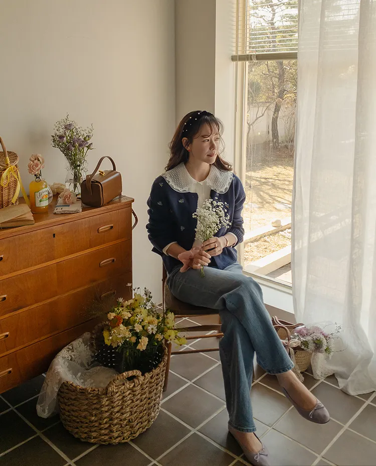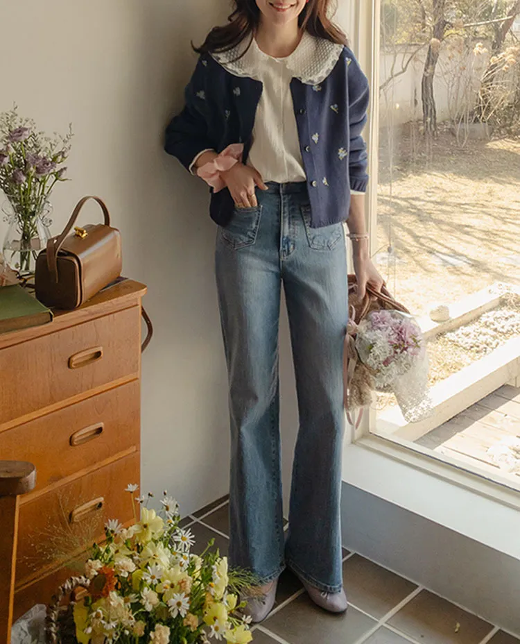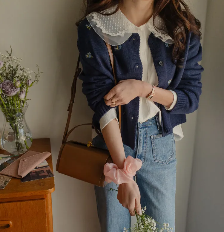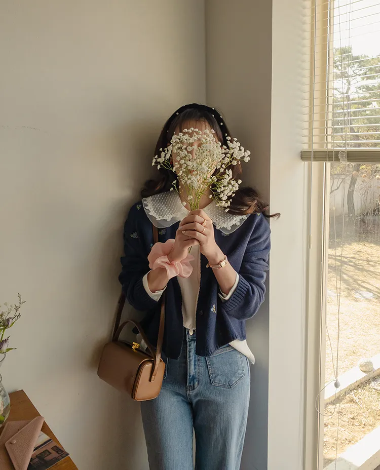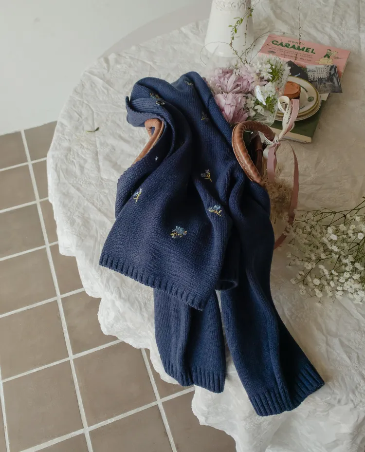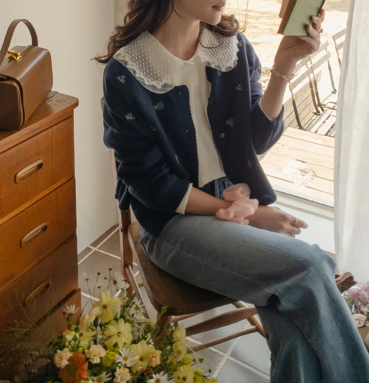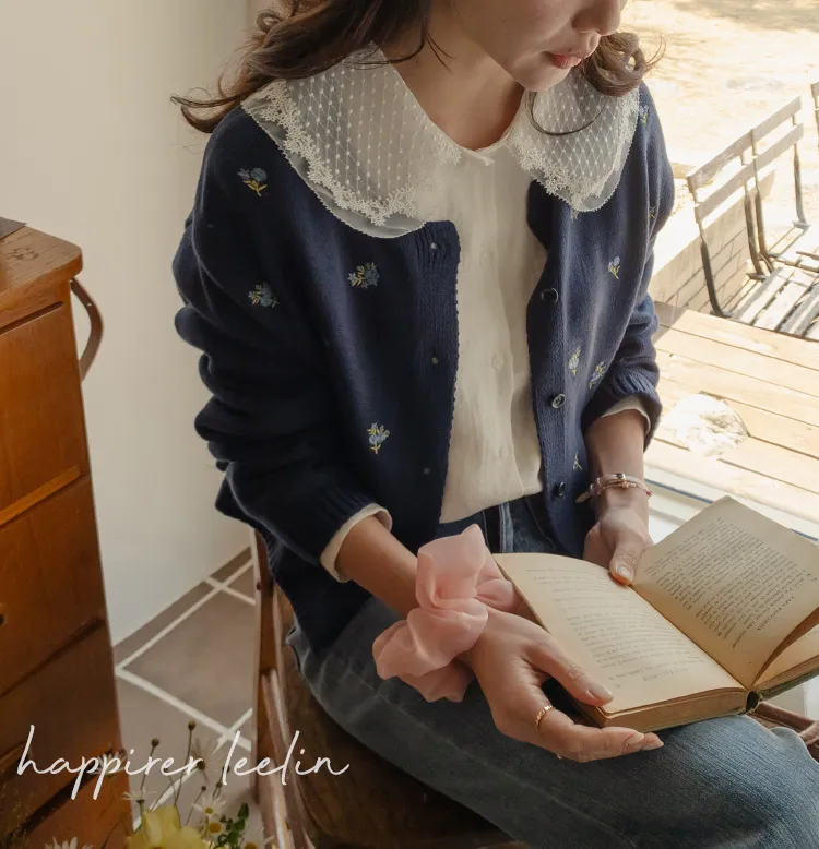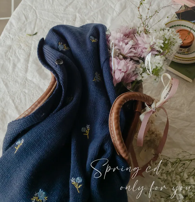 【清新的花朵刺繡開衫♡】【輕盈質感】【長度達到臀部的修長腿部線條】【為造型帶來活力,百搭!】