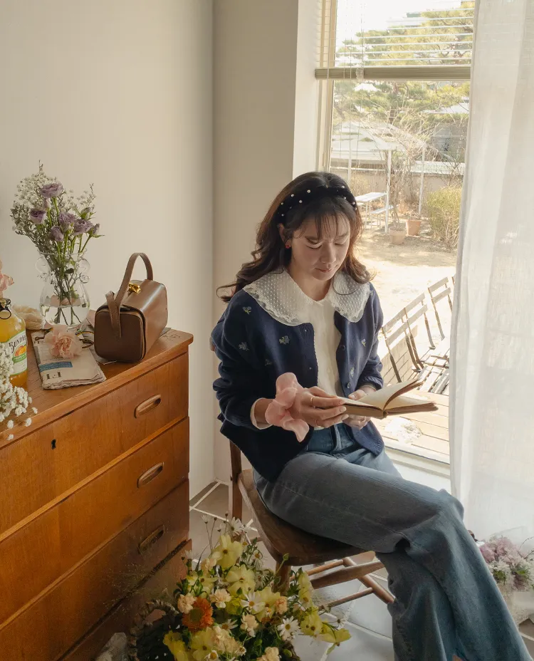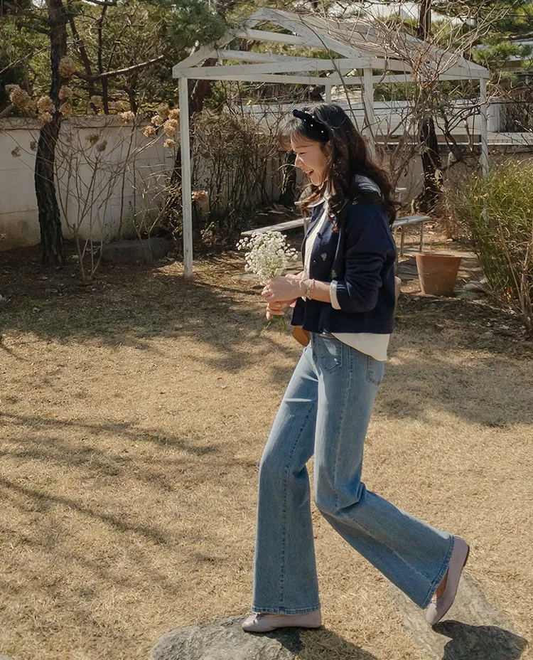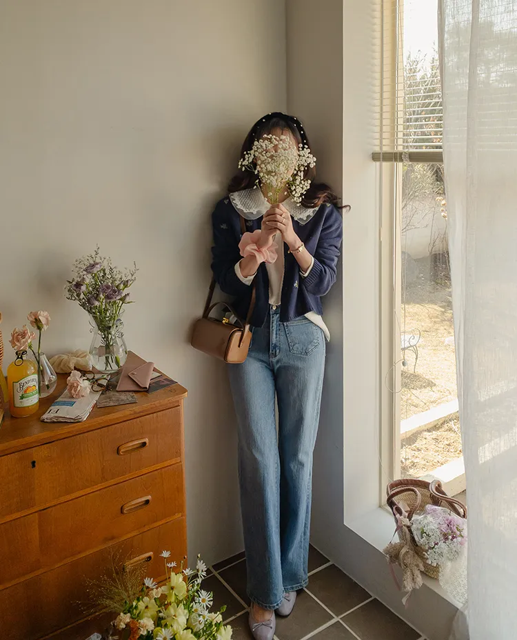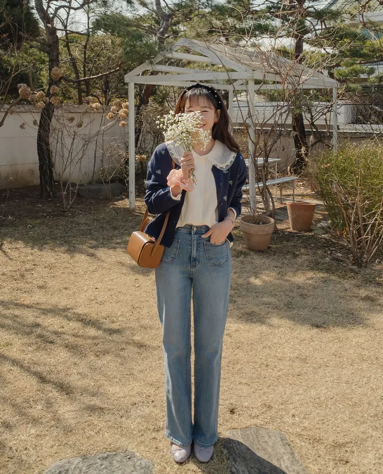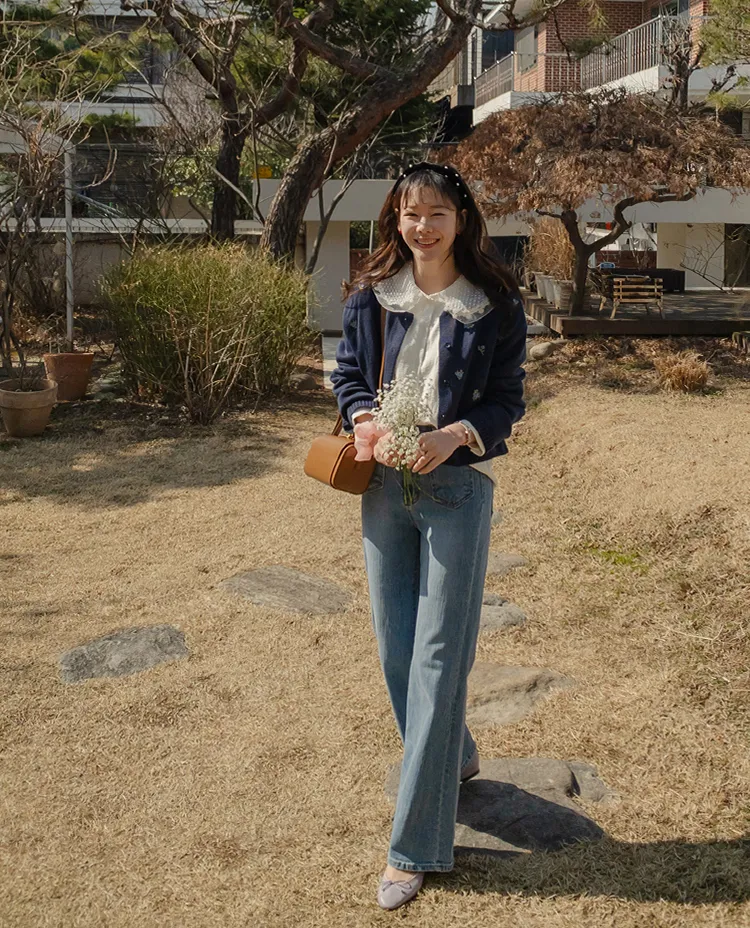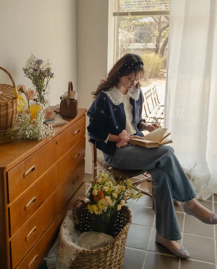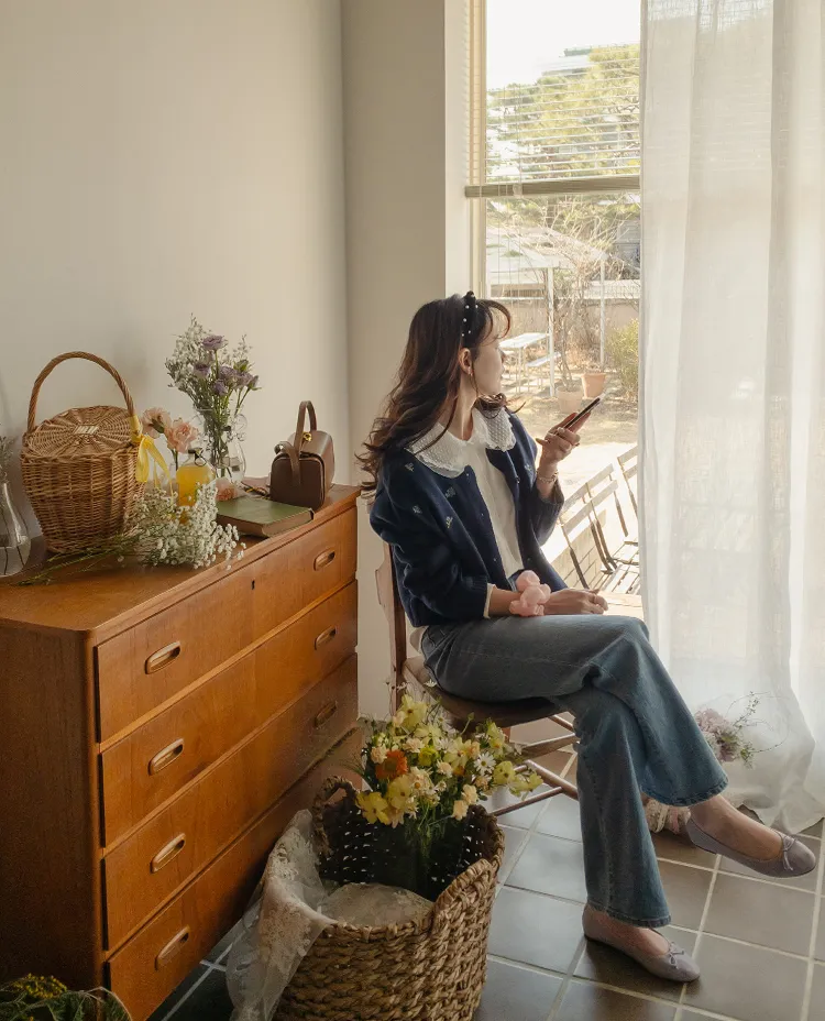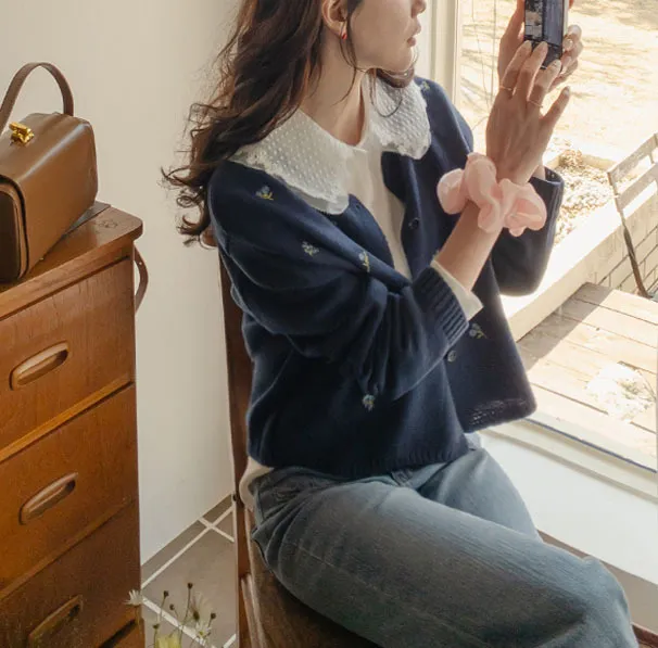 【清新的花朵刺繡開衫♡】【輕盈質感】【長度達到臀部的修長腿部線條】【為造型帶來活力,百搭!】