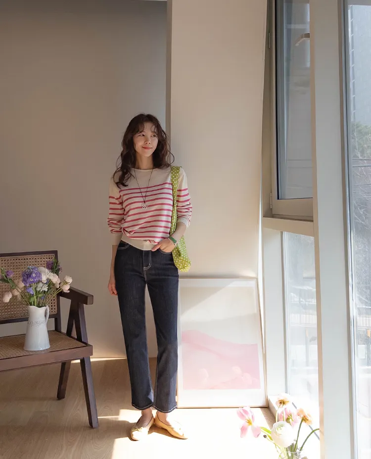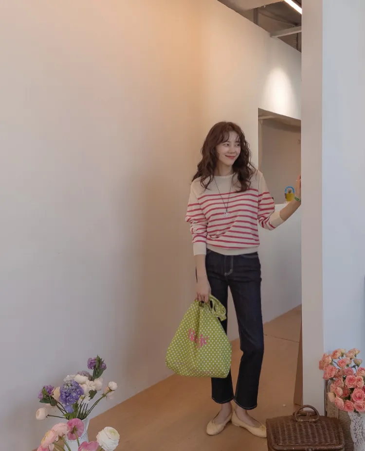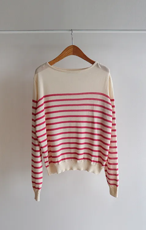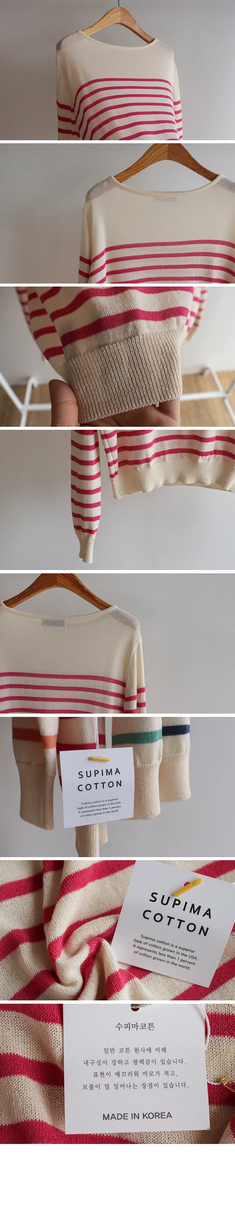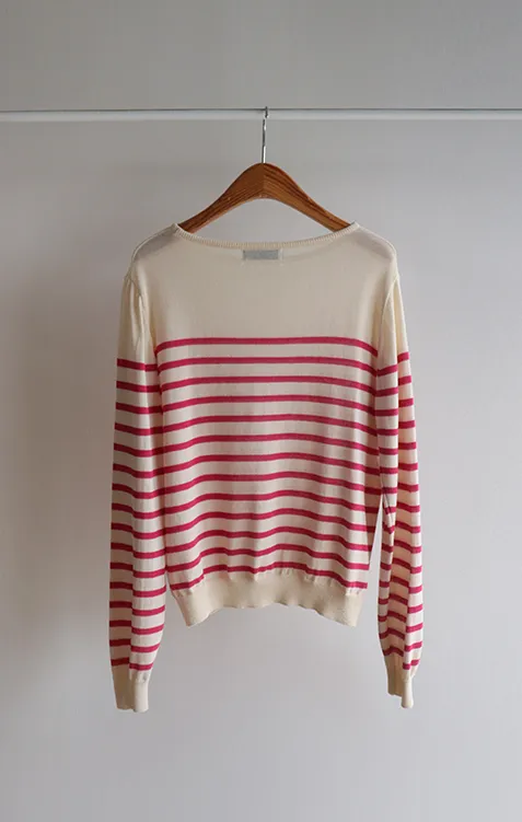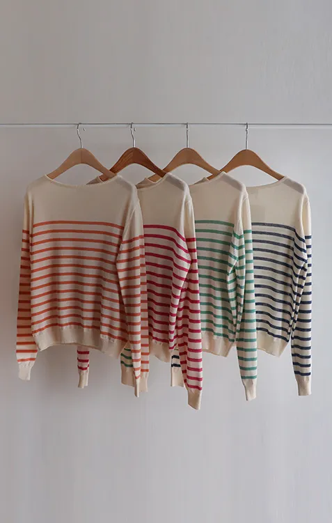 【今年春季的流行趨勢,條紋圖案針織♥】【旋風〜涼爽夏日棉!】【領口包裹處理,盡顯奢華】 【纖薄厚度】