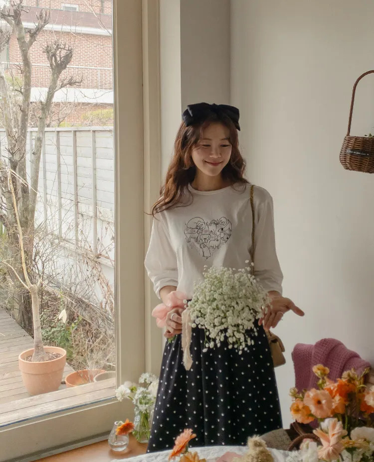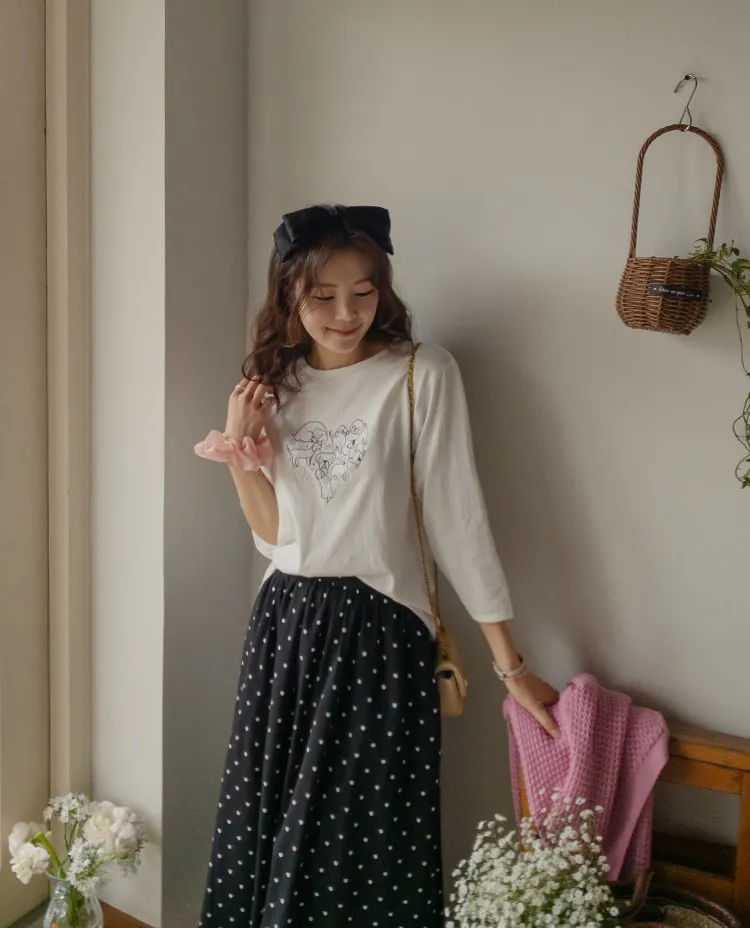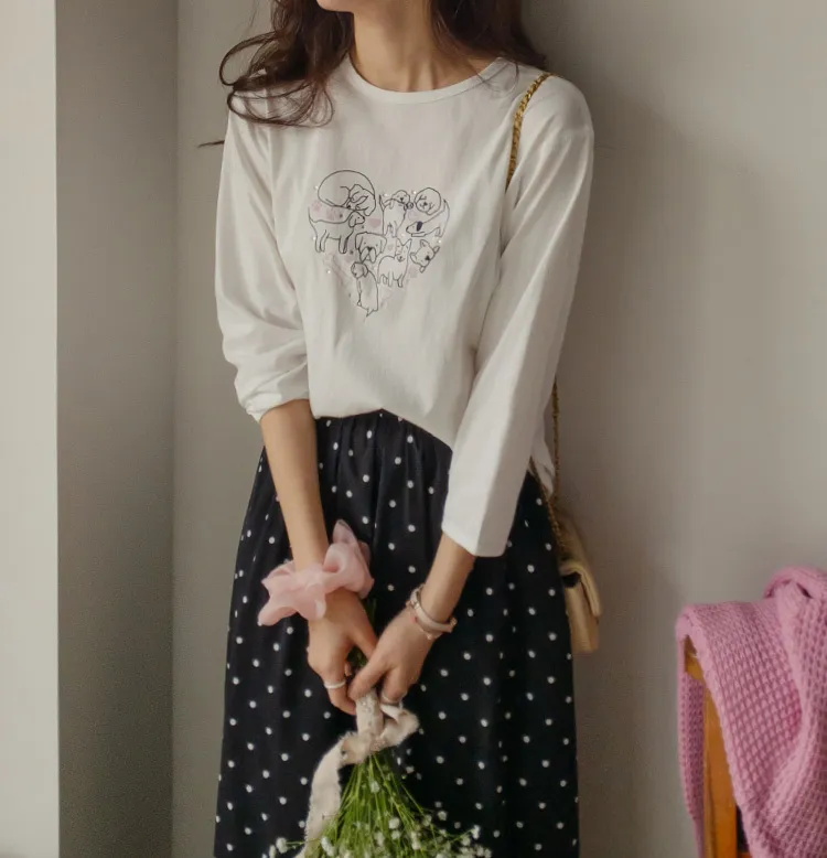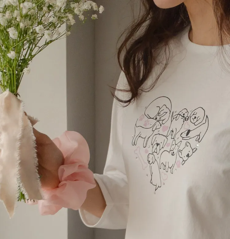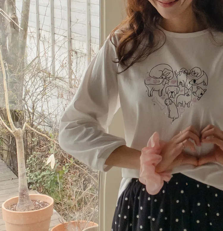 【可愛又可愛的心形印花♡】【印花佈滿Bling bling - 細節閃閃發光的獨特點!!】【輕款的棉材質,四季皆宜完美!!】