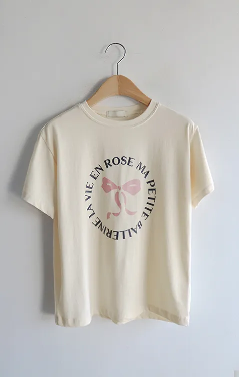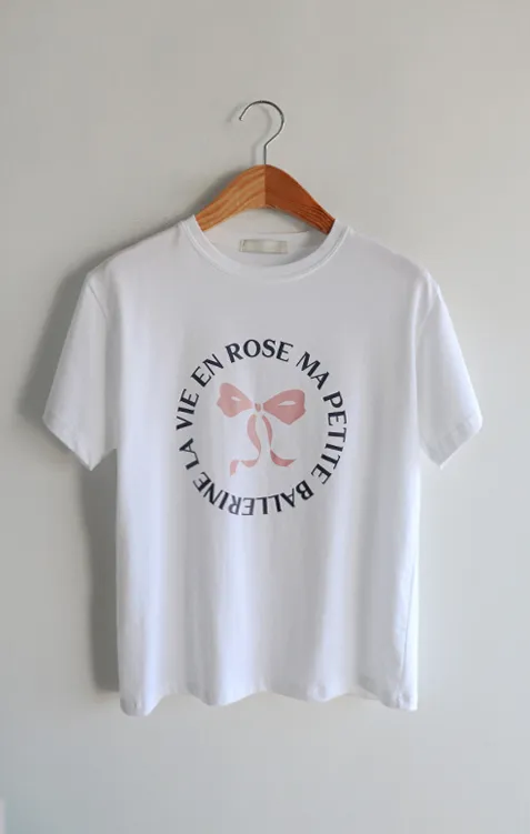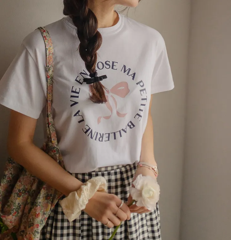 【浪漫女人味絲帶印花短袖T卹♥】】【37%莫代爾,質地柔軟--】【彈性氨綸真的很舒服!!】