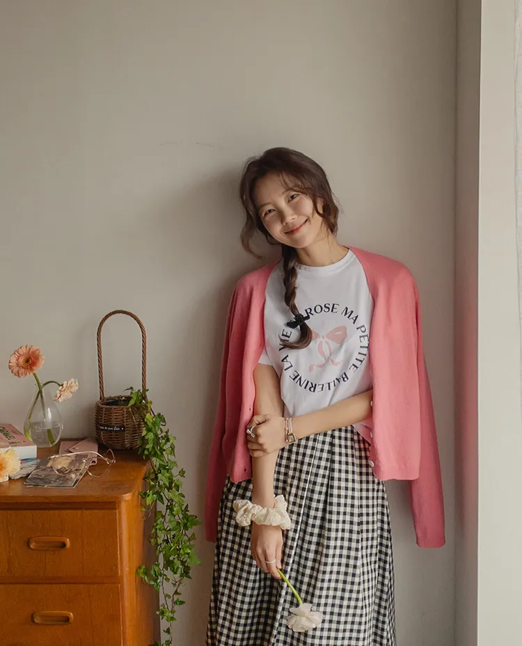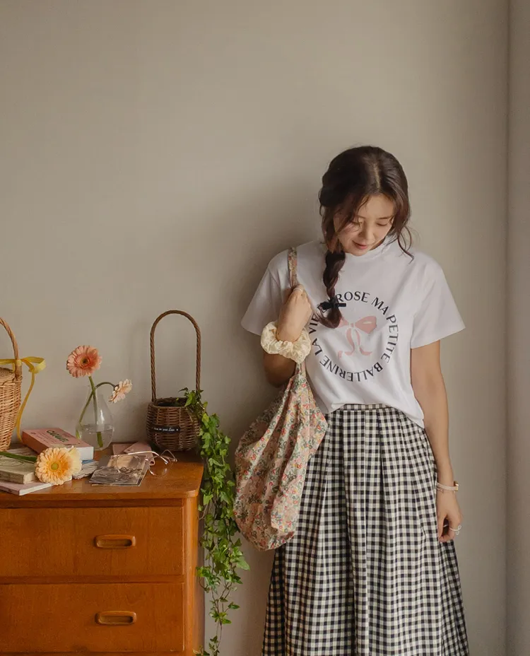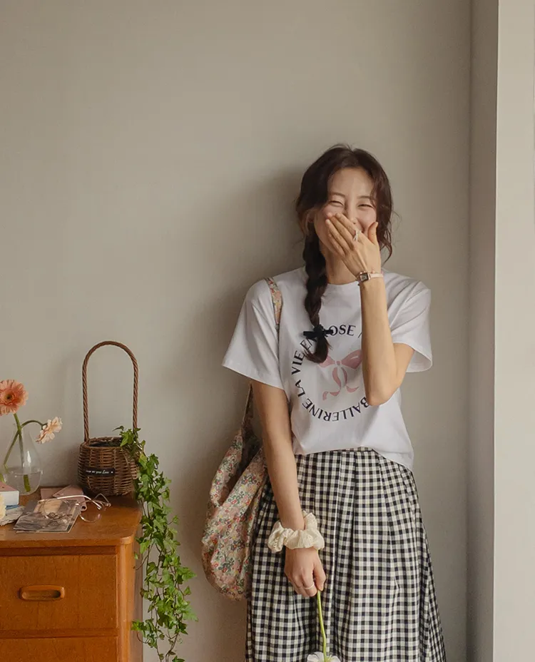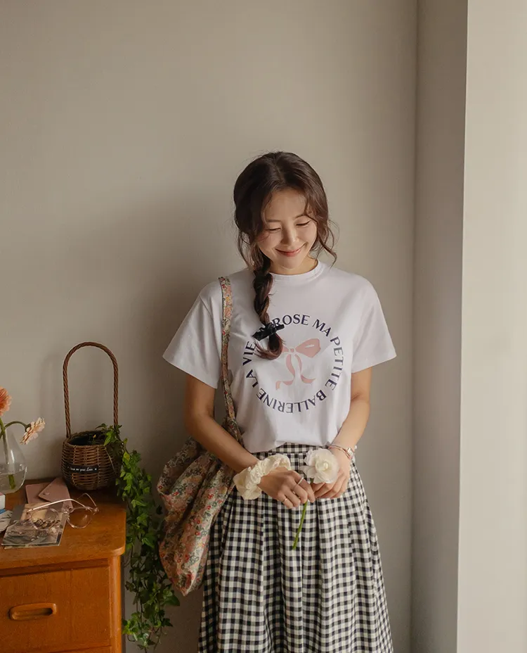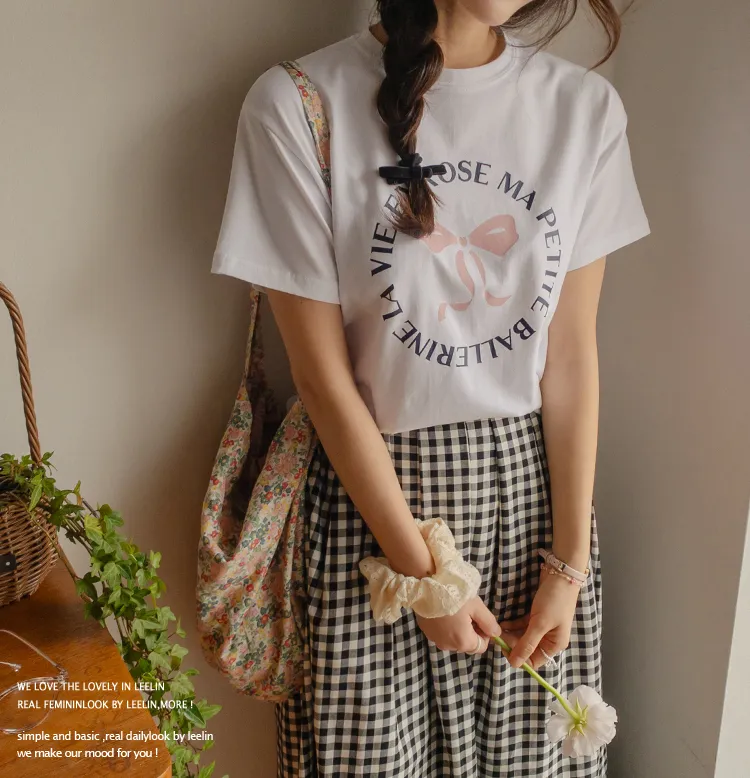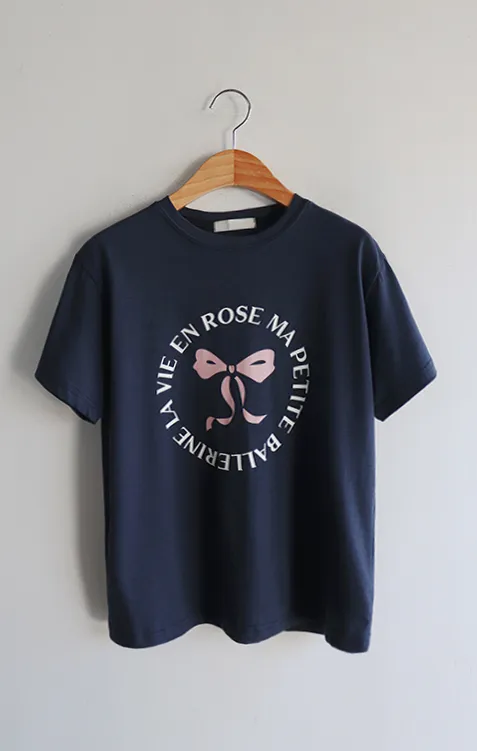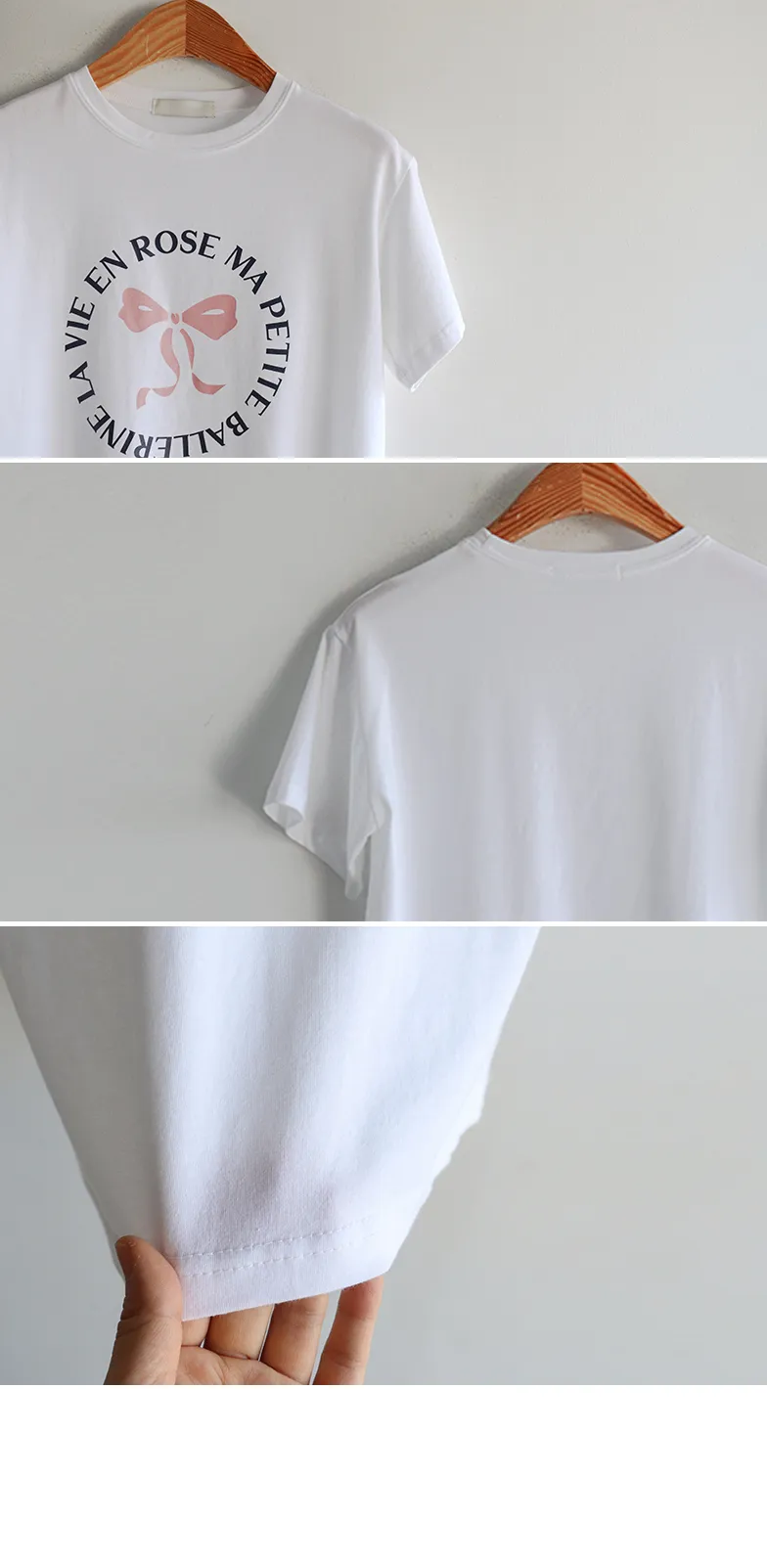 可愛蝴蝶結印花柔軟彈性莫代爾棉短袖上衣