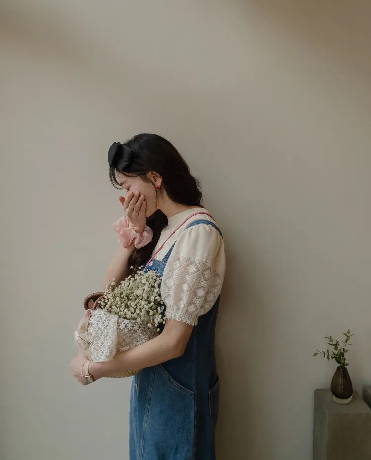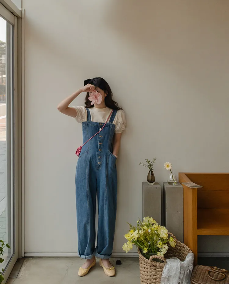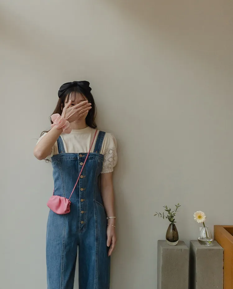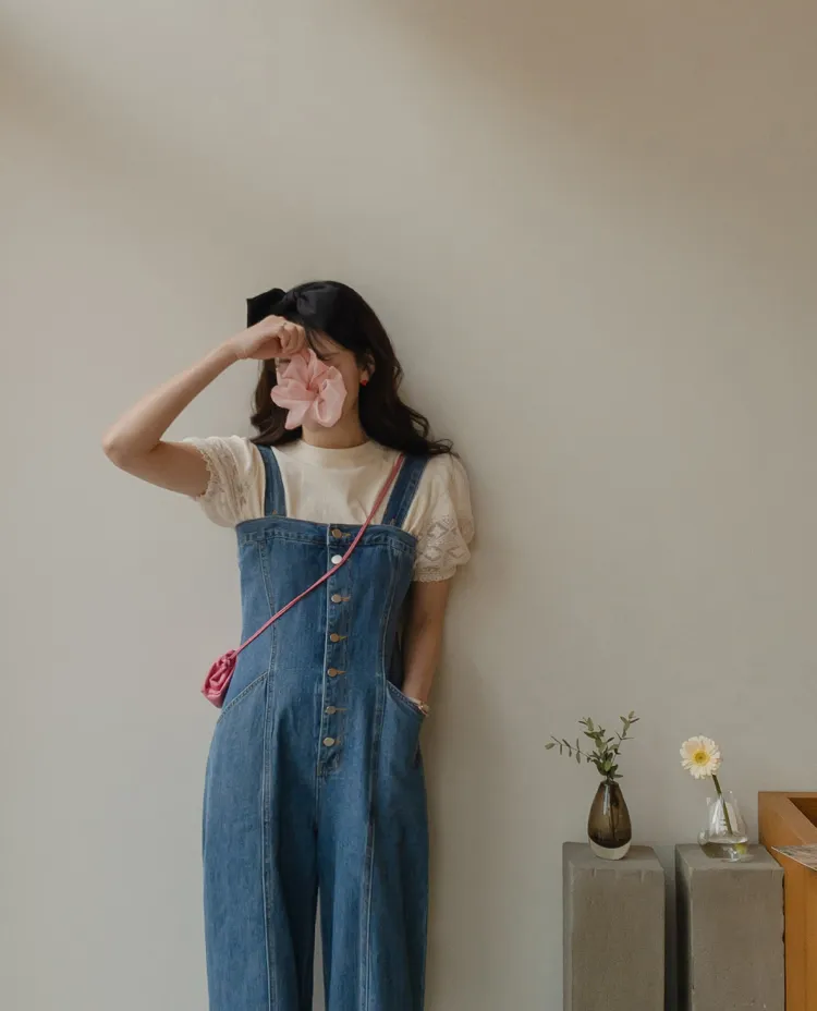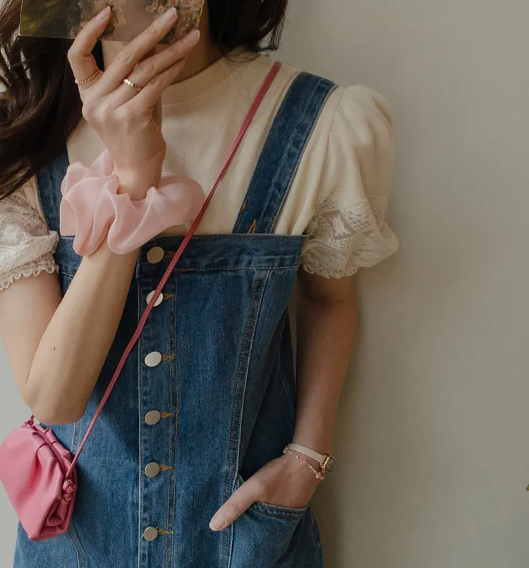浪漫情調可愛口袋設計A字剪裁連身裙