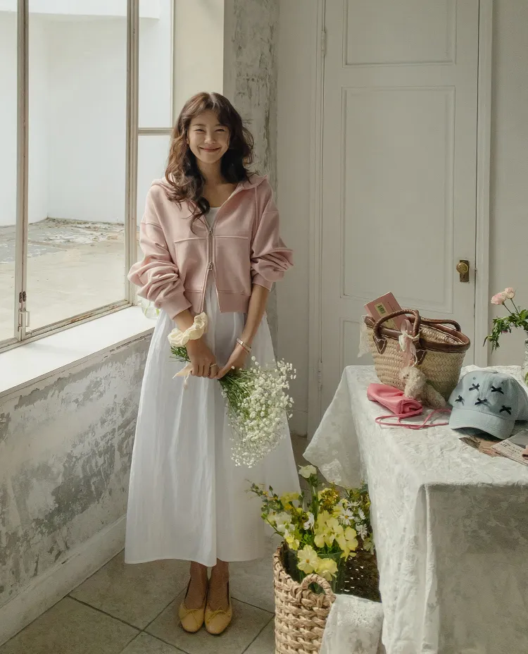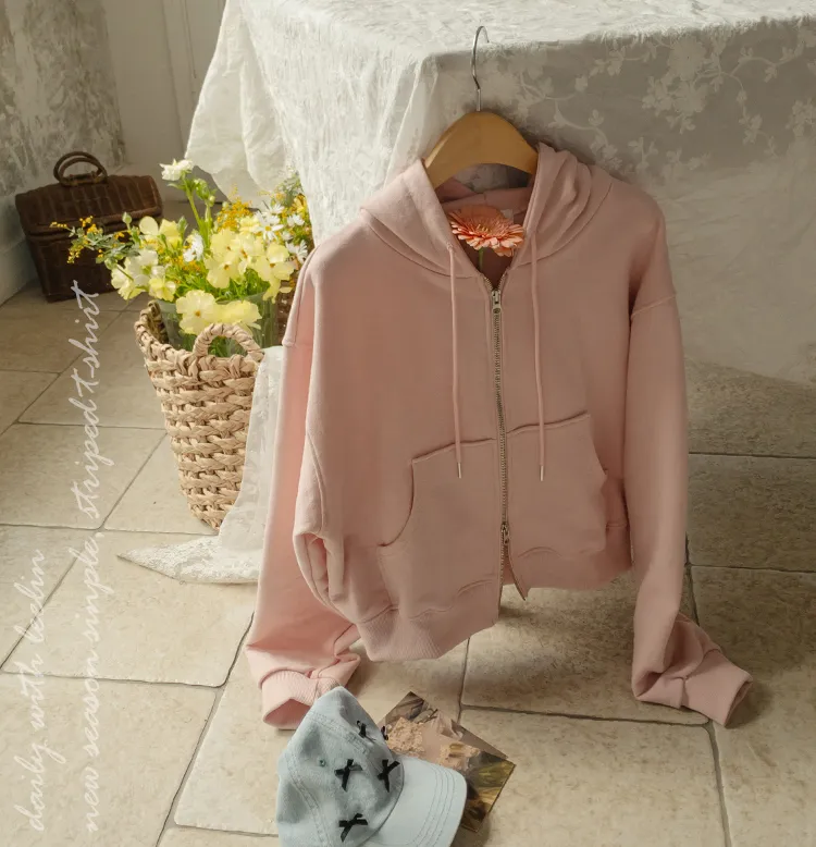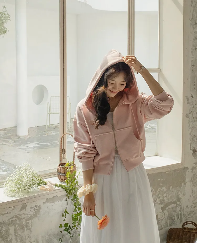 [輕鬆休閒地穿著的連帽拉鍊外套♡][流行的雙向拉鍊,打造時尚心情][棉質斜紋面料][適合與各種產品搭配]